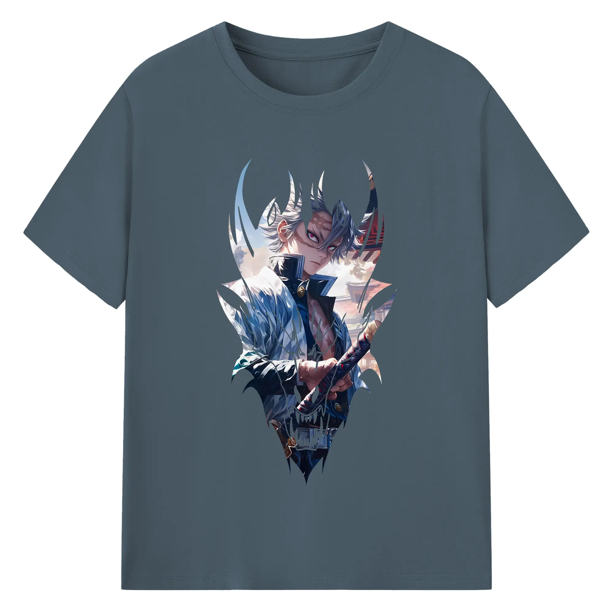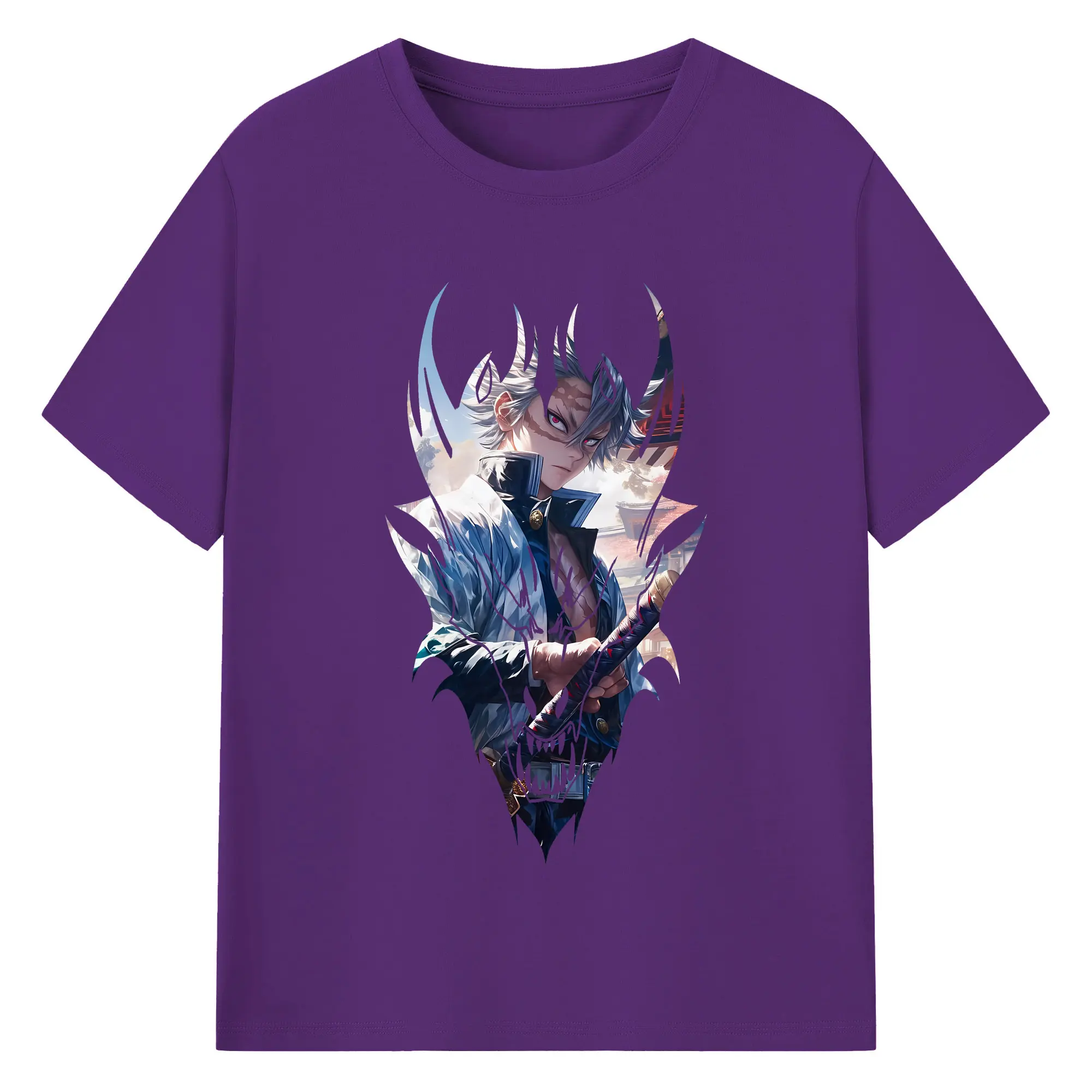 鬼滅の刃 グッズ,不死川 実弥 - 綿100% 半袖Tシャツ ・ フロントプリント ・ 快適 通気性 ・ 日常使い 散歩 スポーツ用