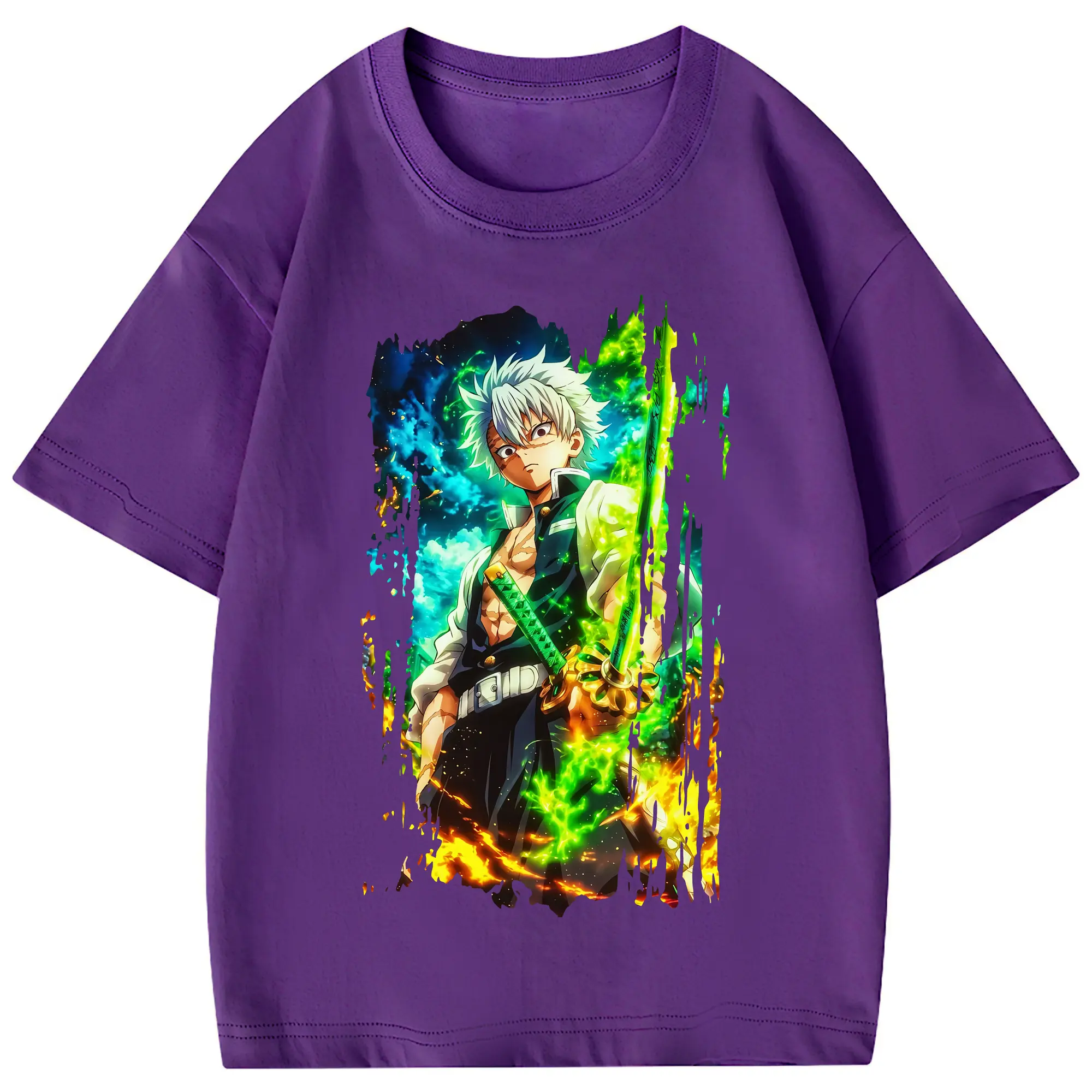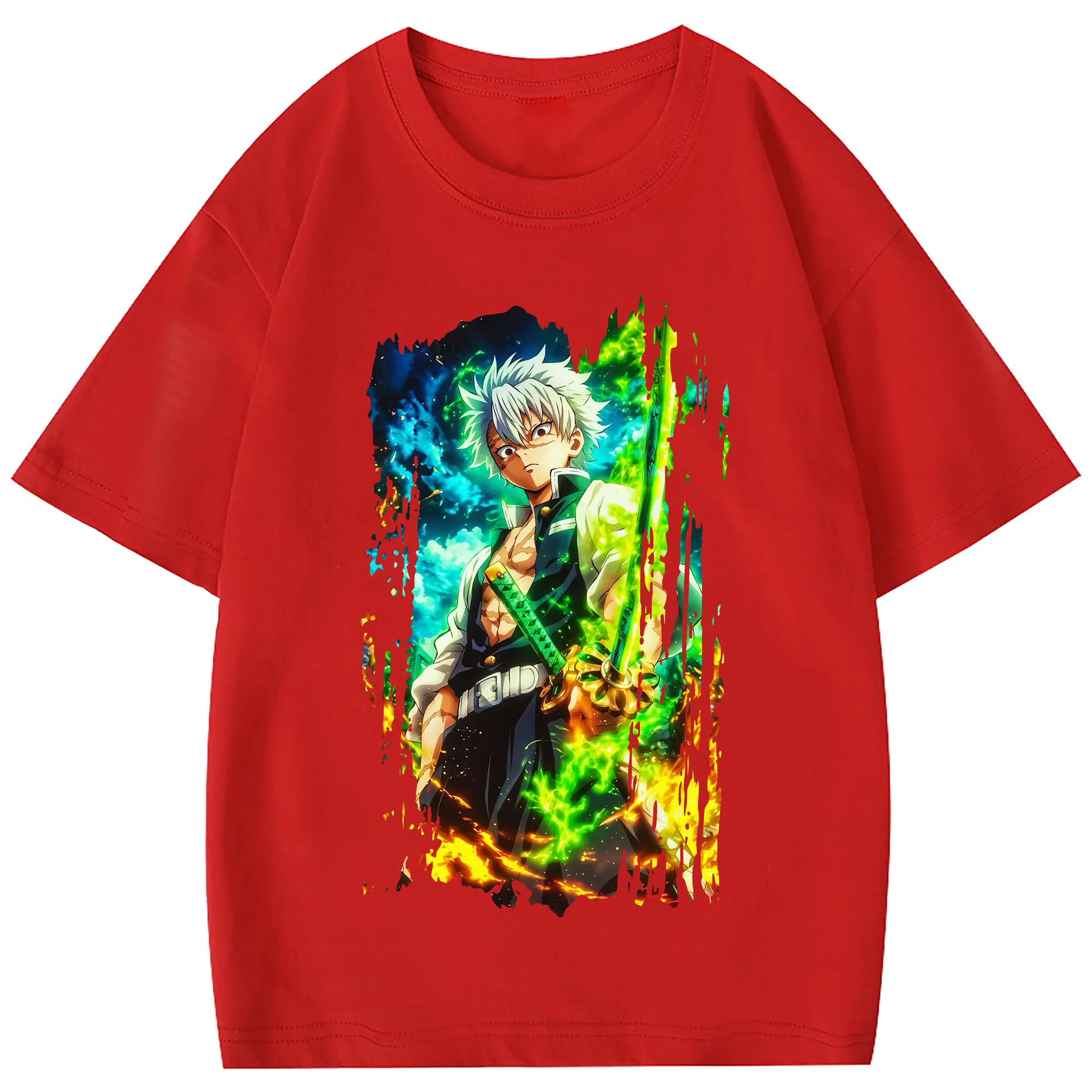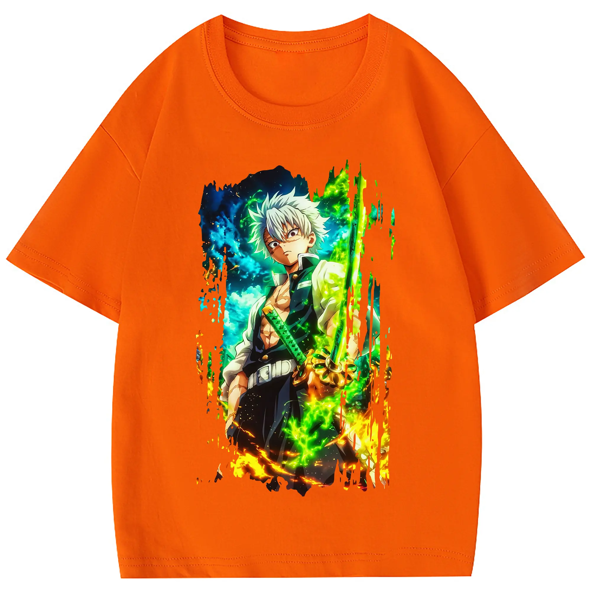 鬼滅の刃 グッズ,不死川 実弥 - 綿100% 半袖Tシャツ ・ フロントプリント ・ 快適 通気性 ・ 日常使い 散歩 スポーツ用