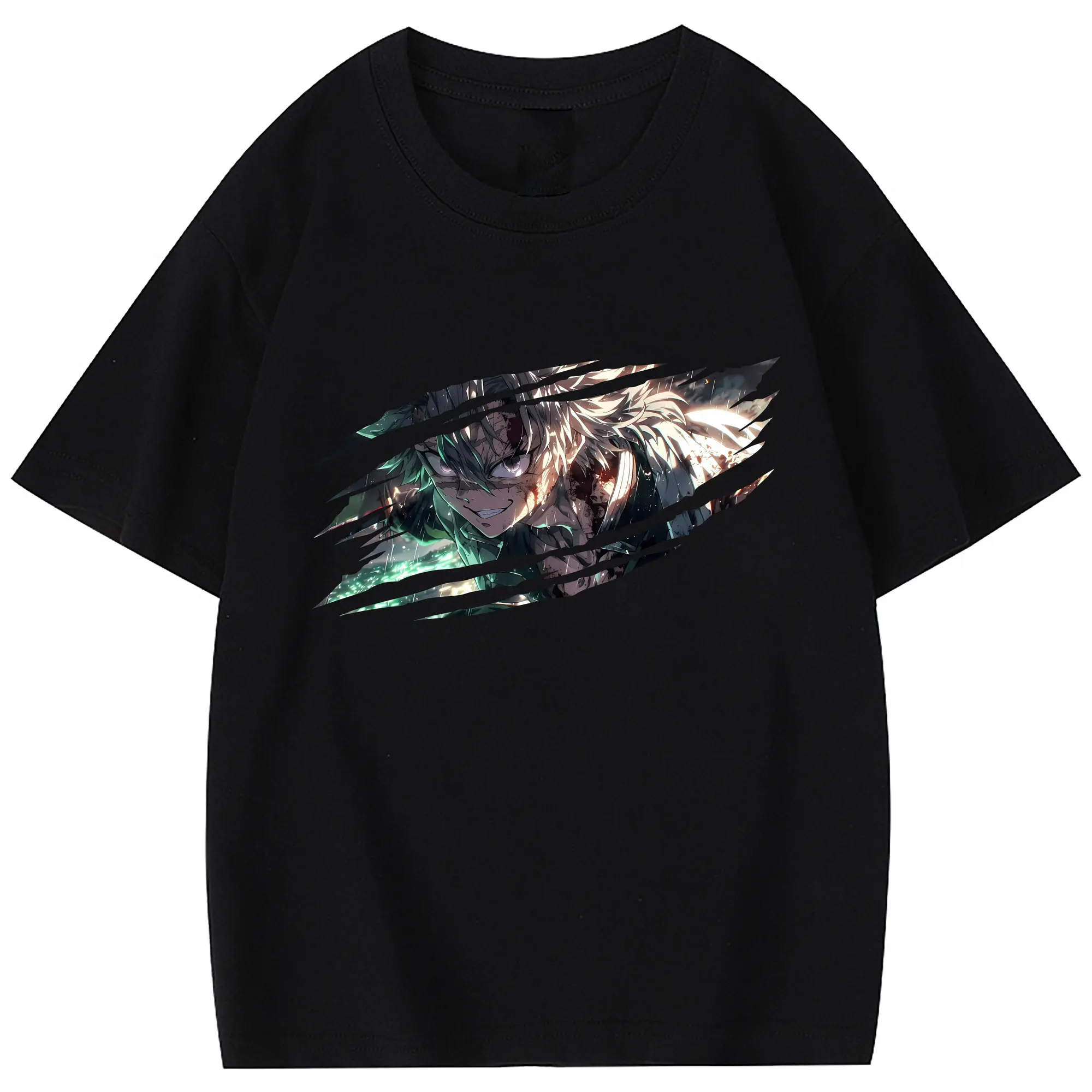 鬼滅の刃 グッズ,不死川 実弥 - 綿100% 半袖Tシャツ ・ フロントプリント ・ 快適 通気性 ・ 日常使い 散歩 スポーツ用