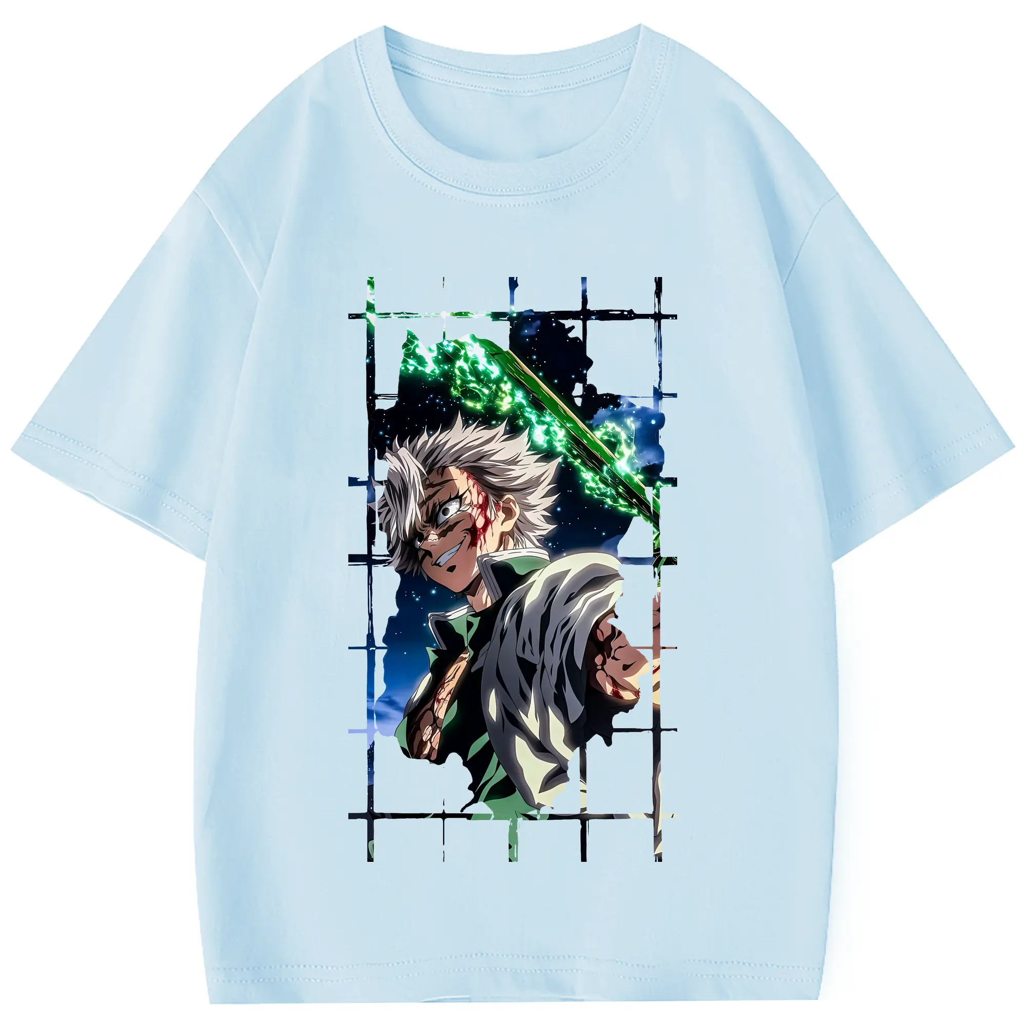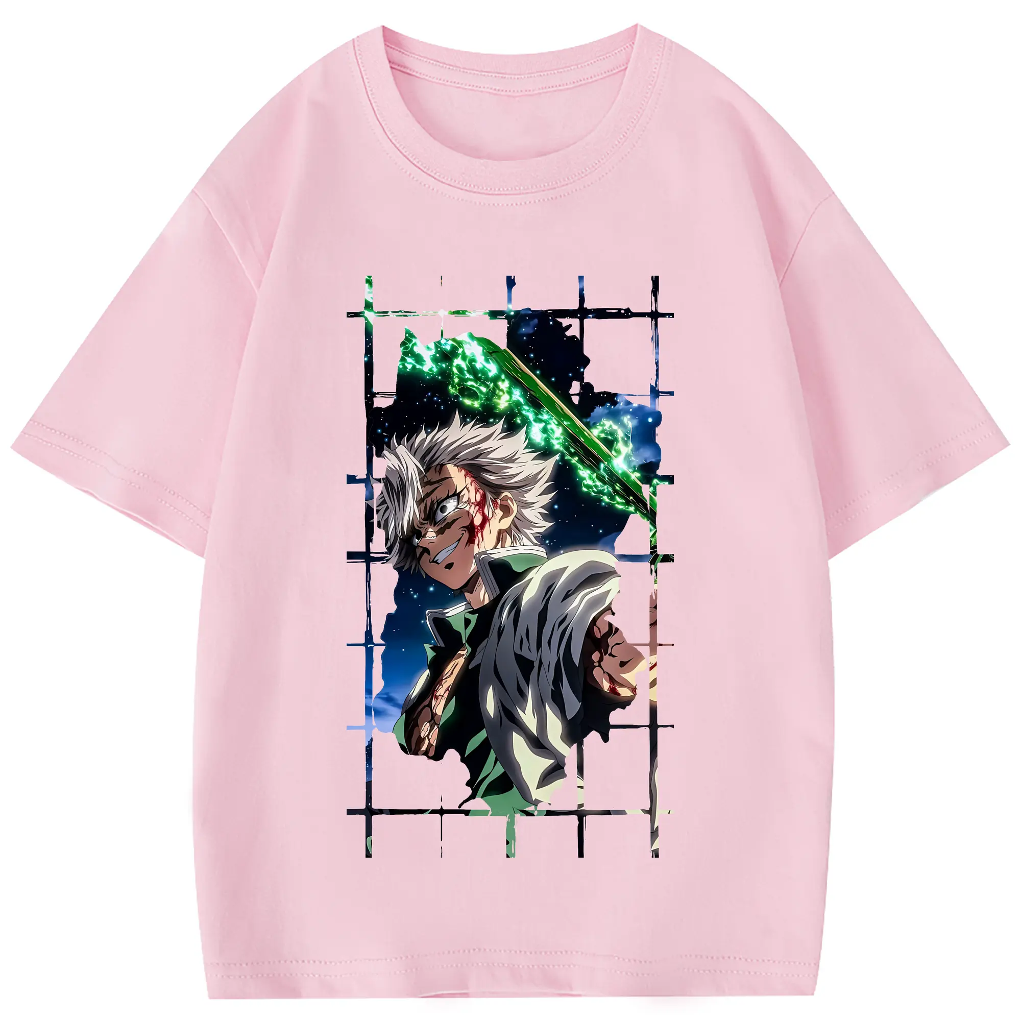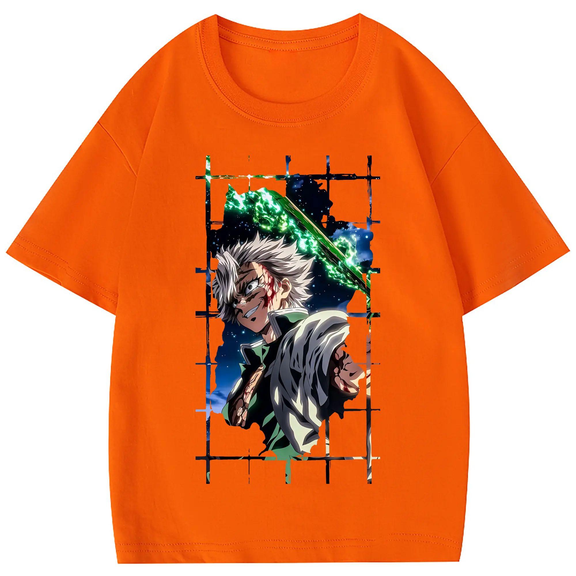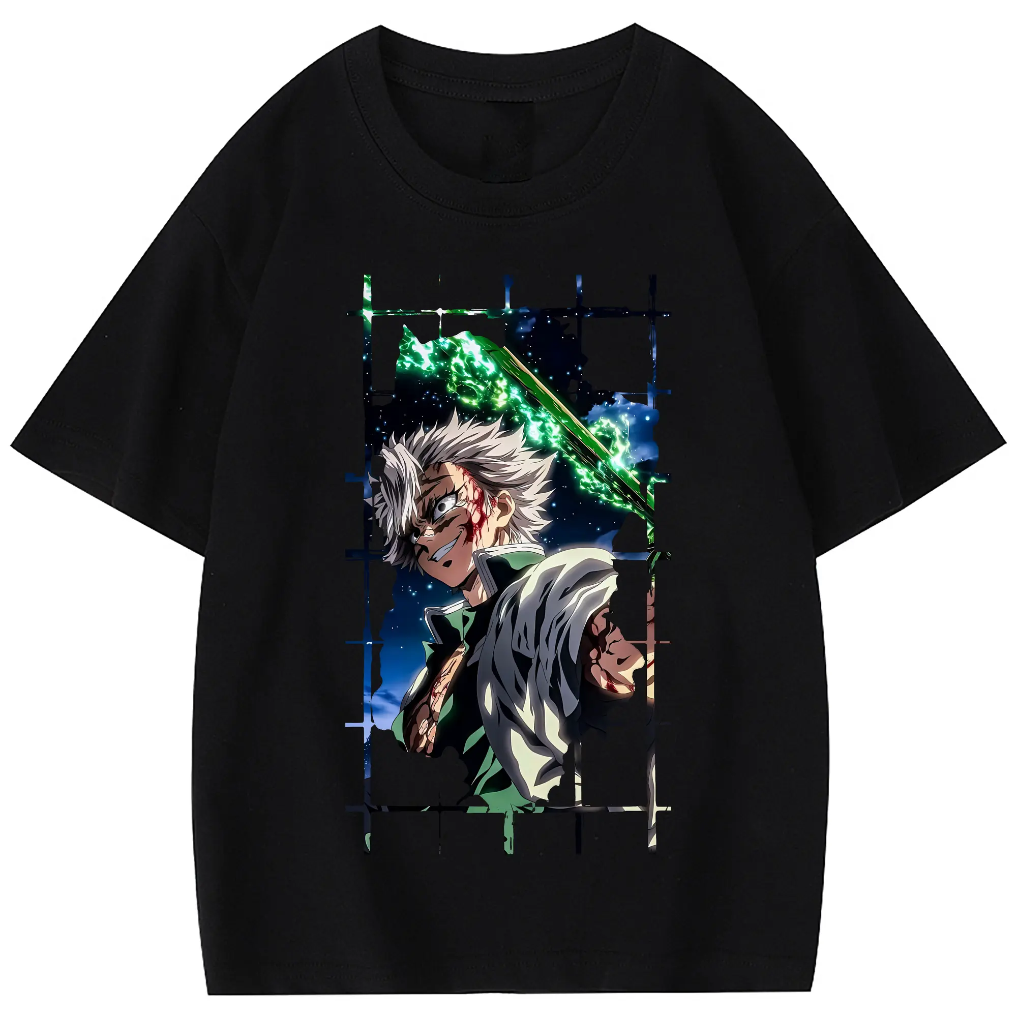 鬼滅の刃 グッズ,不死川 実弥 - 綿100% 半袖Tシャツ ・ フロントプリント ・ 快適 通気性 ・ 日常使い 散歩 スポーツ用
