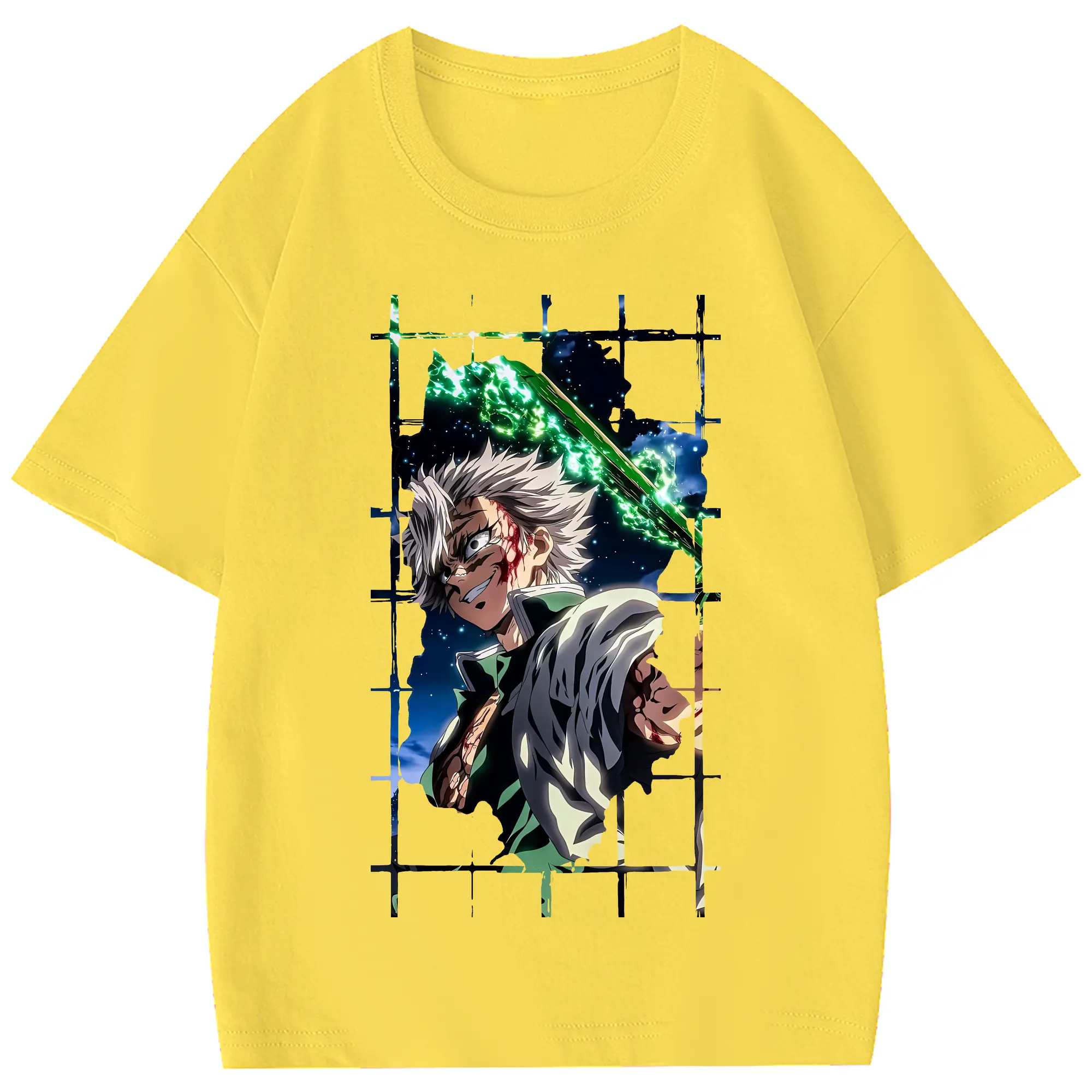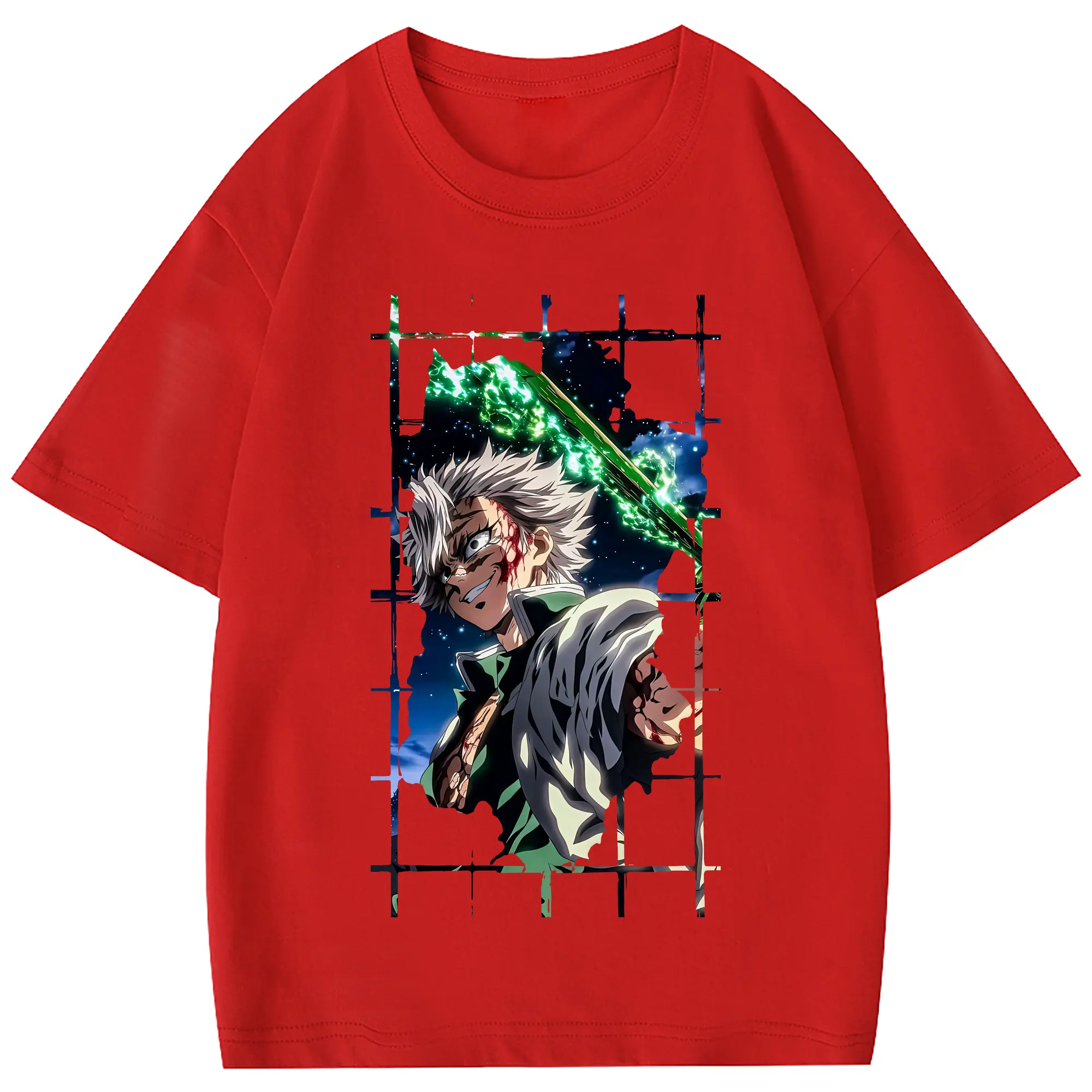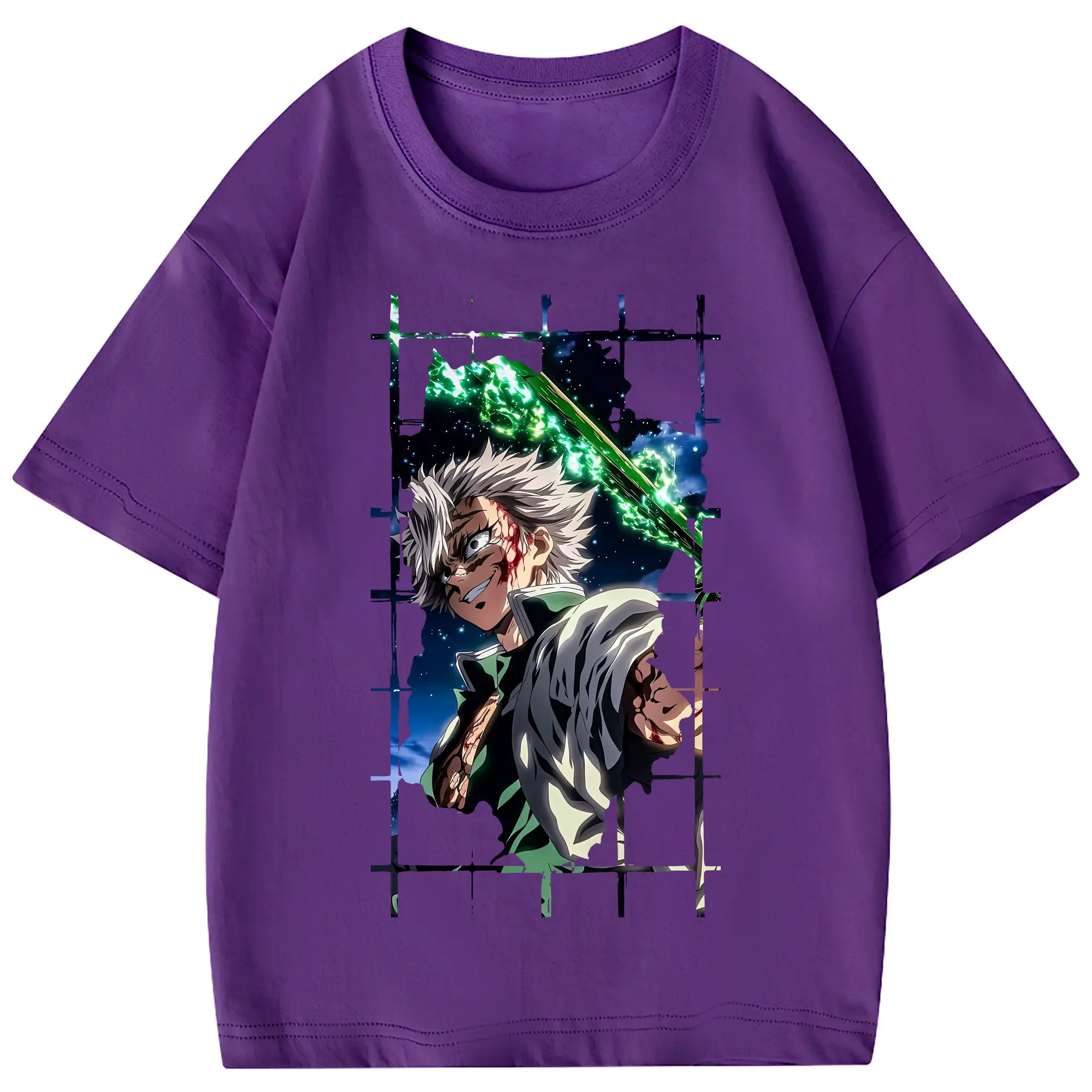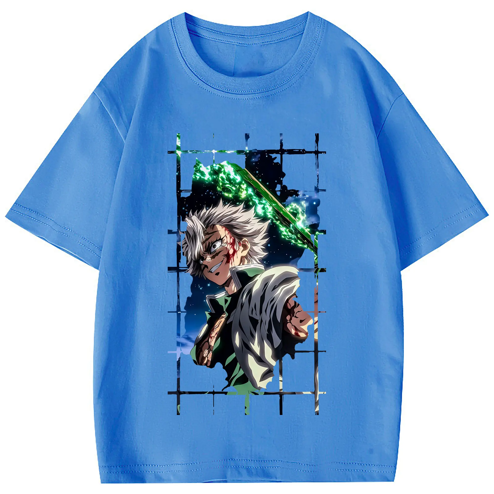 鬼滅の刃 グッズ,不死川 実弥 - 綿100% 半袖Tシャツ ・ フロントプリント ・ 快適 通気性 ・ 日常使い 散歩 スポーツ用