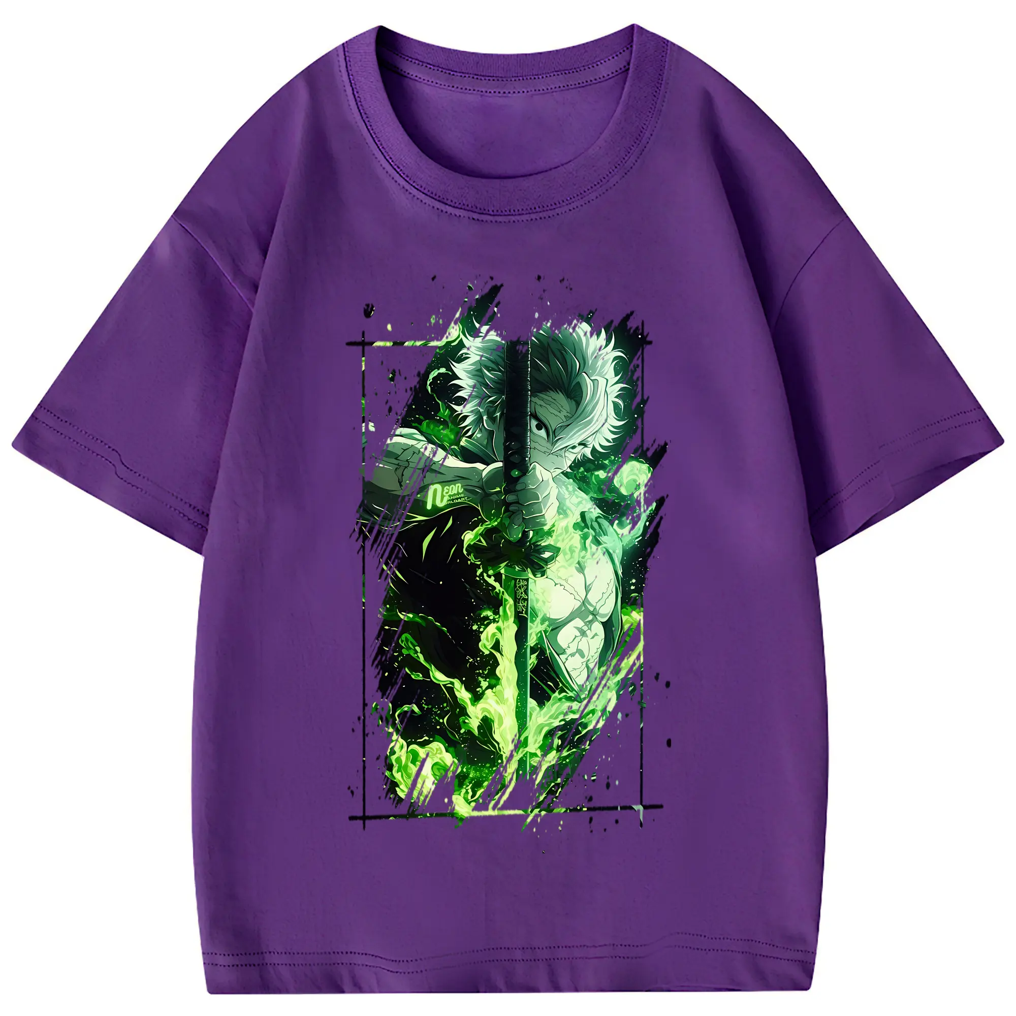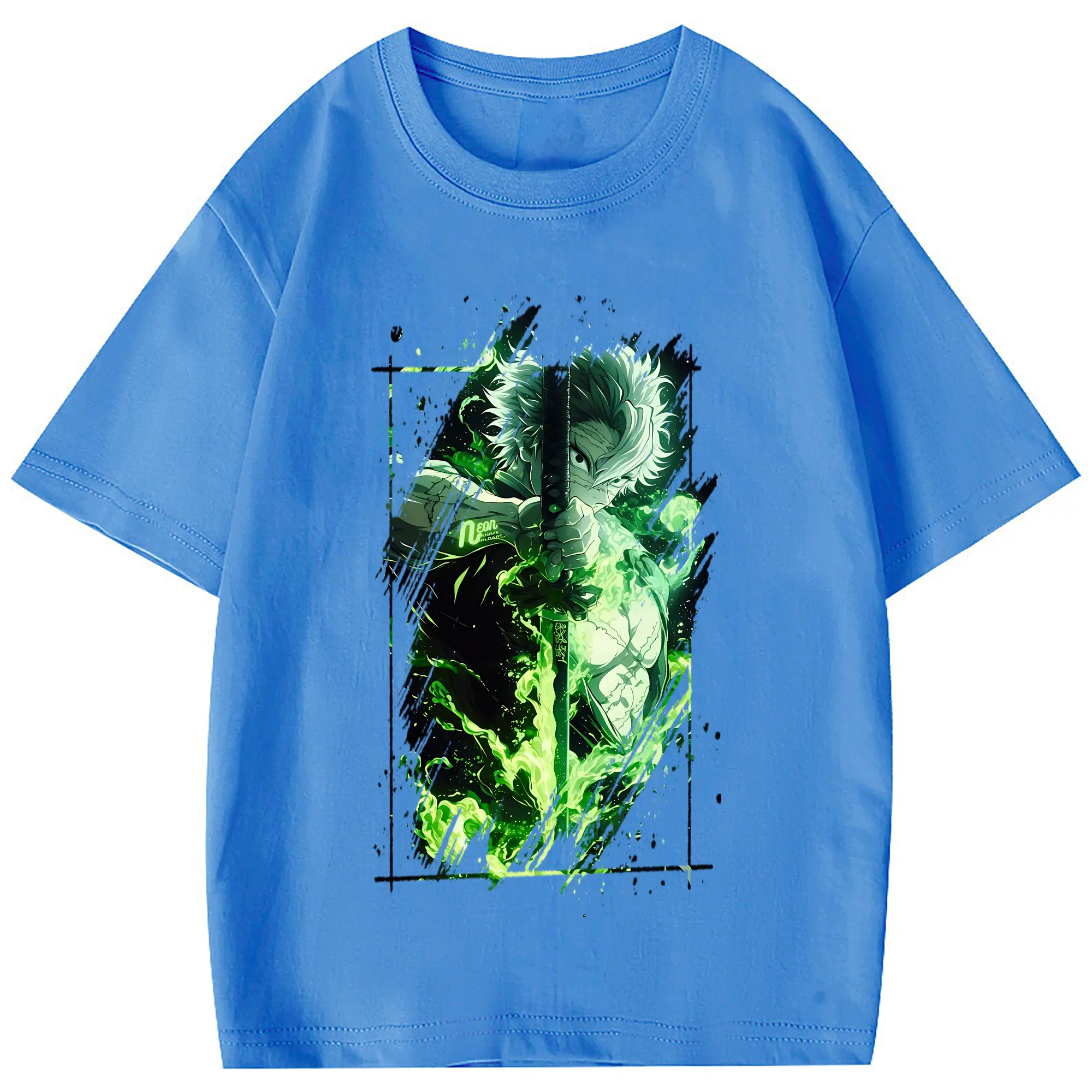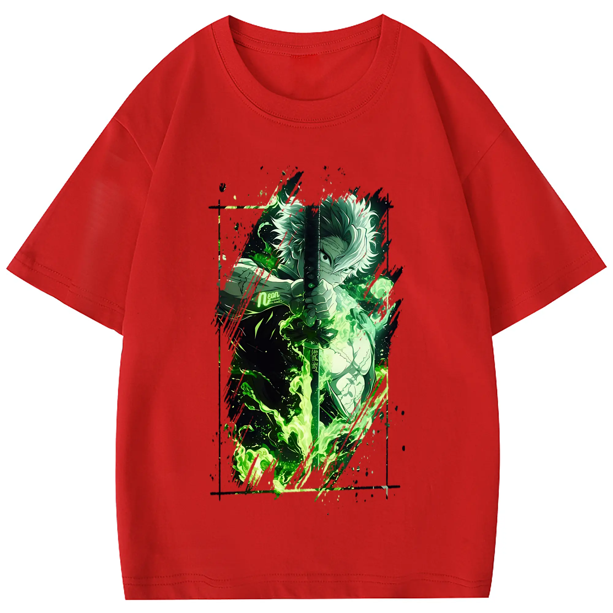鬼滅の刃 グッズ,不死川 実弥 - 綿100% 半袖Tシャツ ・ フロントプリント ・ 快適 通気性 ・ 日常使い 散歩 スポーツ用