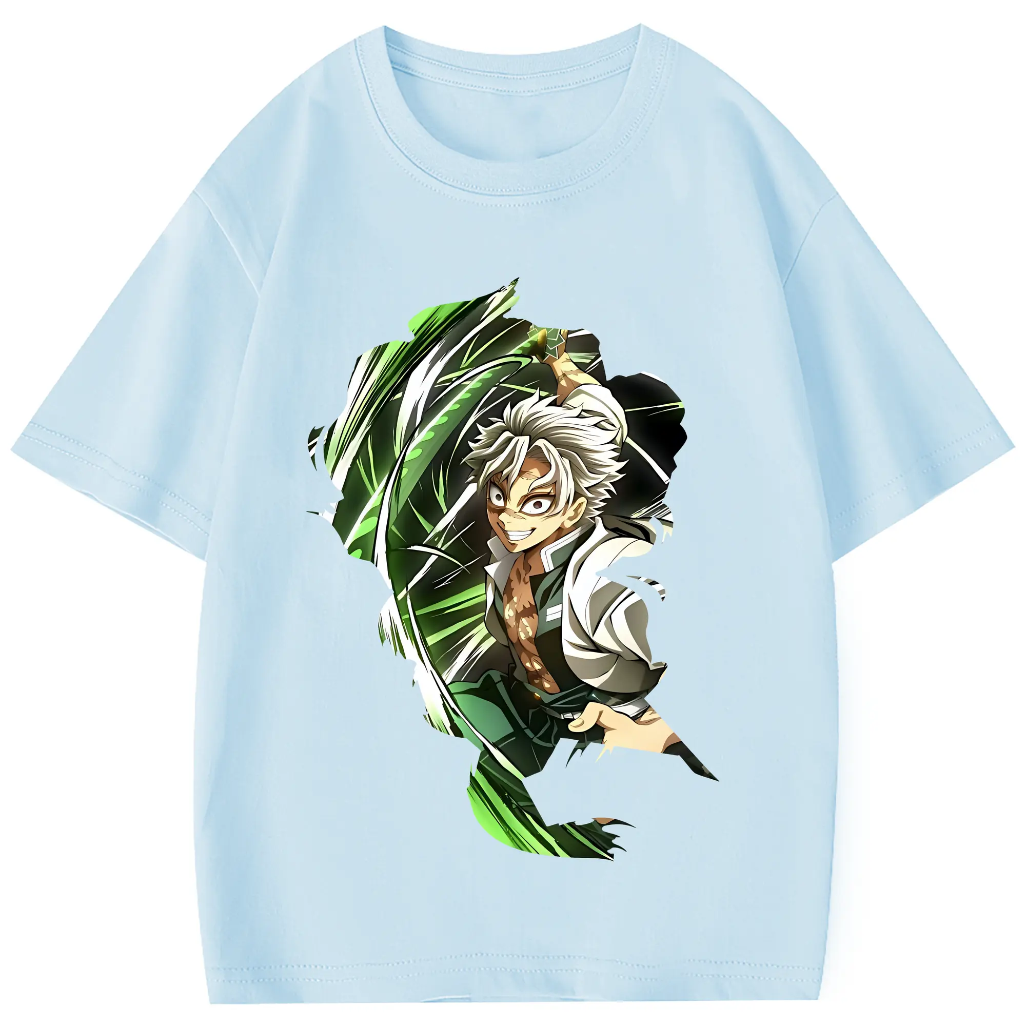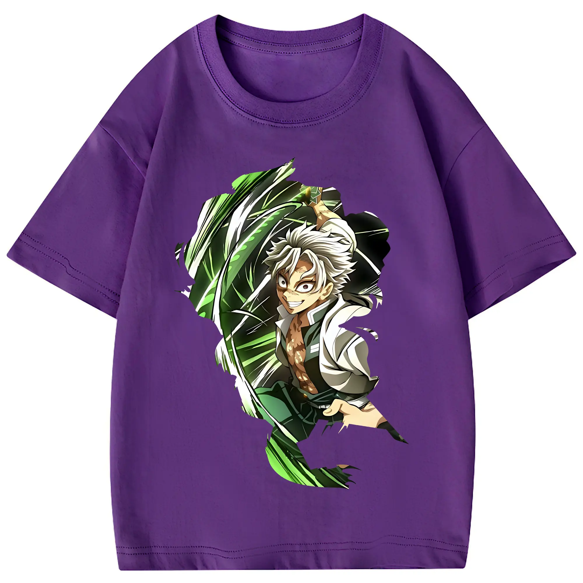 鬼滅の刃 グッズ,不死川 実弥 - 綿100% 半袖Tシャツ ・ フロントプリント ・ 快適 通気性 ・ 日常使い 散歩 スポーツ用
