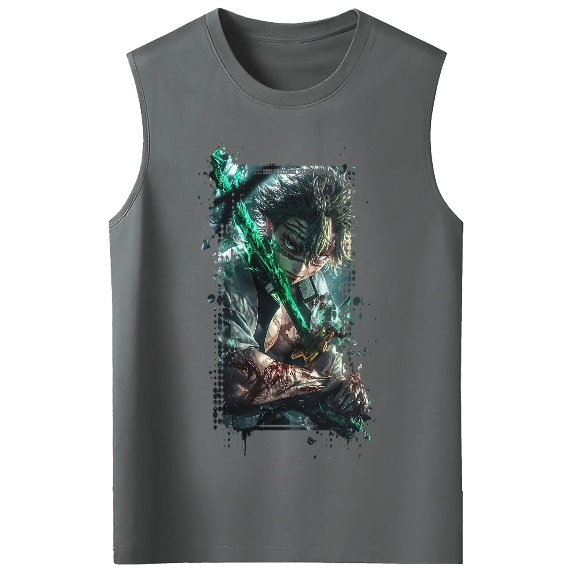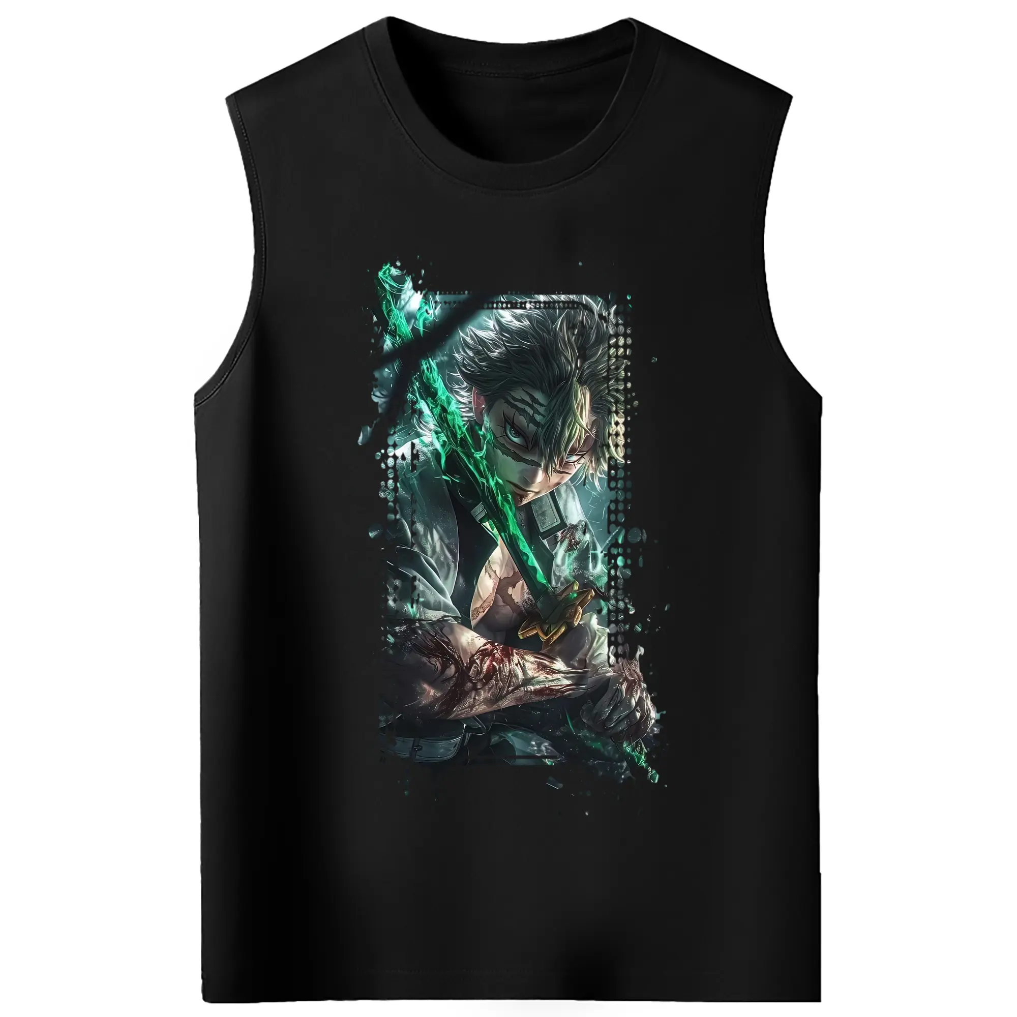 鬼滅の刃 グッズ,不死川 実弥 - コットン100% タンクトップ ・ フロントプリント ・ タイトフィット ・ 快適 通気性 ・ スポーツ カジュアル 散歩用