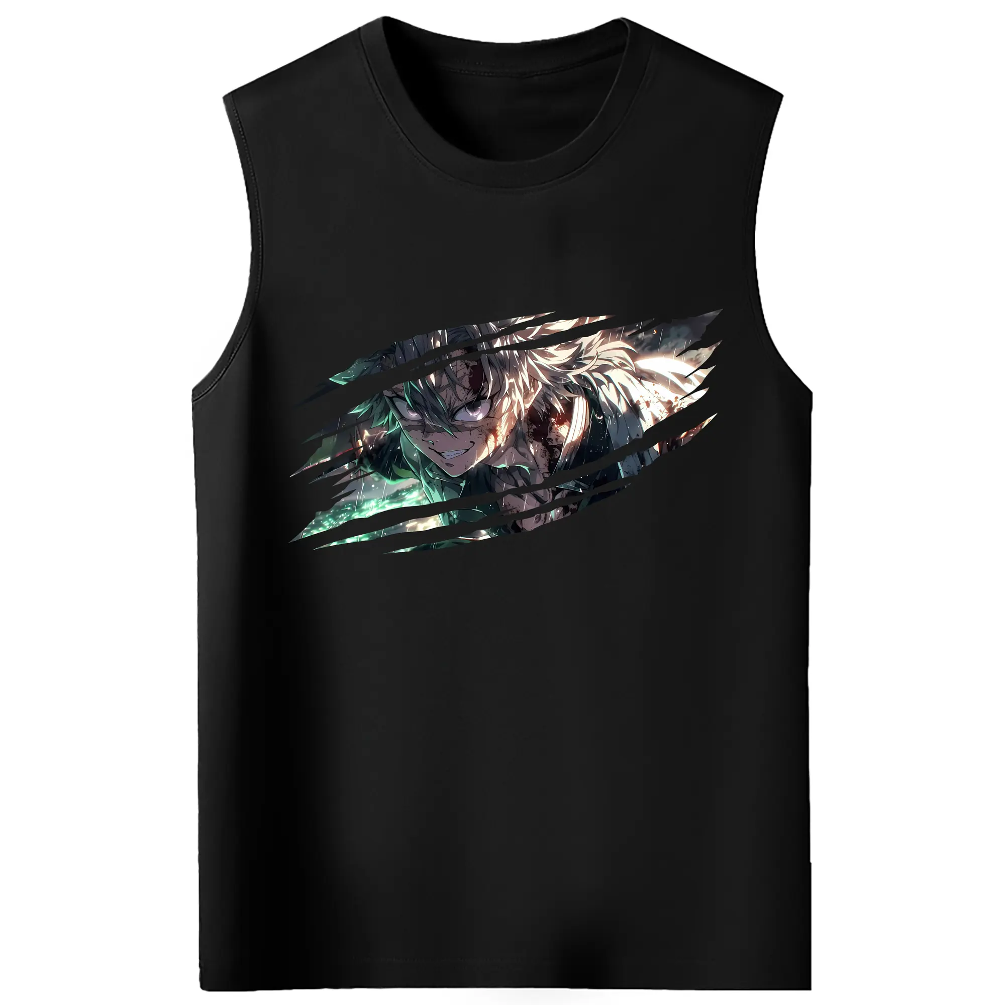 鬼滅の刃 グッズ,不死川 実弥 - コットン100% タンクトップ ・ フロントプリント ・ タイトフィット ・ 快適 通気性 ・ スポーツ カジュアル 散歩用