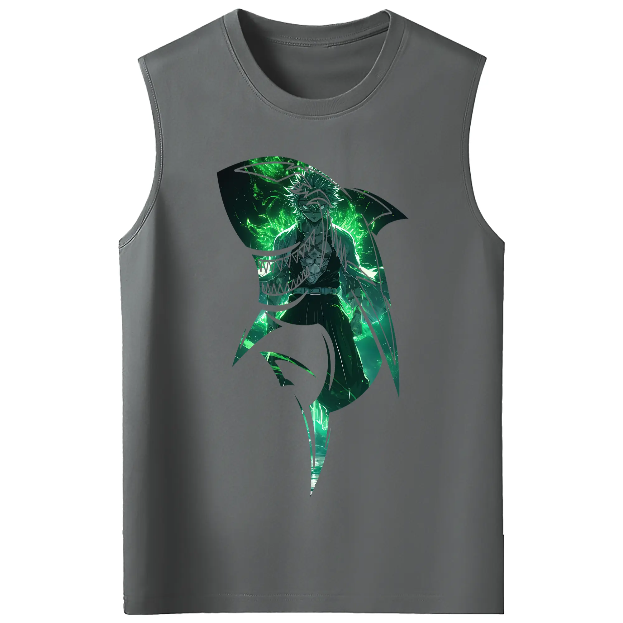 鬼滅の刃 グッズ,不死川 実弥 - コットン100% タンクトップ ・ フロントプリント ・ タイトフィット ・ 快適 通気性 ・ スポーツ カジュアル 散歩用