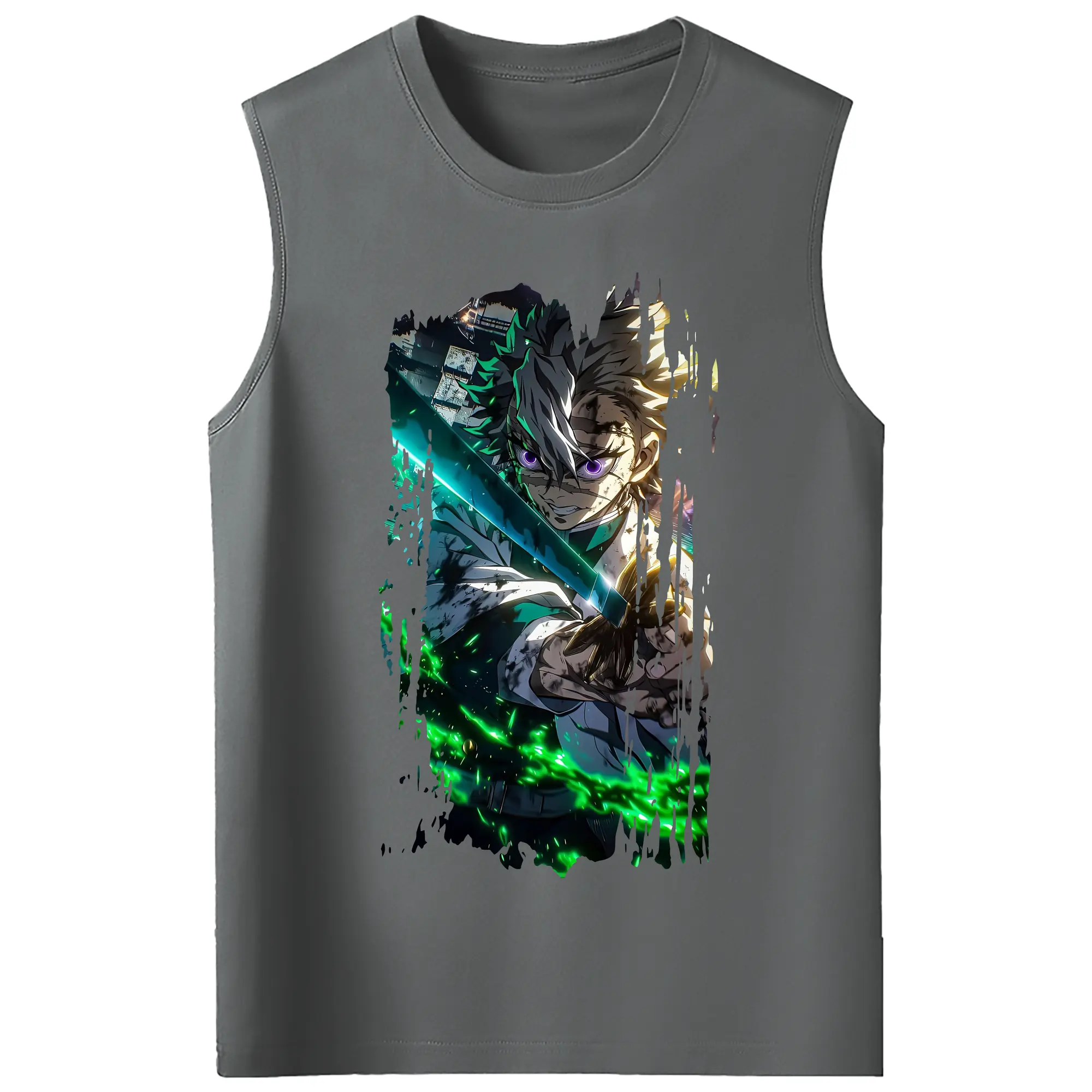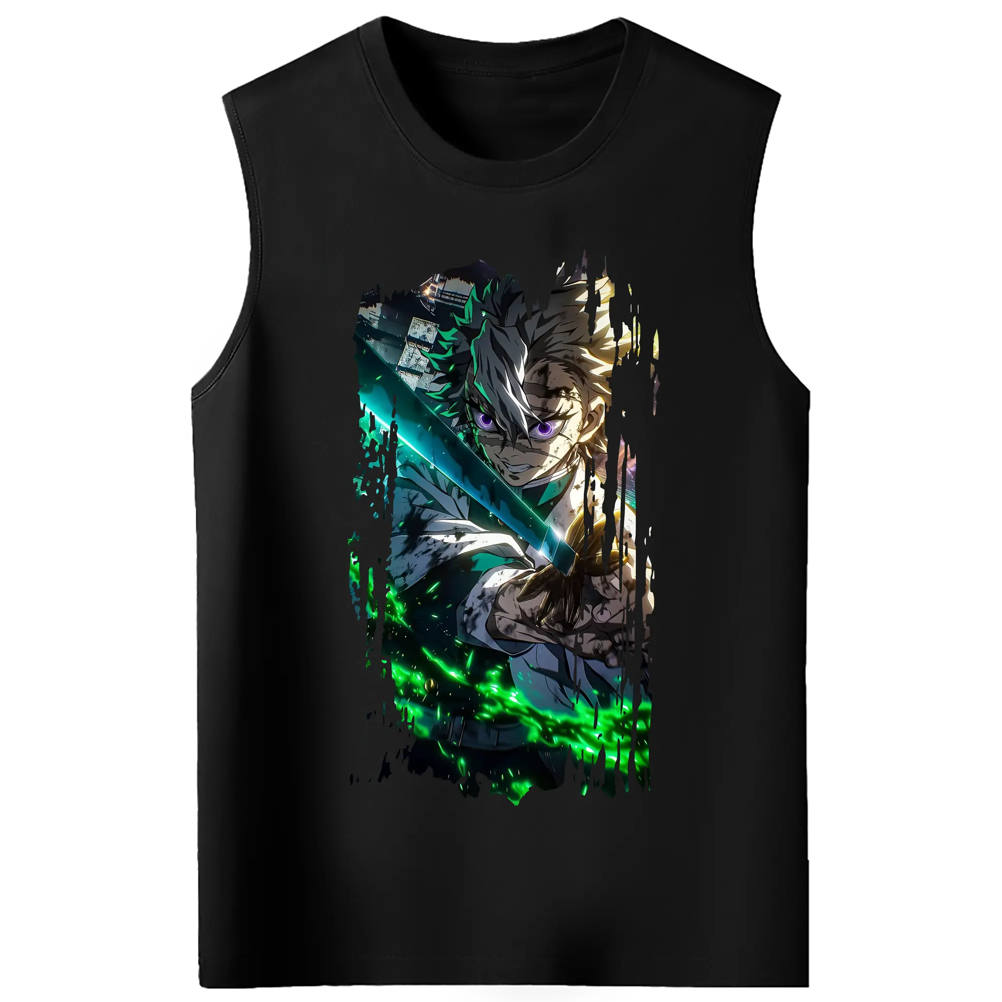 鬼滅の刃 グッズ,不死川 実弥 - コットン100% タンクトップ ・ フロントプリント ・ タイトフィット ・ 快適 通気性 ・ スポーツ カジュアル 散歩用