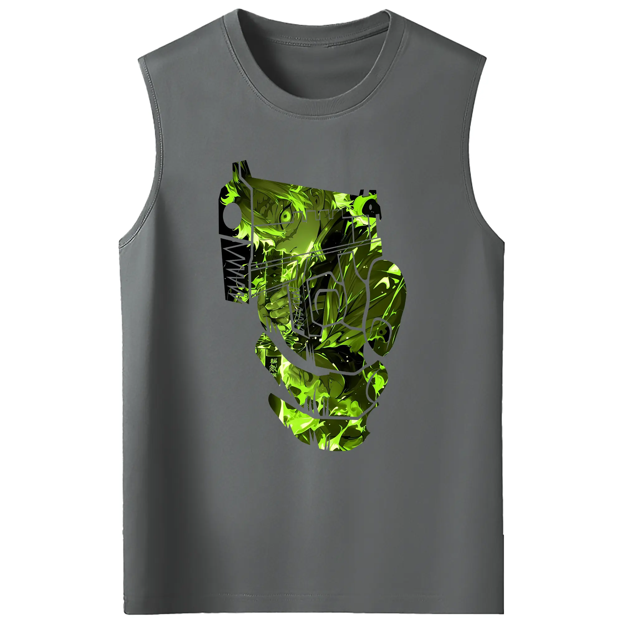 鬼滅の刃 グッズ,不死川 実弥 - コットン100% タンクトップ ・ フロントプリント ・ タイトフィット ・ 快適 通気性 ・ スポーツ カジュアル 散歩用