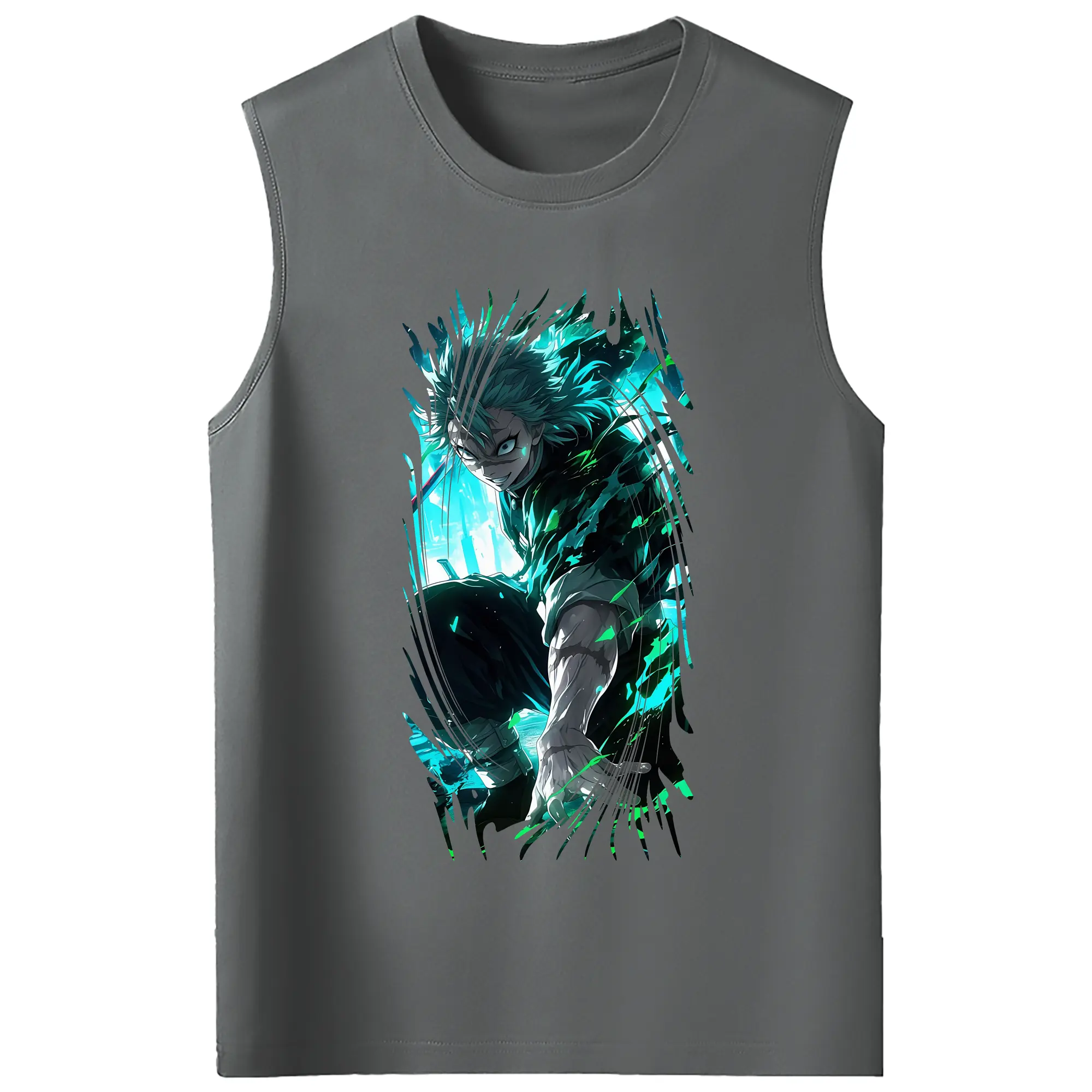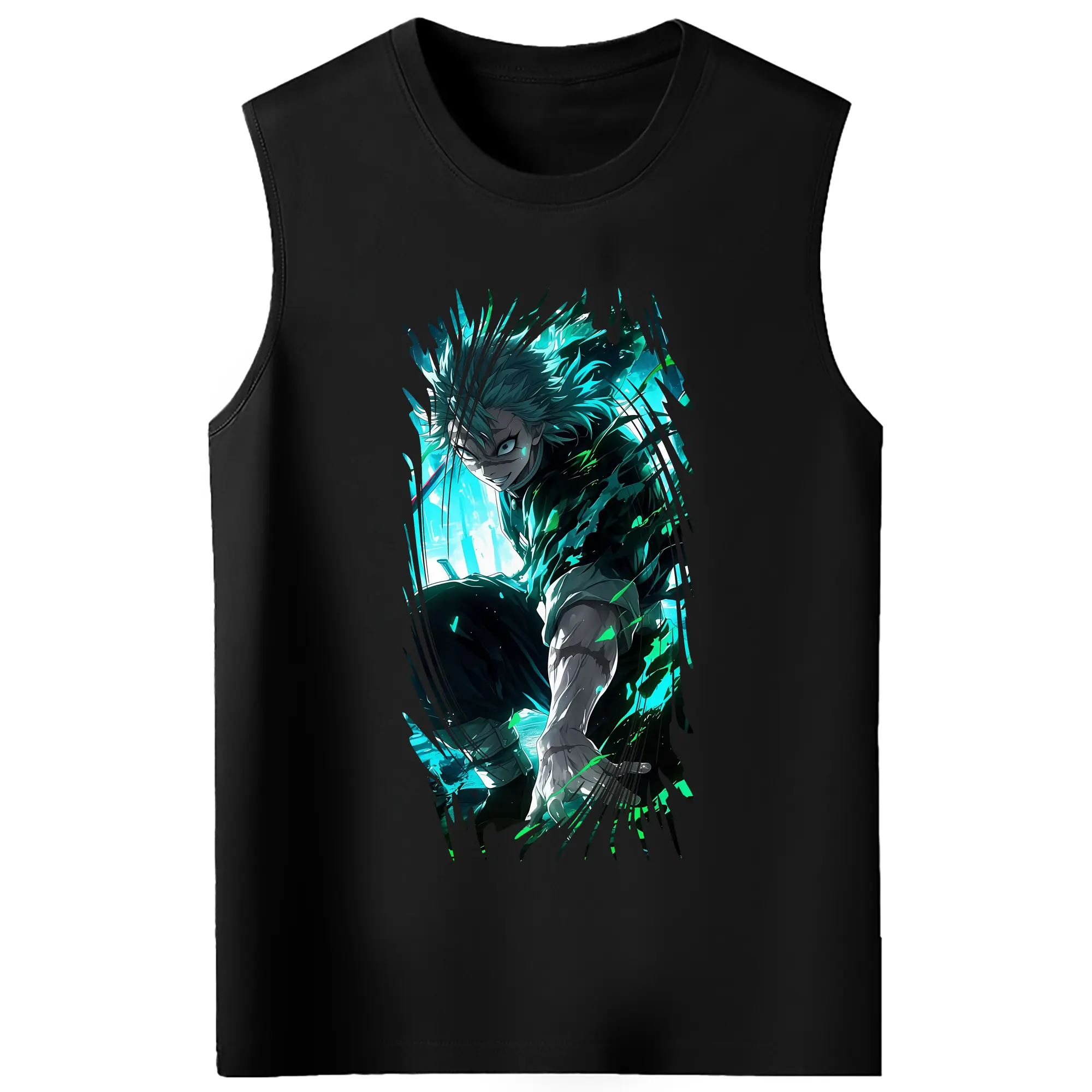 鬼滅の刃 グッズ,不死川 実弥 - コットン100% タンクトップ ・ フロントプリント ・ タイトフィット ・ 快適 通気性 ・ スポーツ カジュアル 散歩用