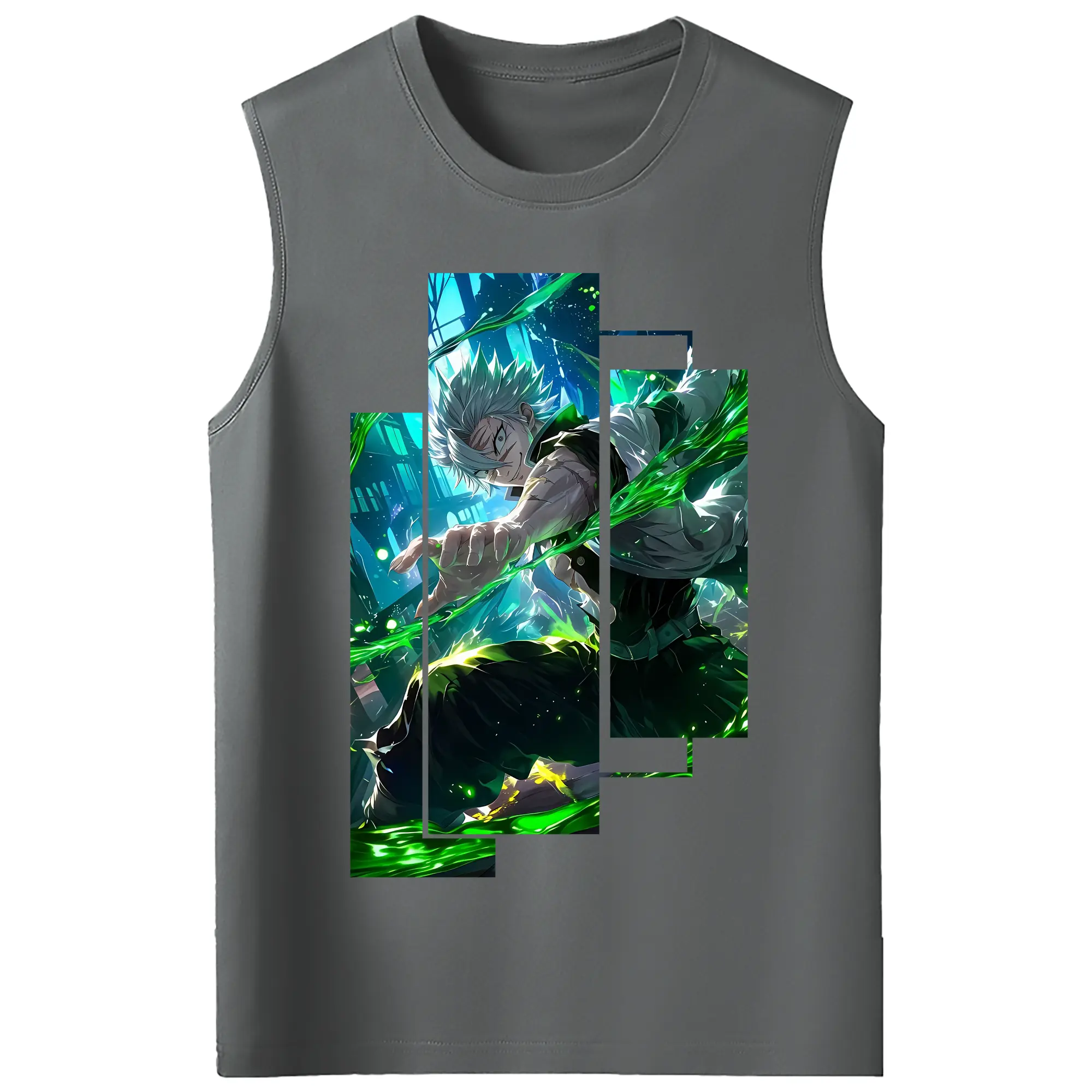 鬼滅の刃 グッズ,不死川 実弥 - コットン100% タンクトップ ・ フロントプリント ・ タイトフィット ・ 快適 通気性 ・ スポーツ カジュアル 散歩用