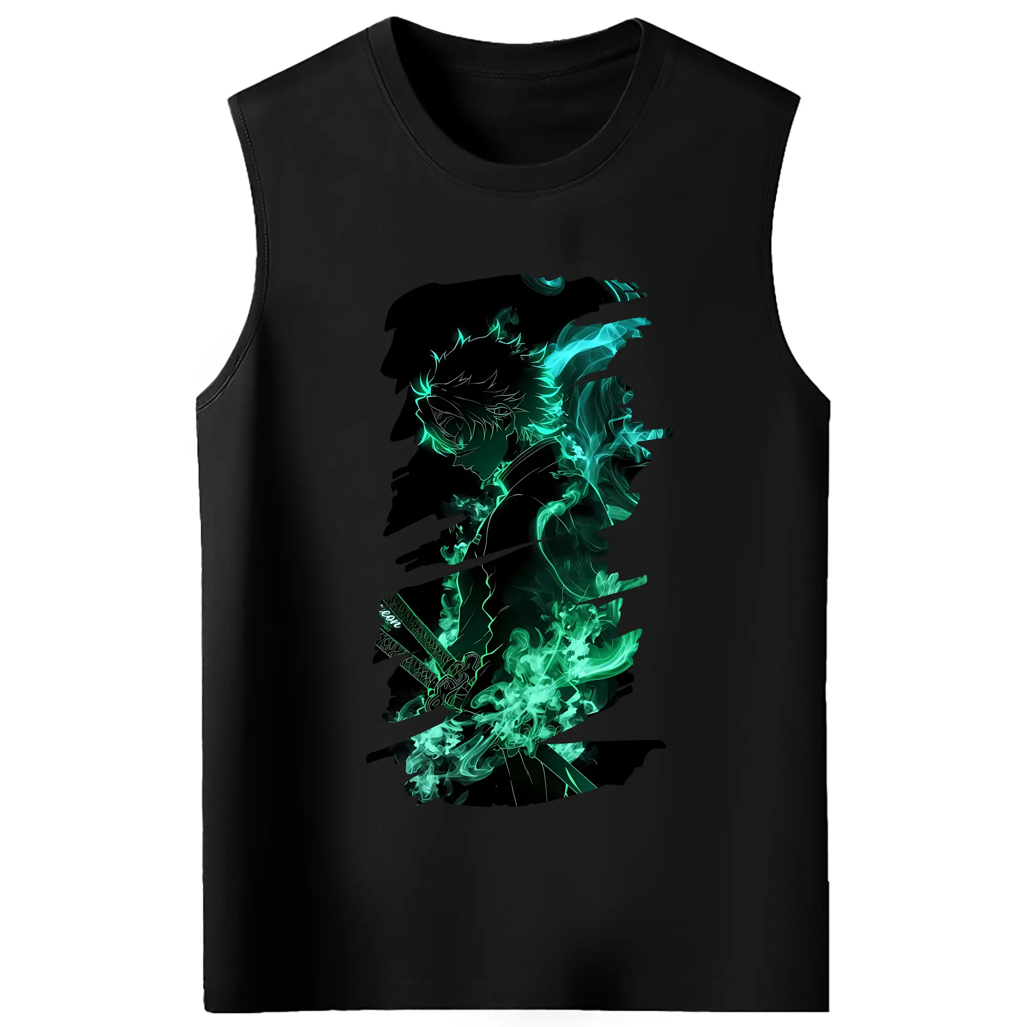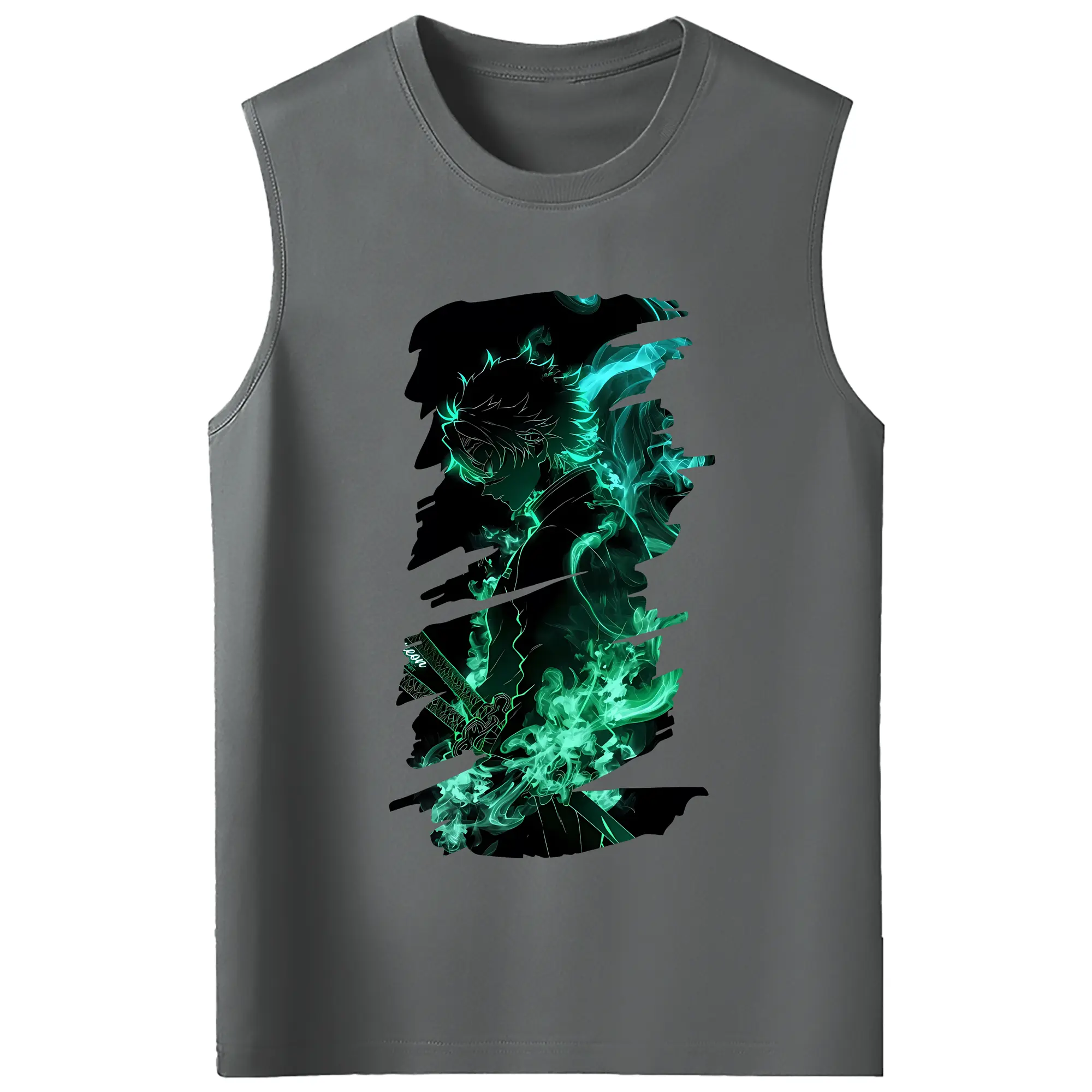 鬼滅の刃 グッズ,不死川 実弥 - コットン100% タンクトップ ・ フロントプリント ・ タイトフィット ・ 快適 通気性 ・ スポーツ カジュアル 散歩用