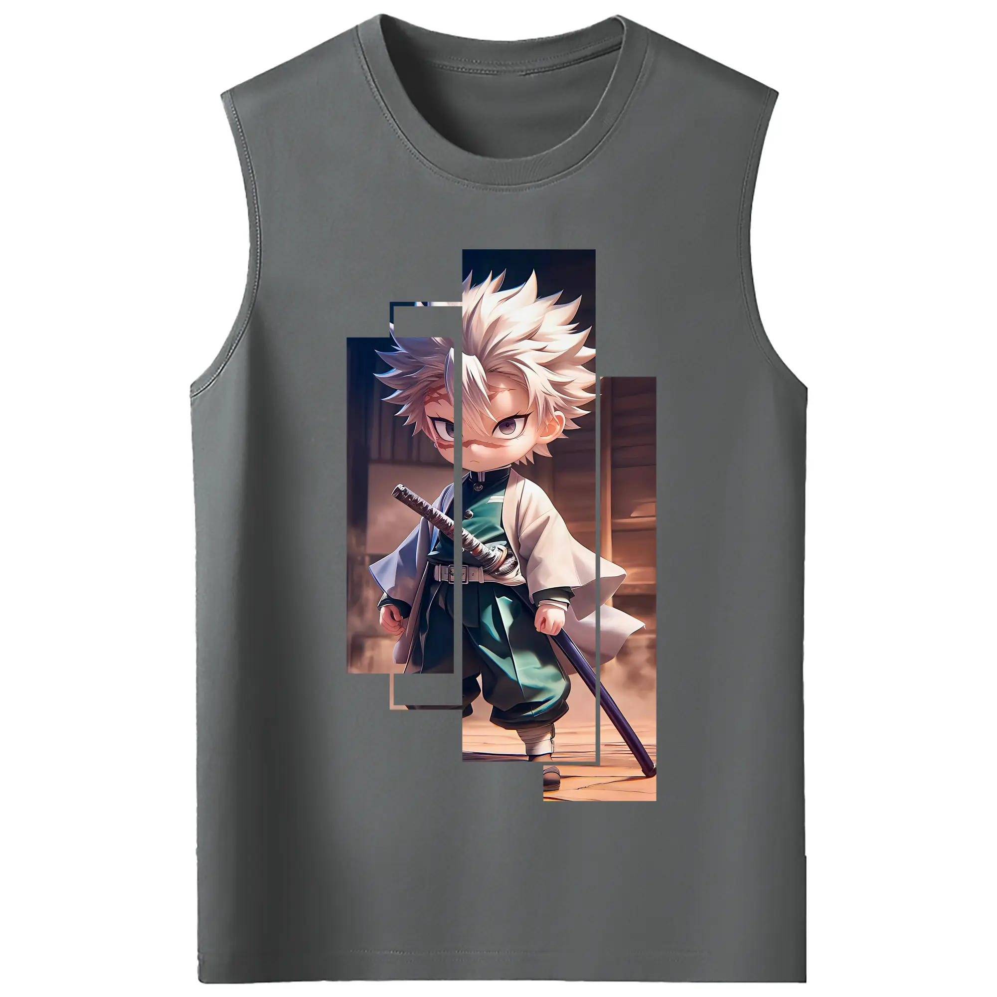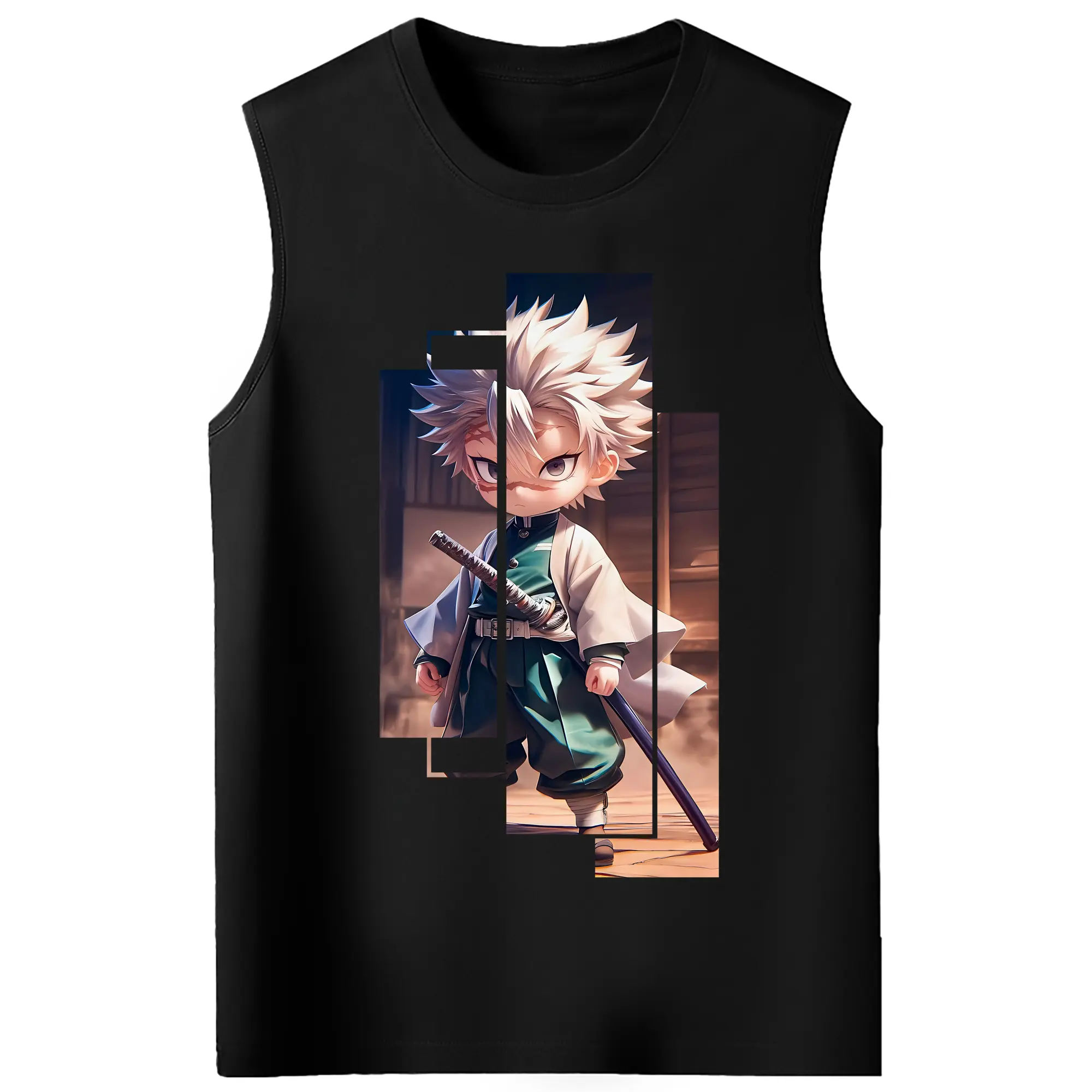鬼滅の刃 グッズ,不死川 実弥 - コットン100% タンクトップ ・ フロントプリント ・ タイトフィット ・ 快適 通気性 ・ スポーツ カジュアル 散歩用