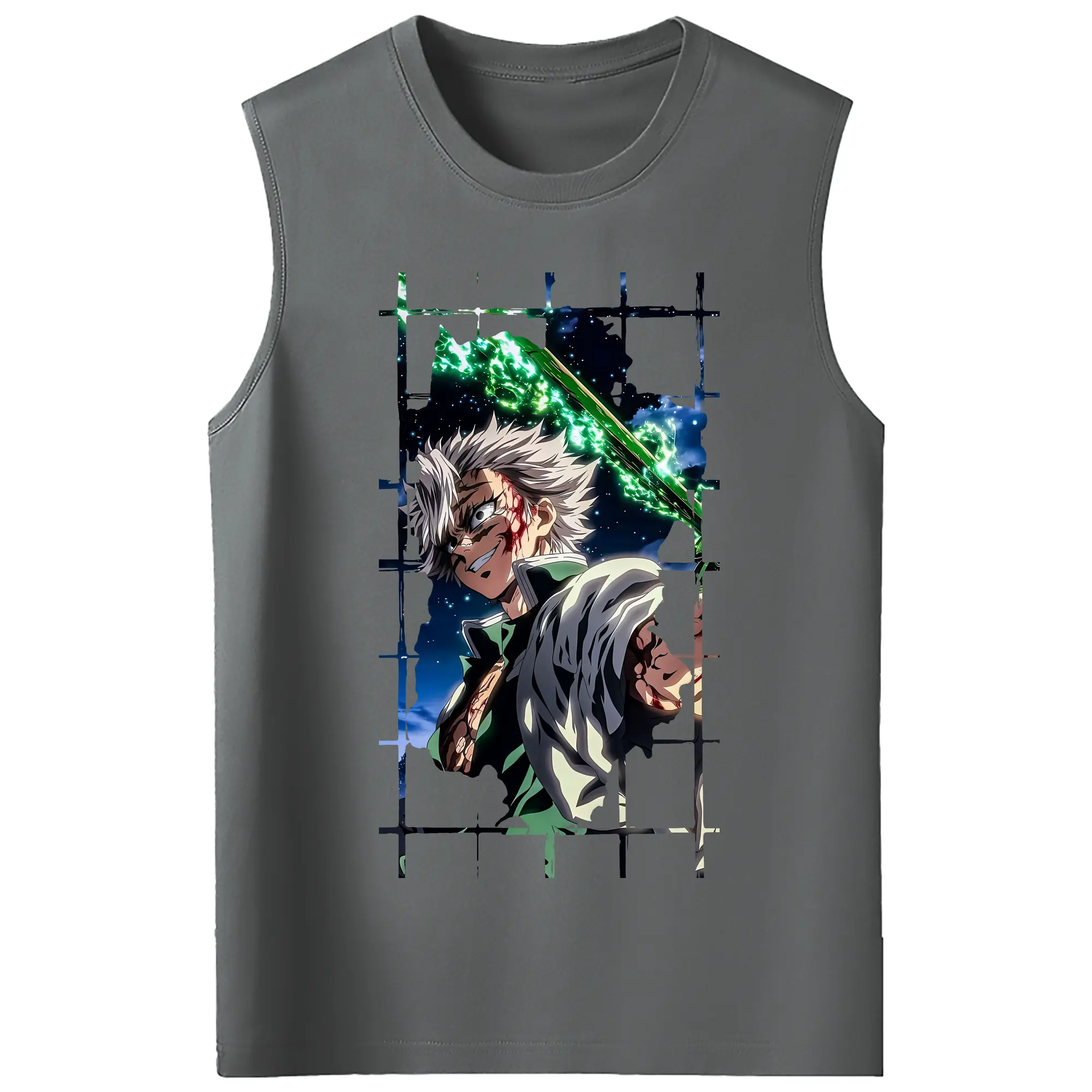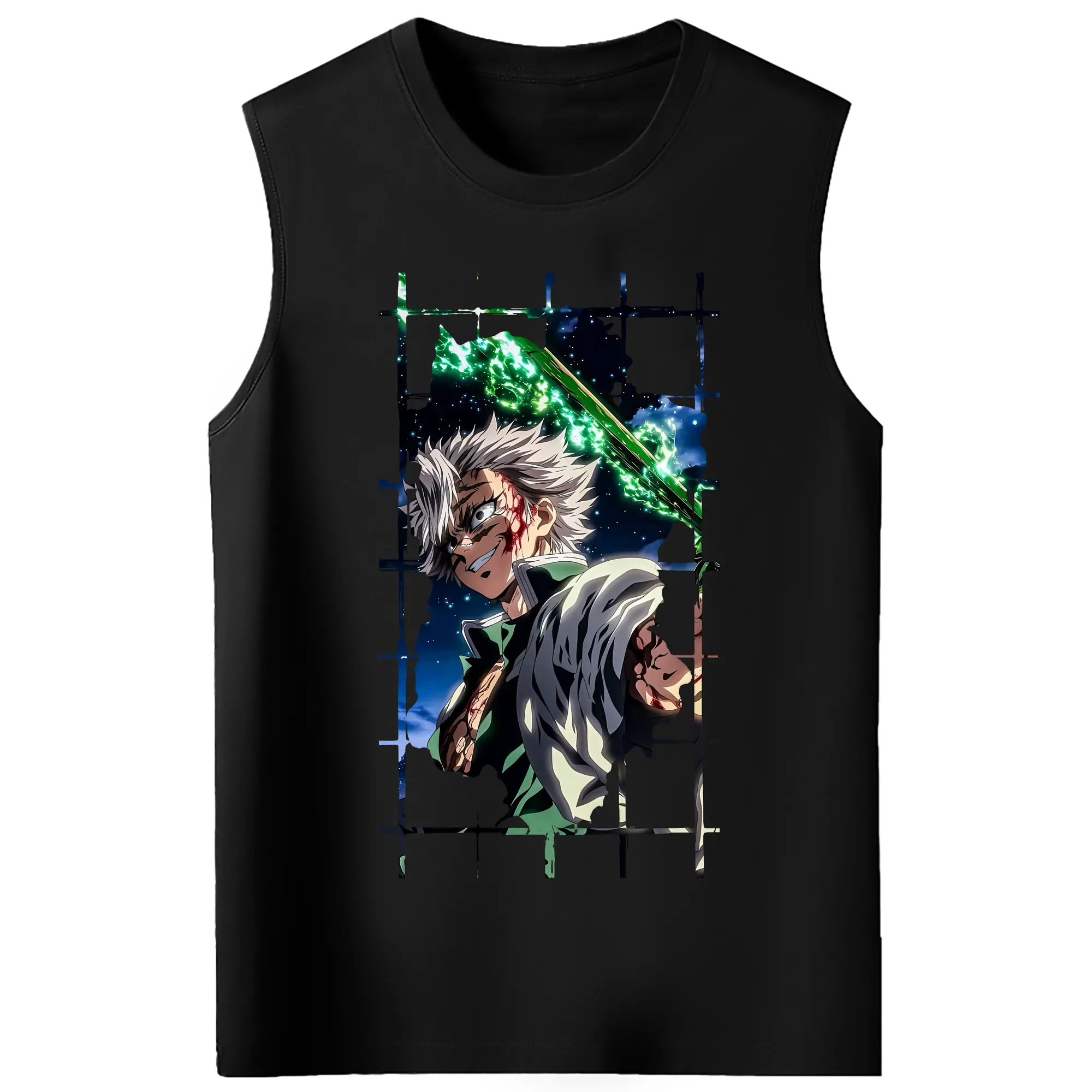 鬼滅の刃 グッズ,不死川 実弥 - コットン100% タンクトップ ・ フロントプリント ・ タイトフィット ・ 快適 通気性 ・ スポーツ カジュアル 散歩用