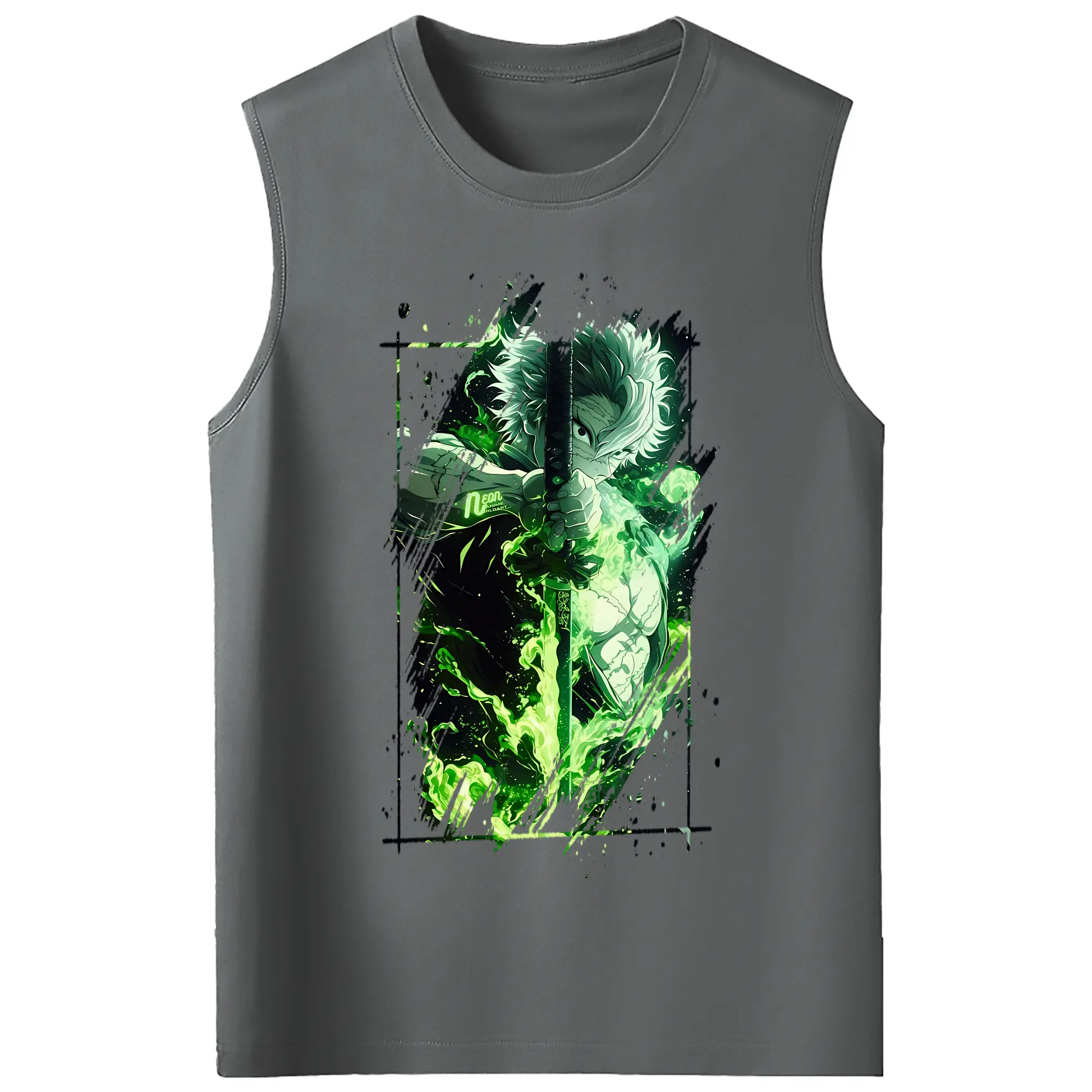 鬼滅の刃 グッズ,不死川 実弥 - コットン100% タンクトップ ・ フロントプリント ・ タイトフィット ・ 快適 通気性 ・ スポーツ カジュアル 散歩用