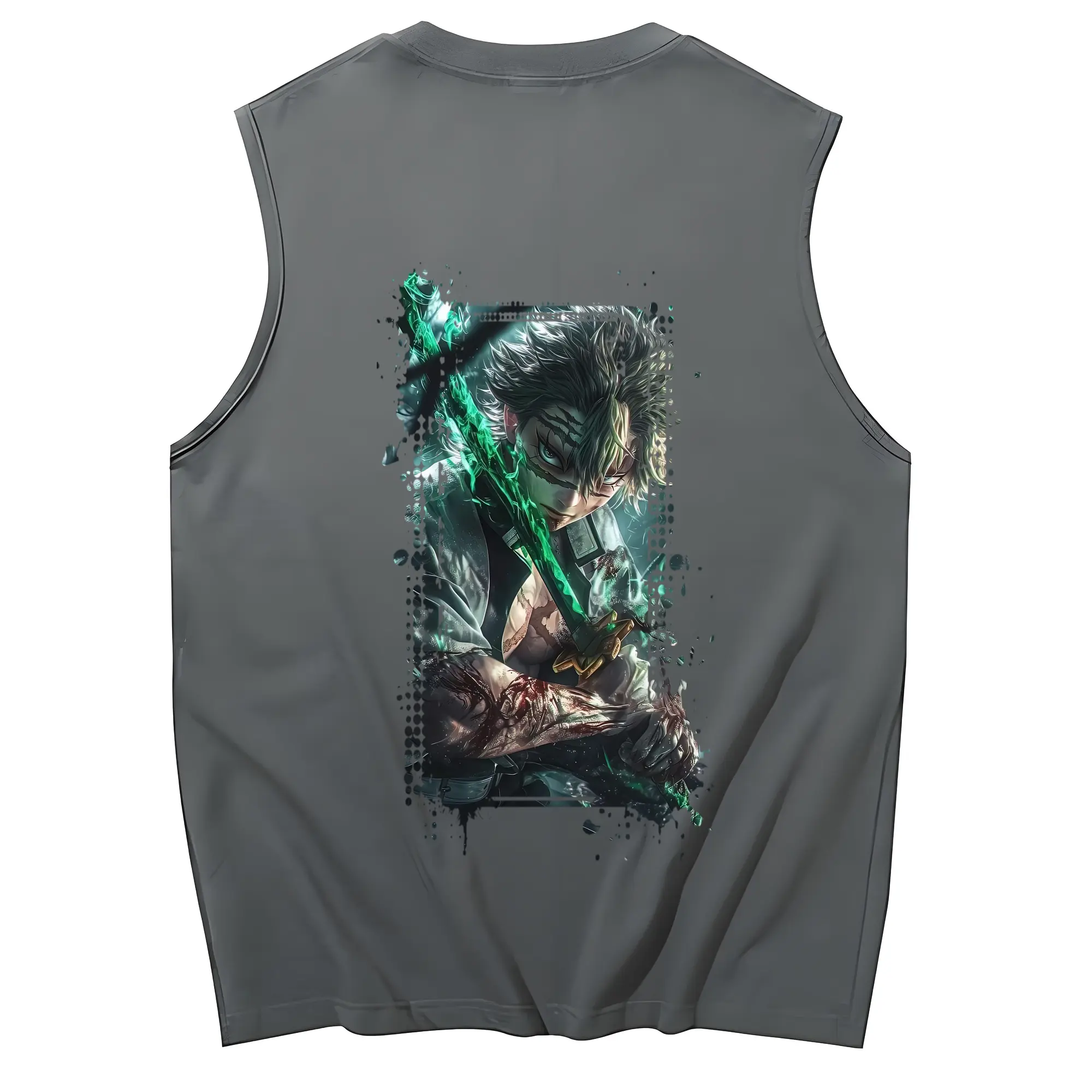 鬼滅の刃 グッズ,不死川 実弥 - コットン100% タンクトップ ・ 背面プリント ・ タイトシルエット ・ 快適 通気性 ・ スポーツ カジュアル 散歩用