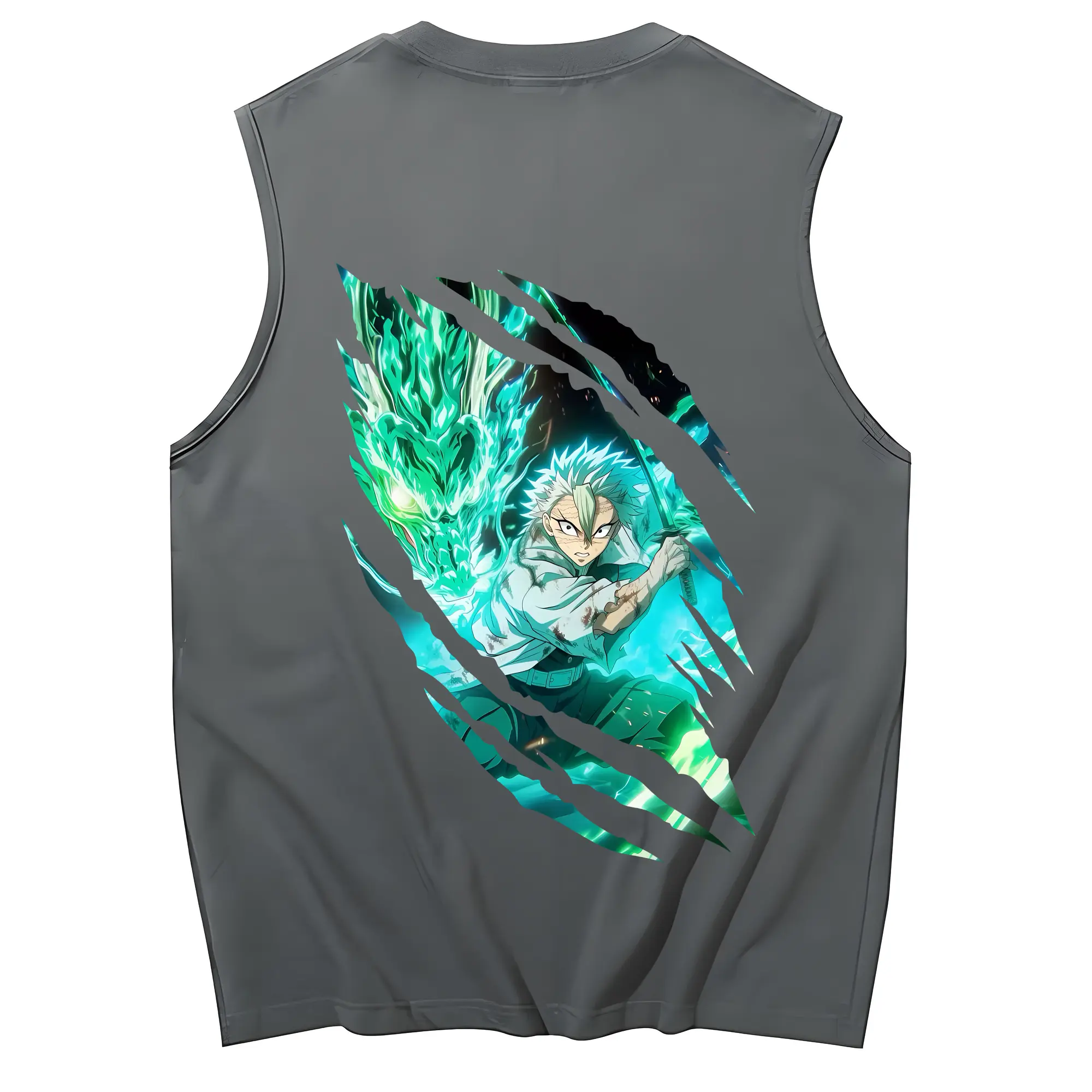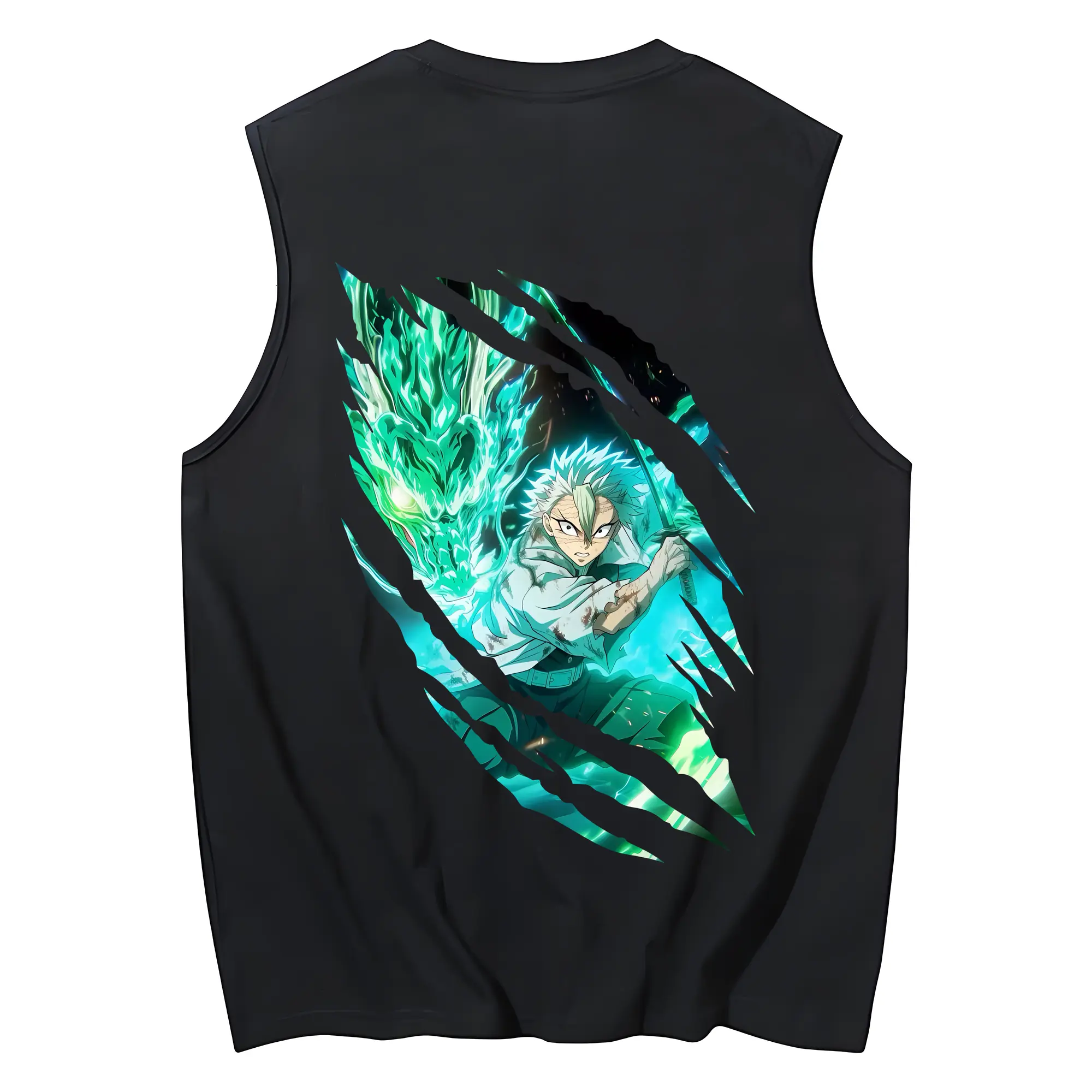 鬼滅の刃 グッズ,不死川 実弥 - コットン100% タンクトップ ・ 背面プリント ・ タイトシルエット ・ 快適 通気性 ・ スポーツ カジュアル 散歩用
