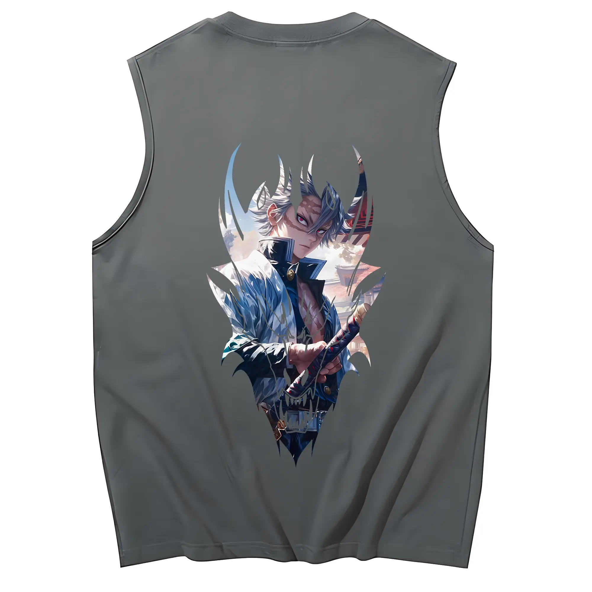 鬼滅の刃 グッズ,不死川 実弥 - コットン100% タンクトップ ・ 背面プリント ・ タイトシルエット ・ 快適 通気性 ・ スポーツ カジュアル 散歩用