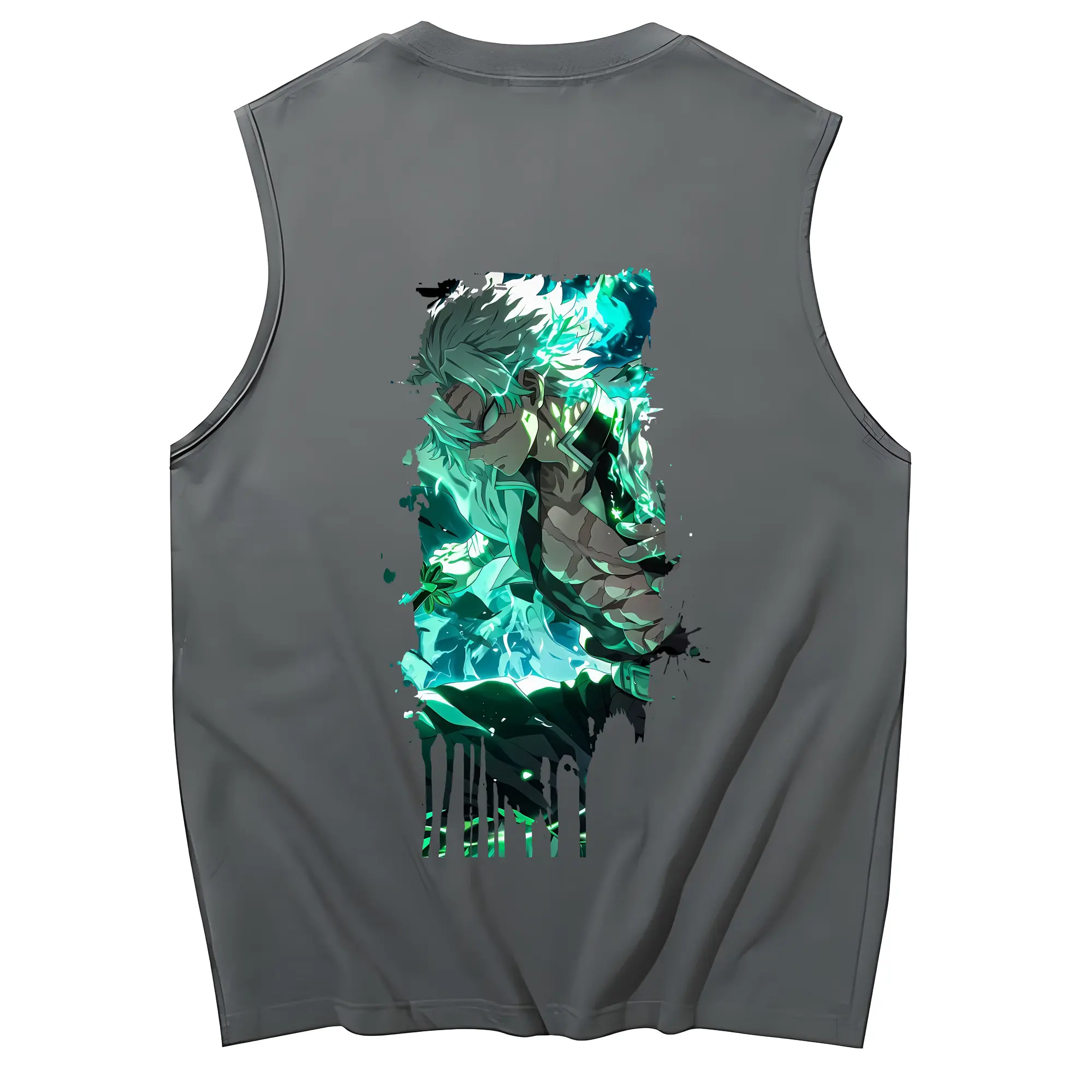 鬼滅の刃 グッズ,不死川 実弥 - コットン100% タンクトップ ・ 背面プリント ・ タイトシルエット ・ 快適 通気性 ・ スポーツ カジュアル 散歩用