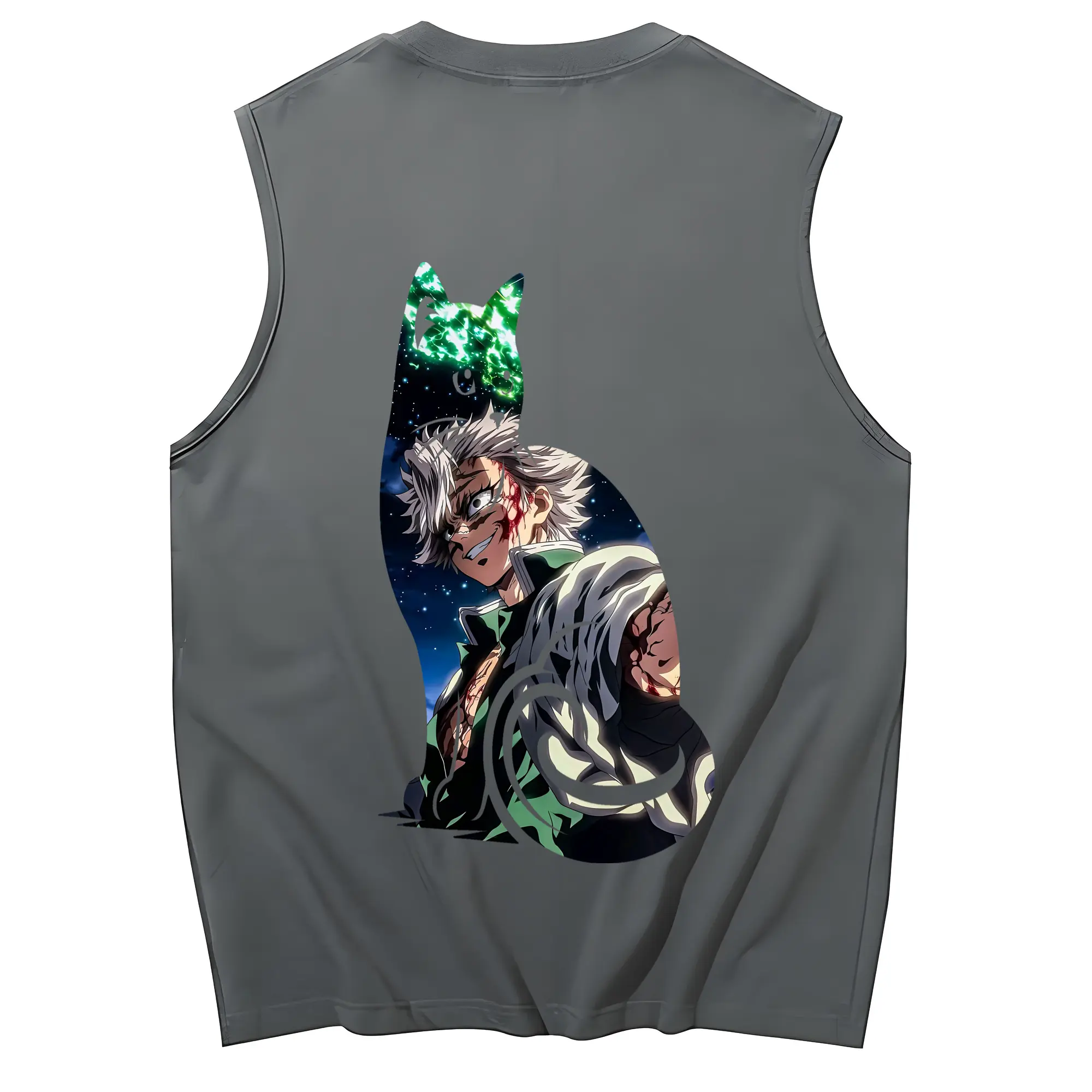 鬼滅の刃 グッズ,不死川 実弥 - コットン100% タンクトップ ・ 背面プリント ・ タイトシルエット ・ 快適 通気性 ・ スポーツ カジュアル 散歩用