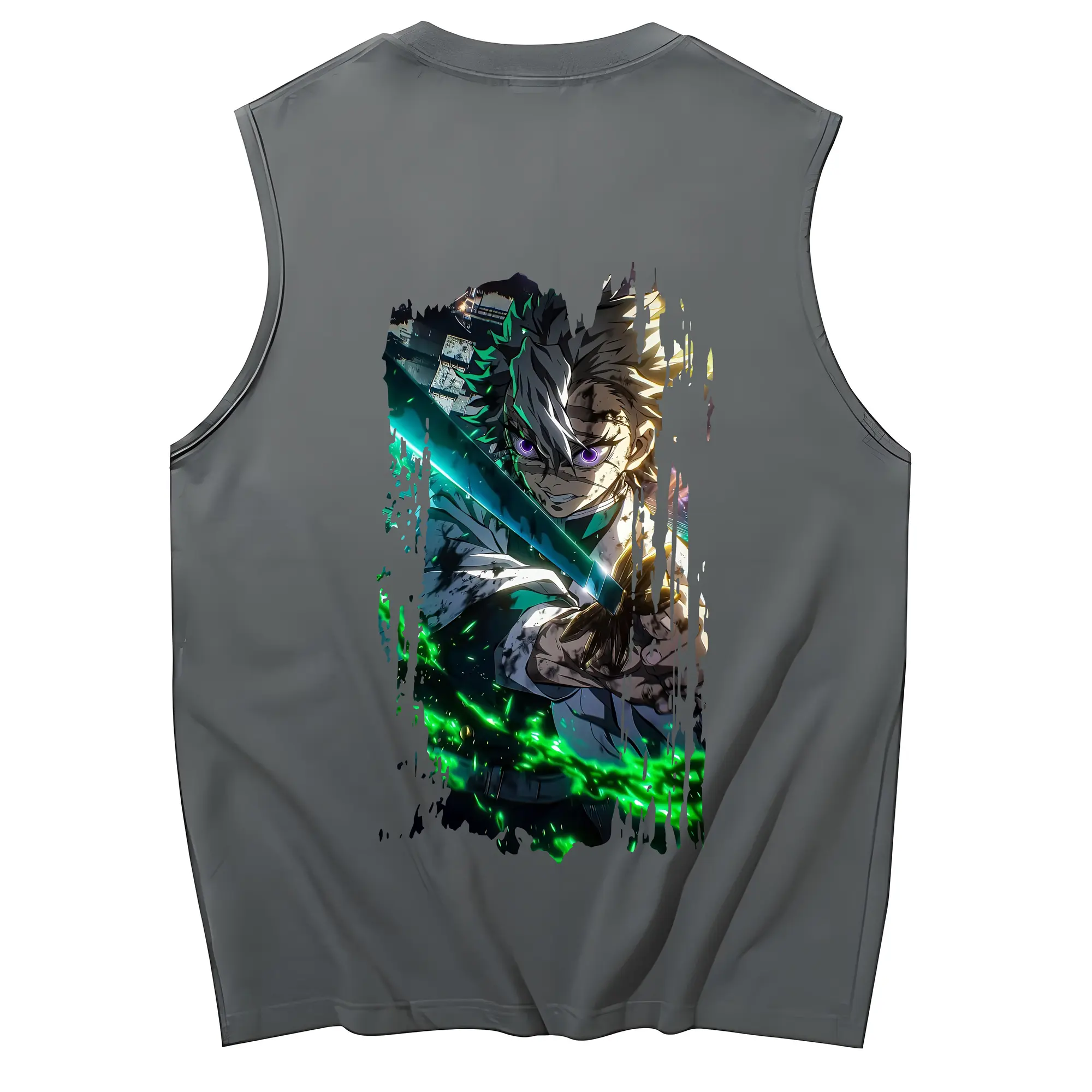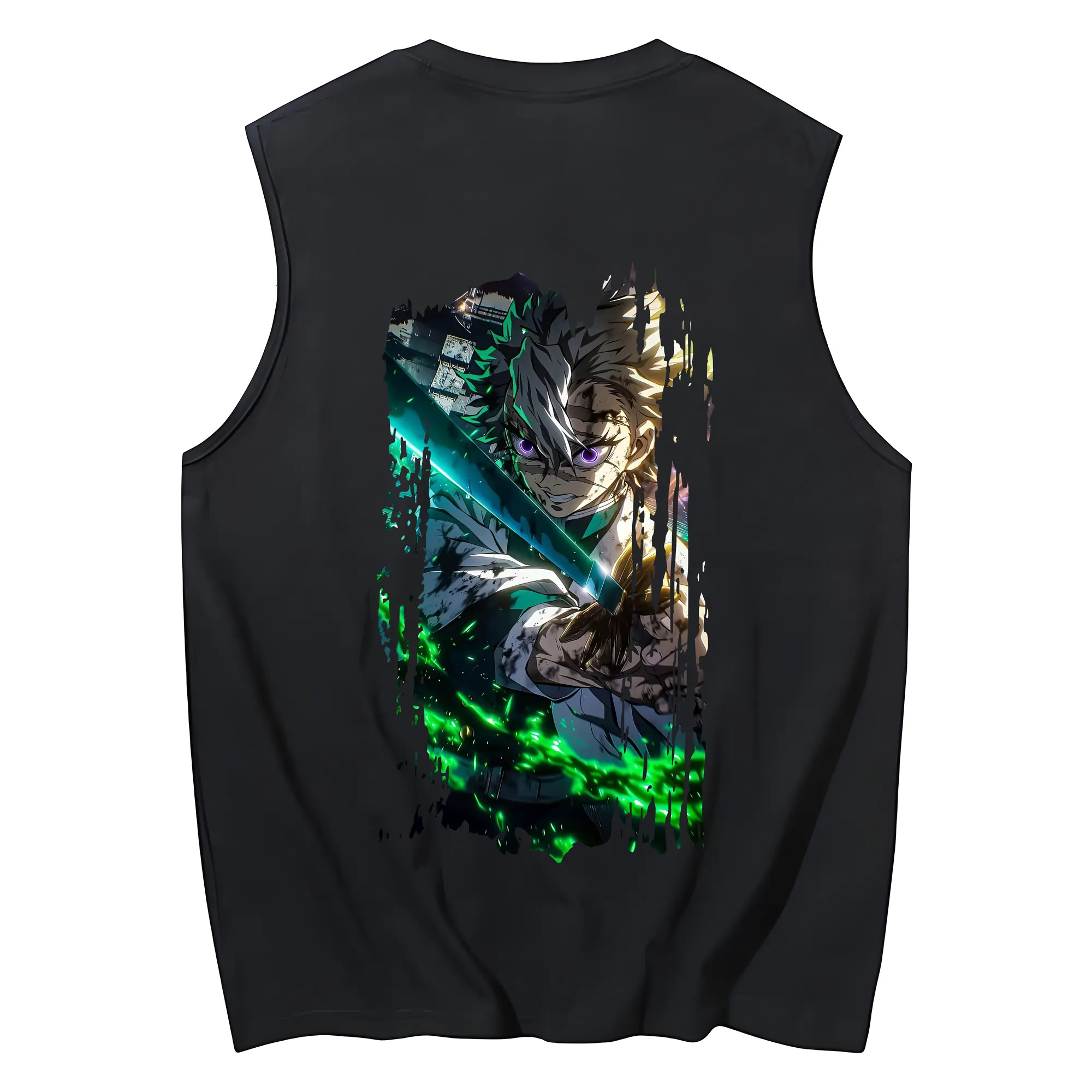 鬼滅の刃 グッズ,不死川 実弥 - コットン100% タンクトップ ・ 背面プリント ・ タイトシルエット ・ 快適 通気性 ・ スポーツ カジュアル 散歩用