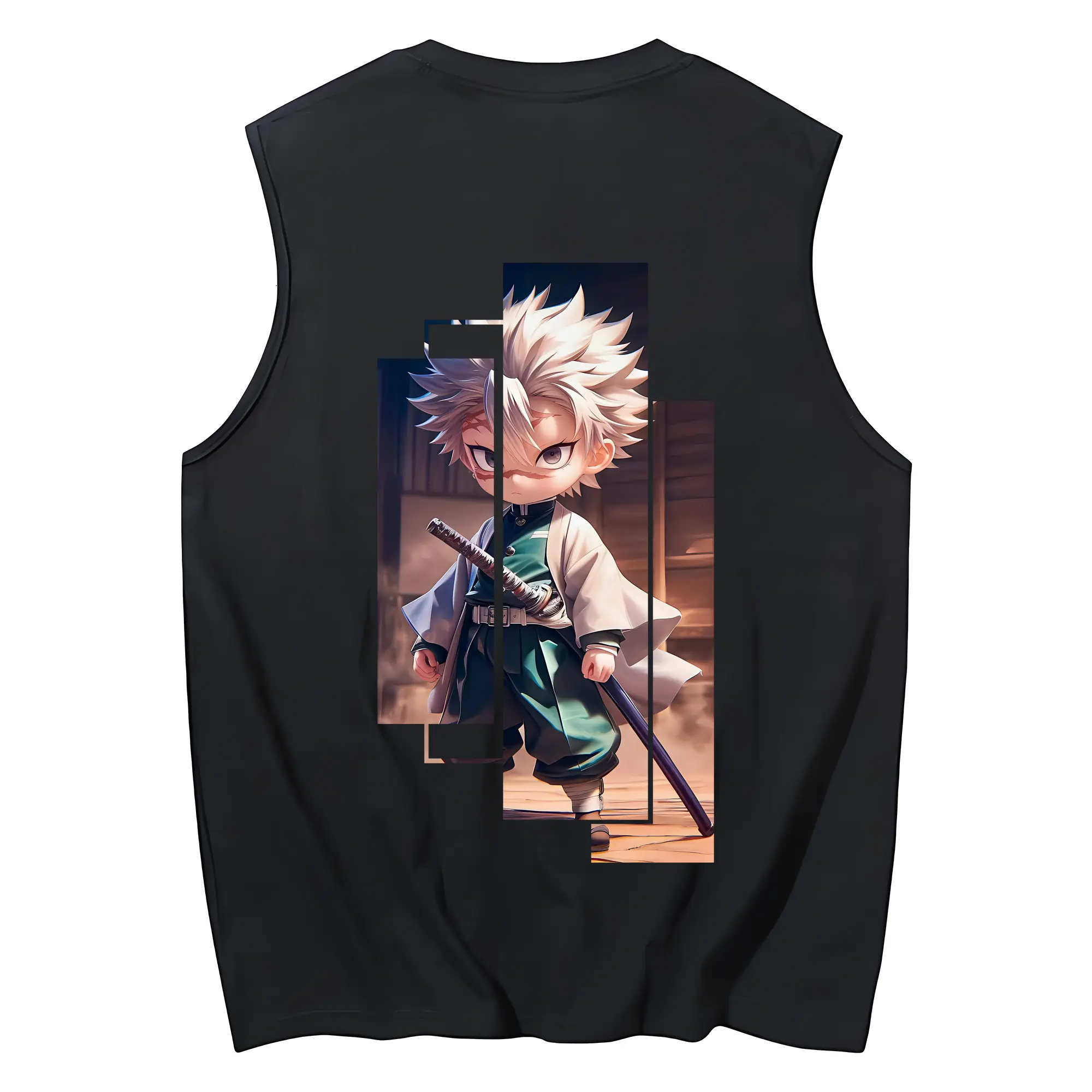 鬼滅の刃 グッズ,不死川 実弥 - コットン100% タンクトップ ・ 背面プリント ・ タイトシルエット ・ 快適 通気性 ・ スポーツ カジュアル 散歩用