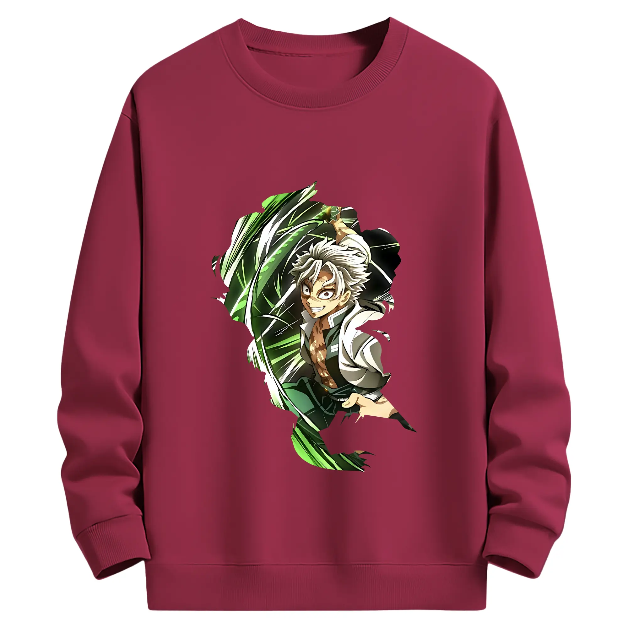 鬼滅の刃 グッズ,不死川 実弥 - 薄手 クルーネック スウェット 裏毛260g · ポリエステル 春秋向け カジュアル 男女兼用 · トレーナー デイリー スポーツ 散歩に最適