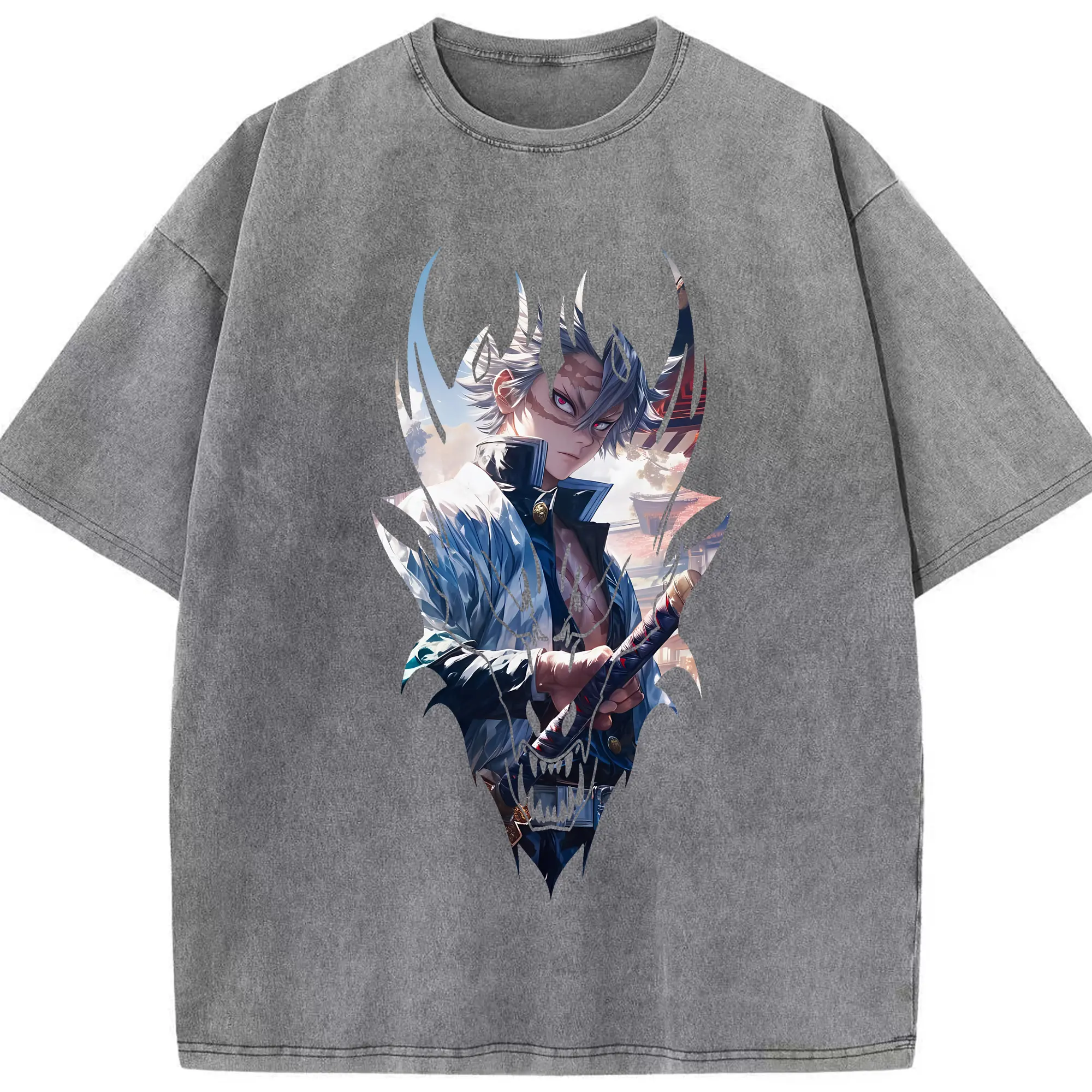 鬼滅の刃 グッズ,時透 無一郎 - 綿100% ヴィンテージ風 半袖Tシャツ ・ フロントプリント ・ 柔らか肌触り ・ 通気性 快適 ・ スポーツ カジュアル 外出用