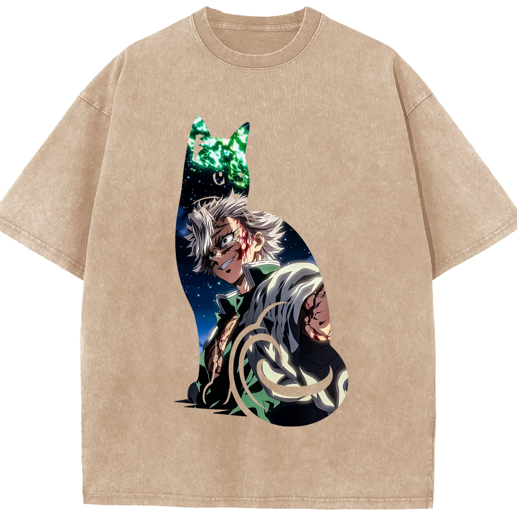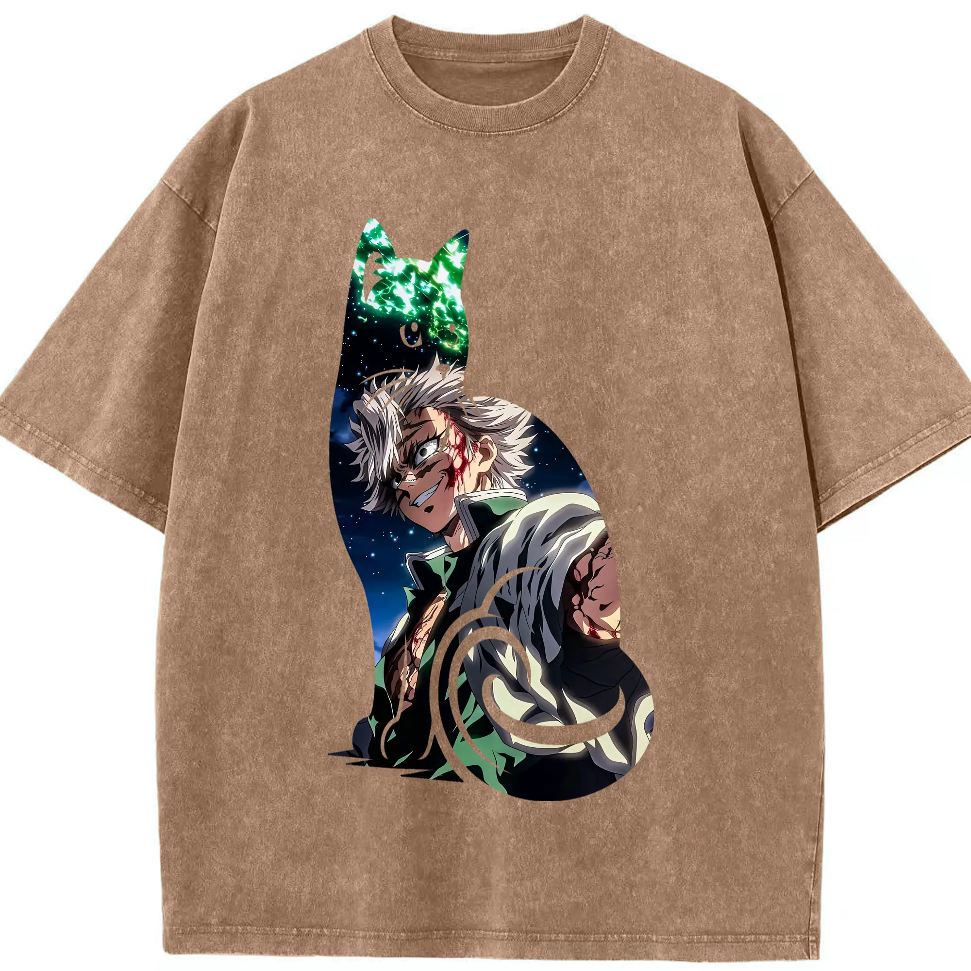 鬼滅の刃 グッズ,不死川 実弥 - 綿100% 半袖Tシャツ ・ フロントプリント ・ 快適 通気性 ・ 日常使い 散歩 スポーツ用