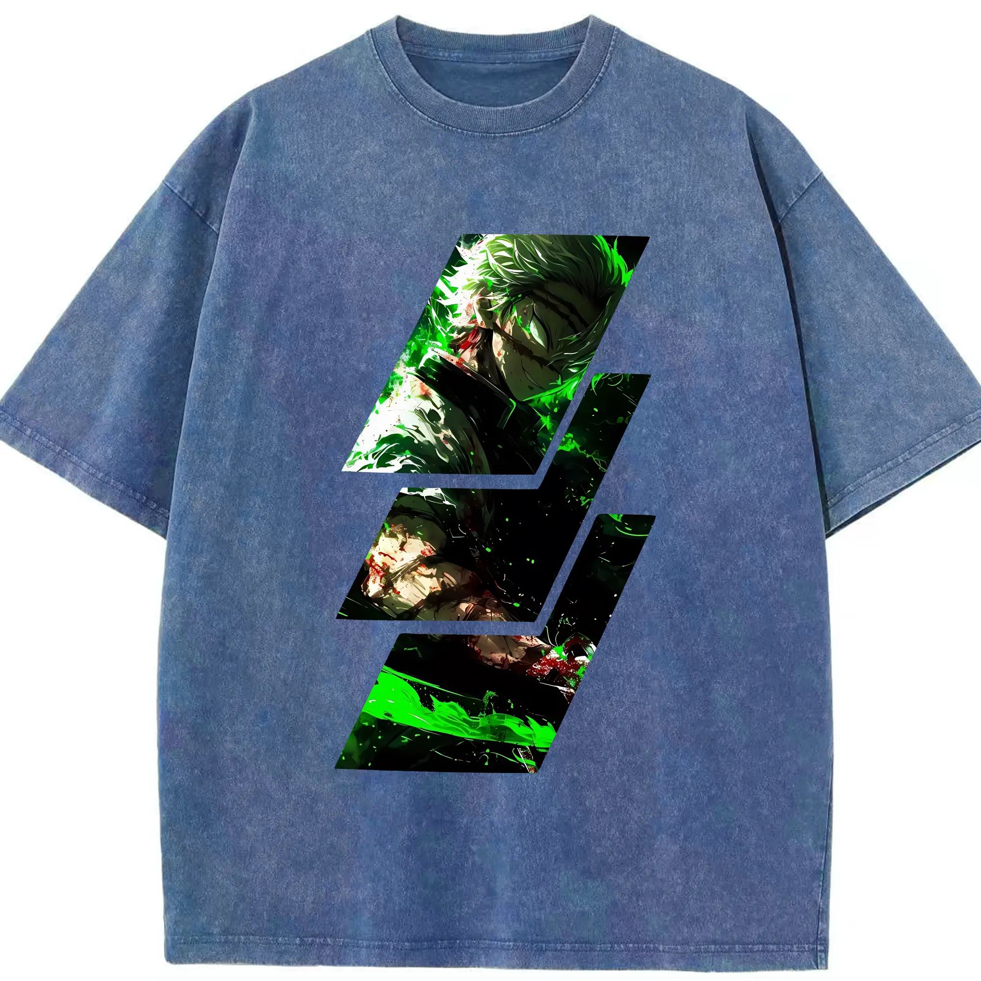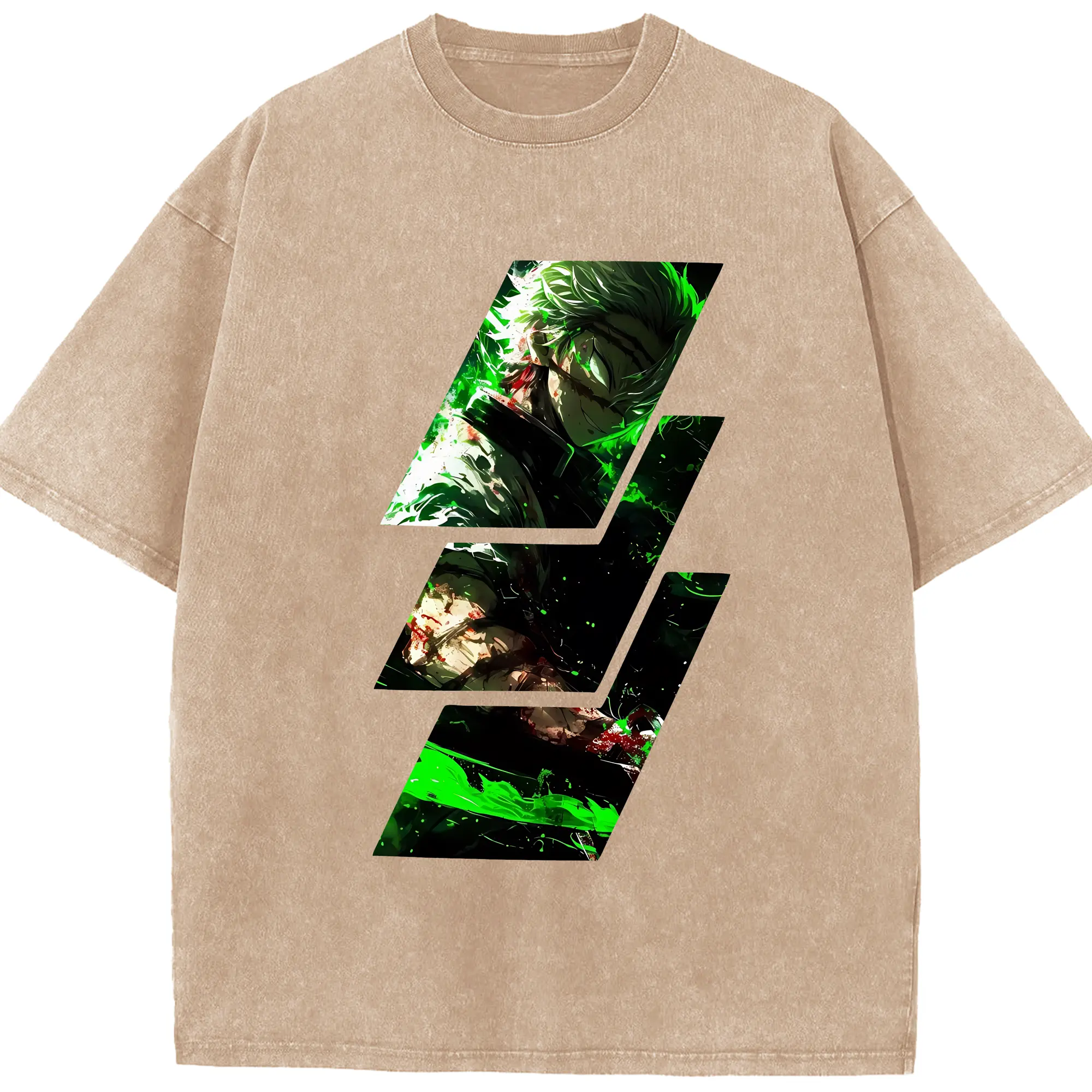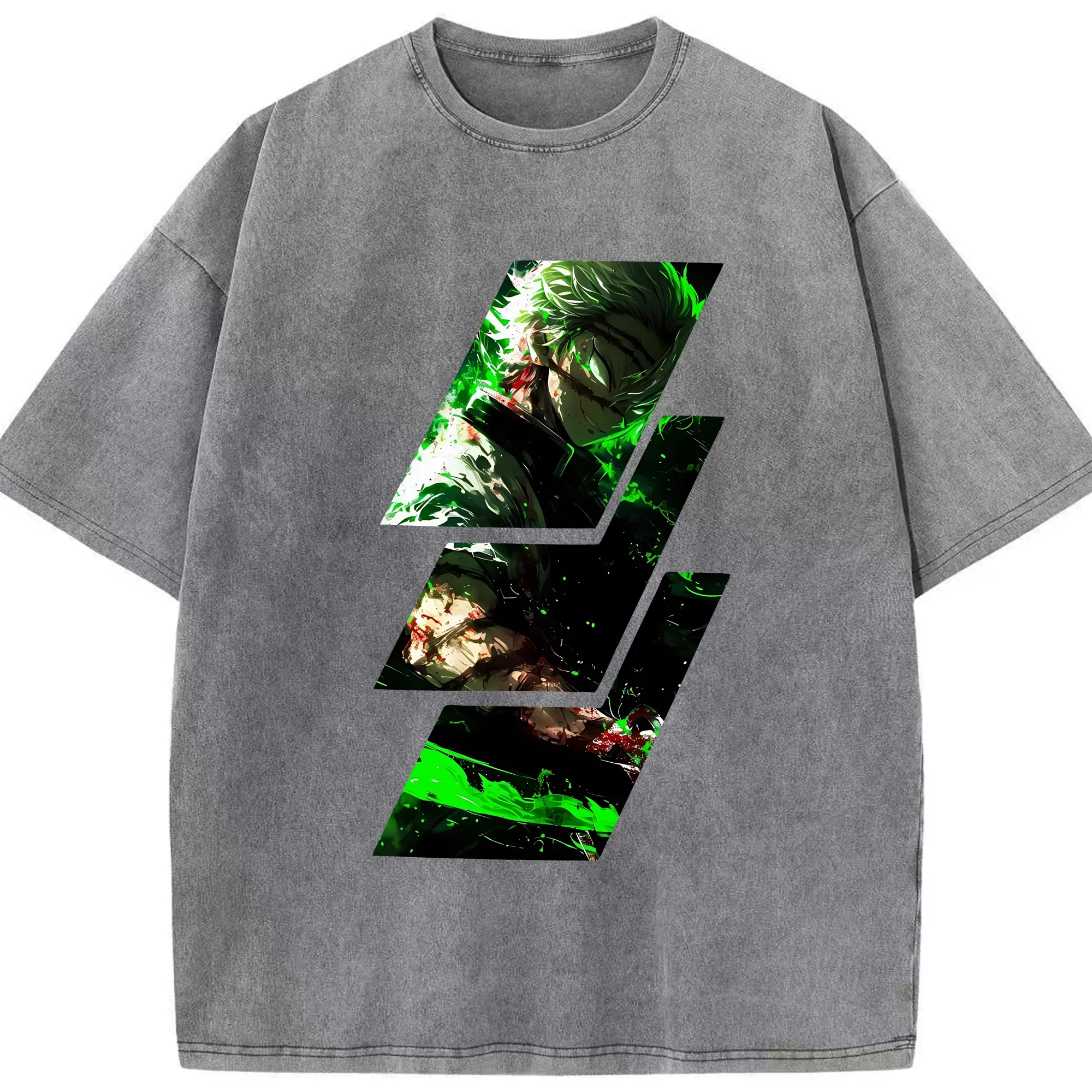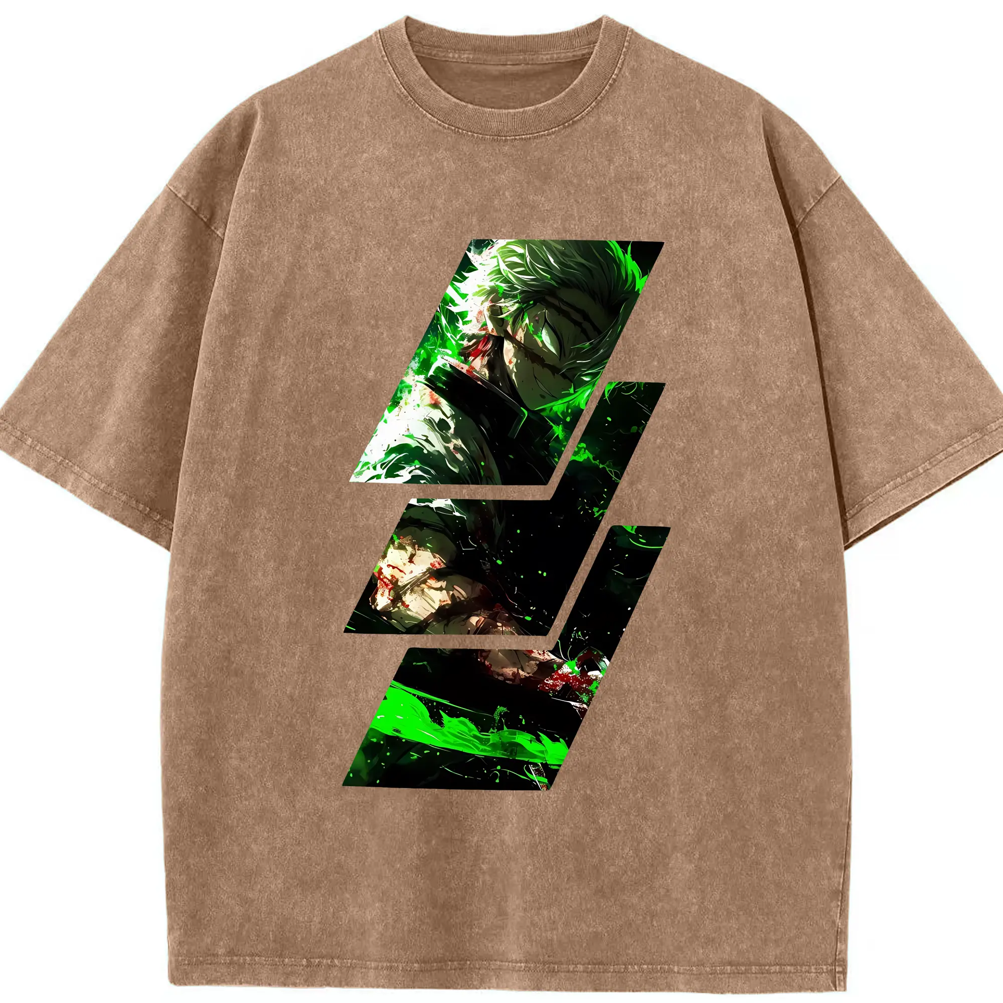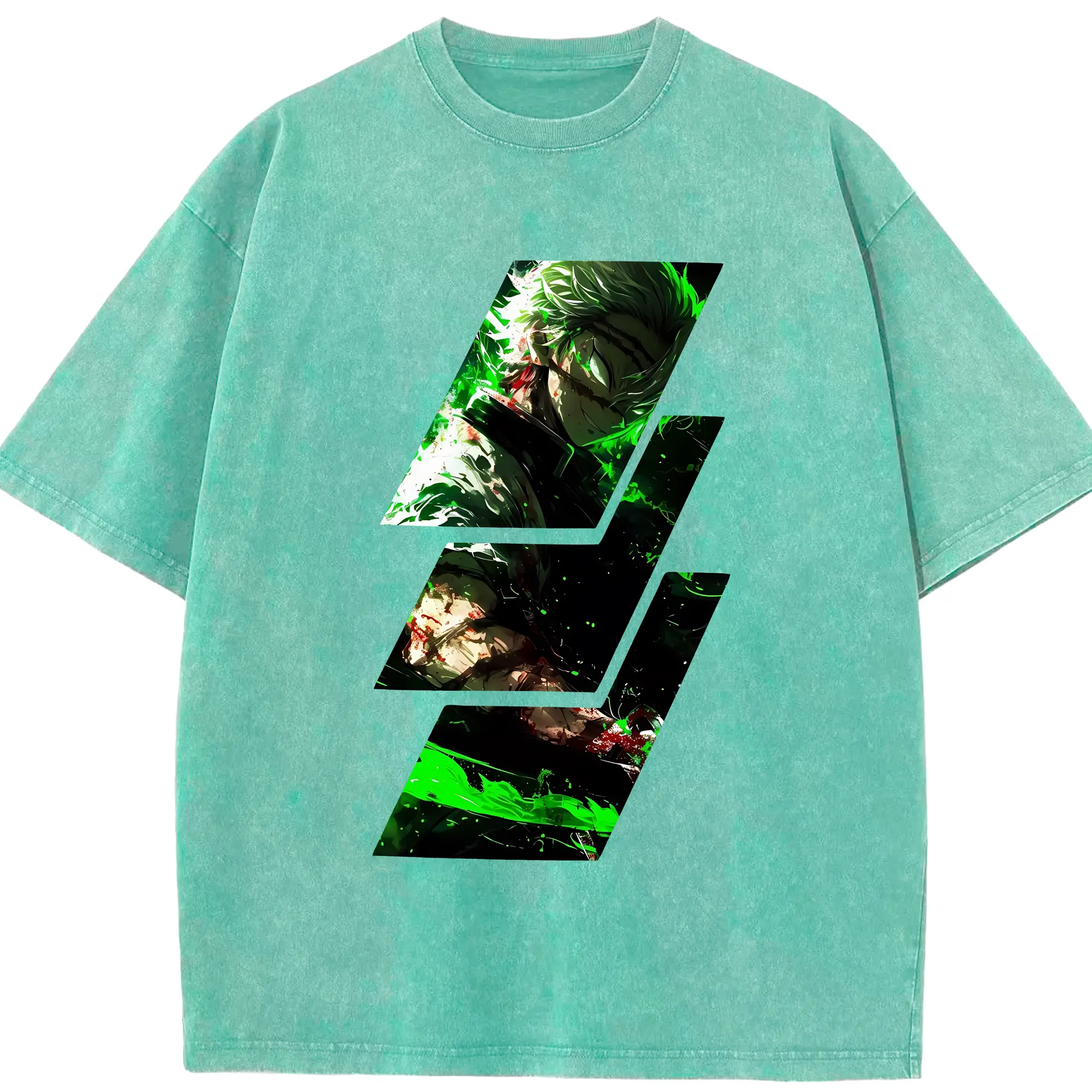 ワンピース グッズ ロロノア・ゾロ - 綿100% ヴィンテージ風 半袖Tシャツ ・ フロントプリント ・ 柔らか肌触り ・ 通気性 快適 ・ スポーツ カジュアル 外出用