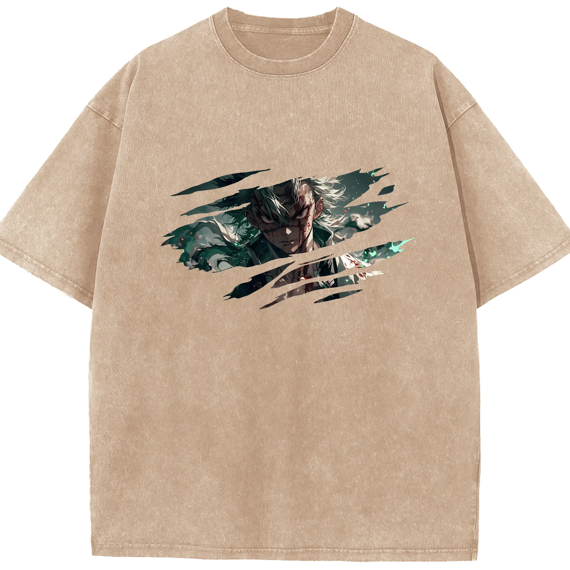 ワンピース グッズ ロロノア・ゾロ - 綿100% ヴィンテージ風 半袖Tシャツ ・ フロントプリント ・ 柔らか肌触り ・ 通気性 快適 ・ スポーツ カジュアル 外出用