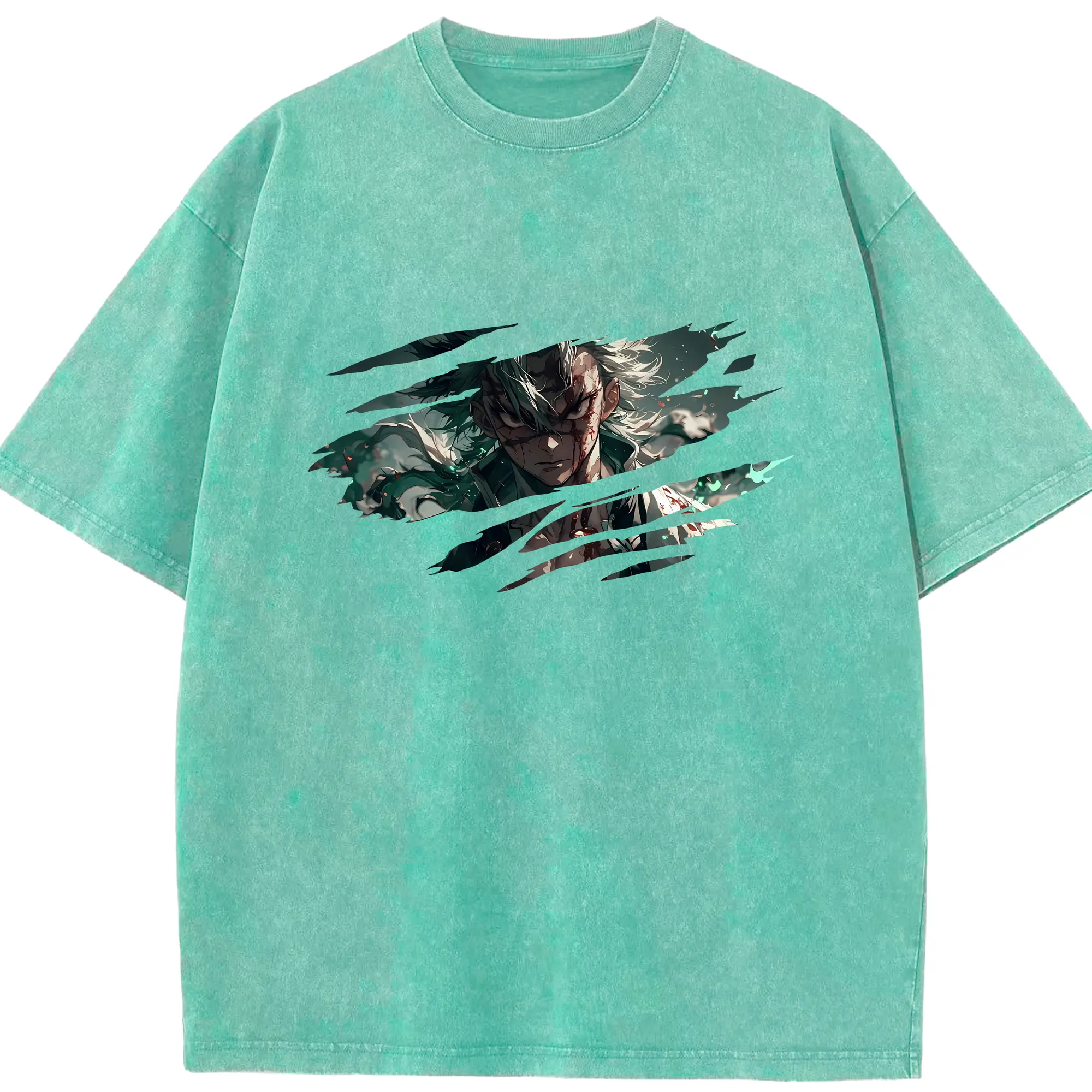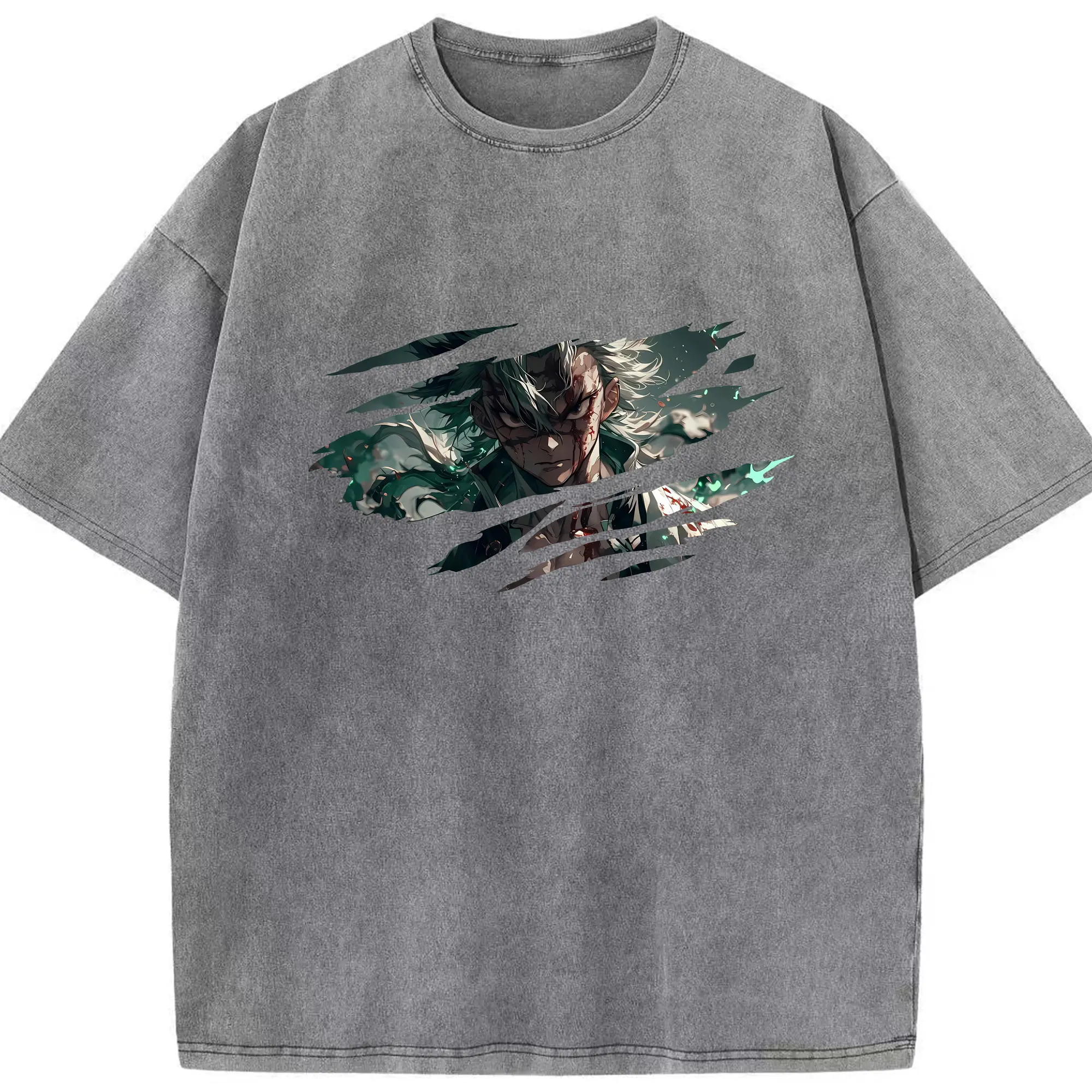 鬼滅の刃 グッズ,宇髄 天元 - 綿100% ヴィンテージ風 半袖Tシャツ ・ フロントプリント ・ 柔らか肌触り ・ 通気性 快適 ・ スポーツ カジュアル 外出用