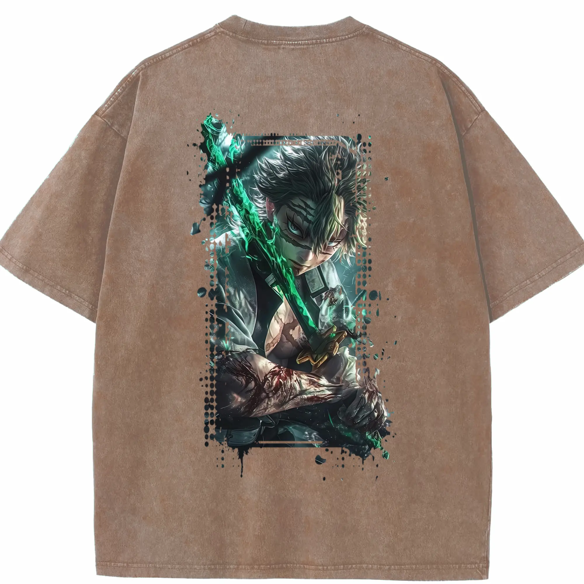 鳴潮 グッズ ザンニー - 綿100% ヴィンテージ風 半袖Tシャツ ・ 背面プリント ・ 柔らか肌触り ・ 通気性 快適 ・ スポーツ カジュアル 外出用