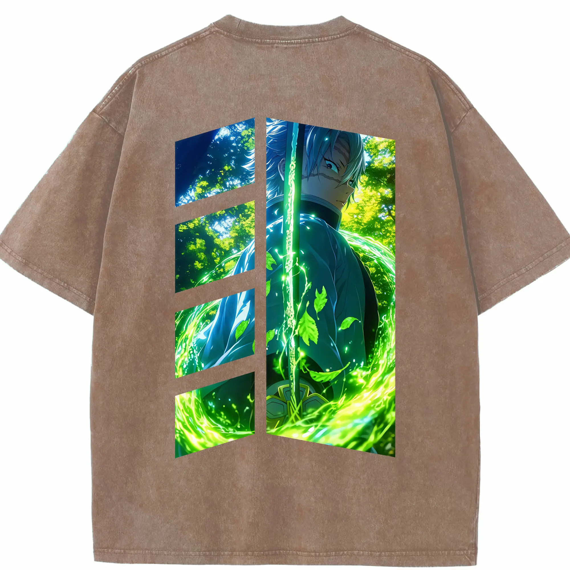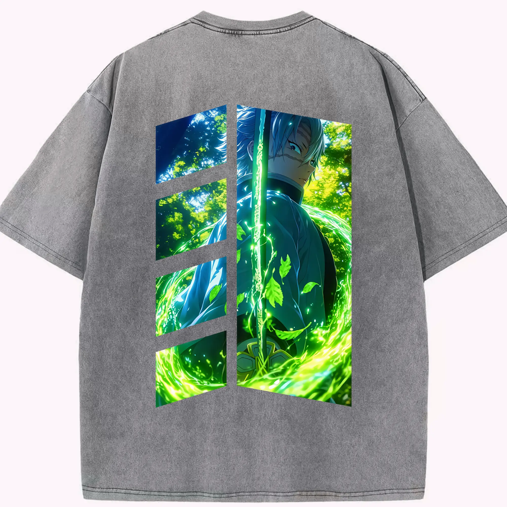 鬼滅の刃 グッズ,不死川 実弥 - 綿100% 半袖Tシャツ ・ バックプリント ・ 快適 通気性 ・ 日常使い 散歩 スポーツ用