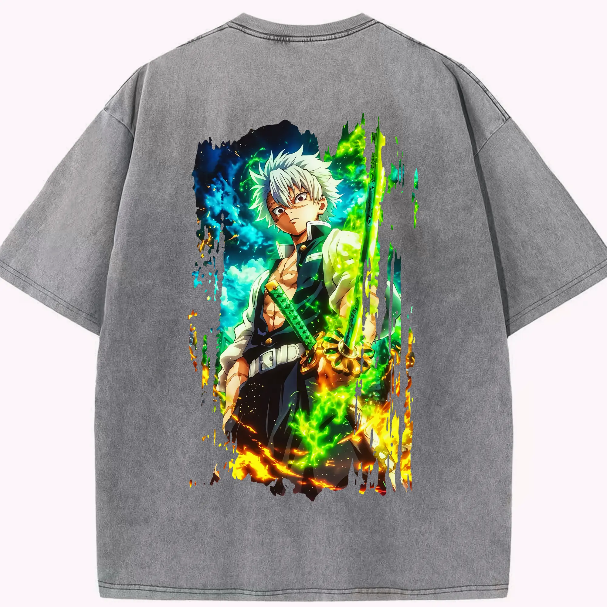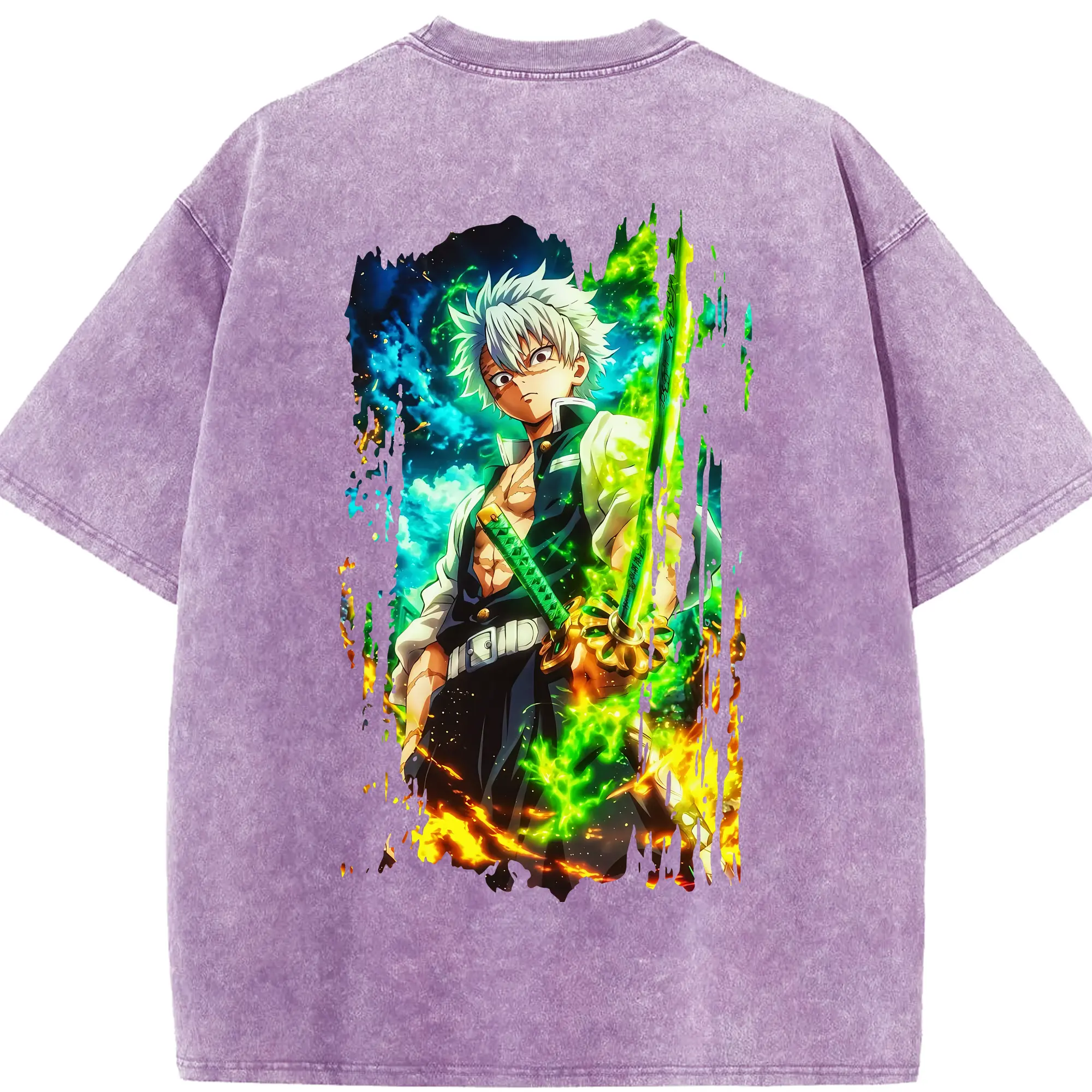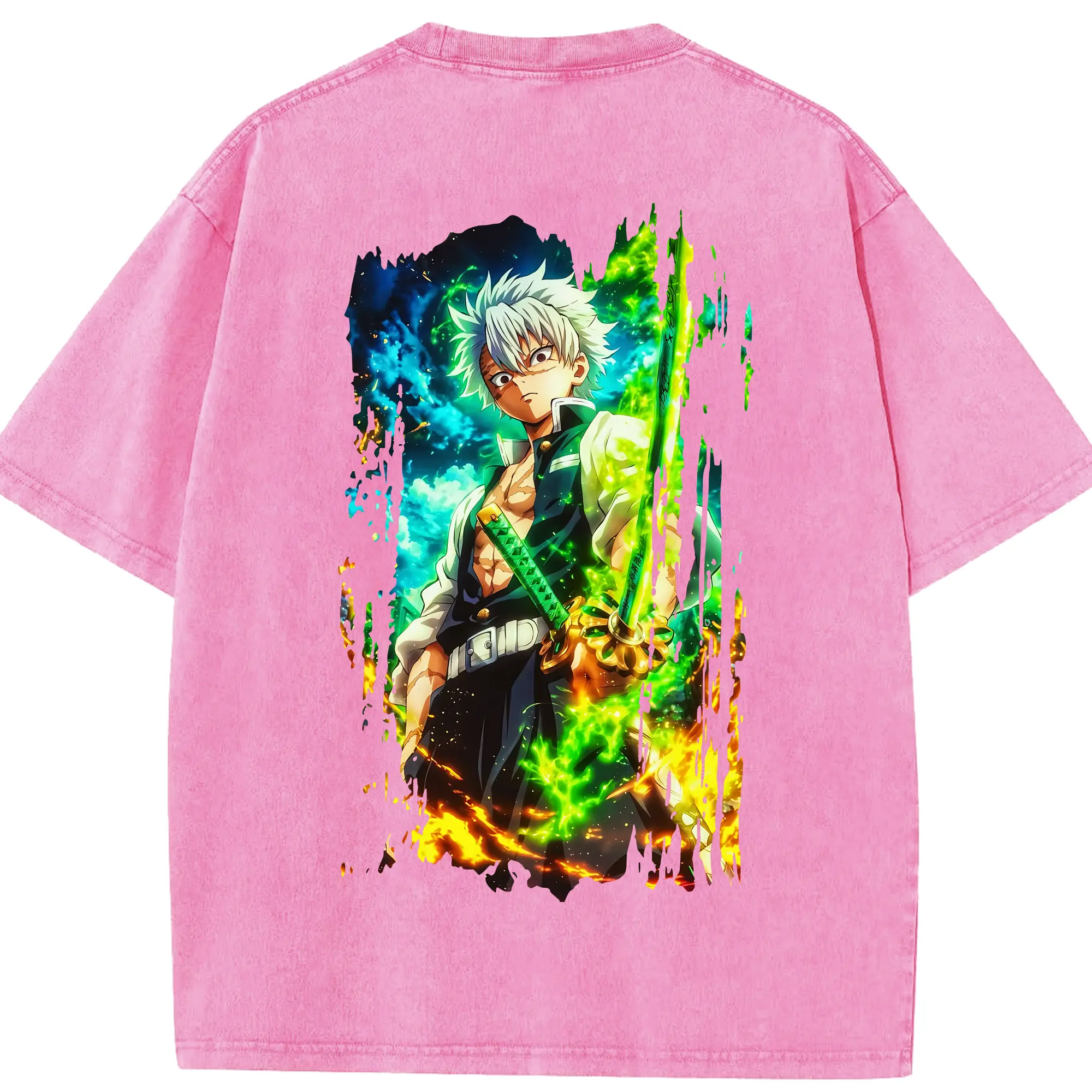 鬼滅の刃 グッズ,不死川 実弥 - 綿100% 半袖Tシャツ ・ バックプリント ・ 快適 通気性 ・ 日常使い 散歩 スポーツ用