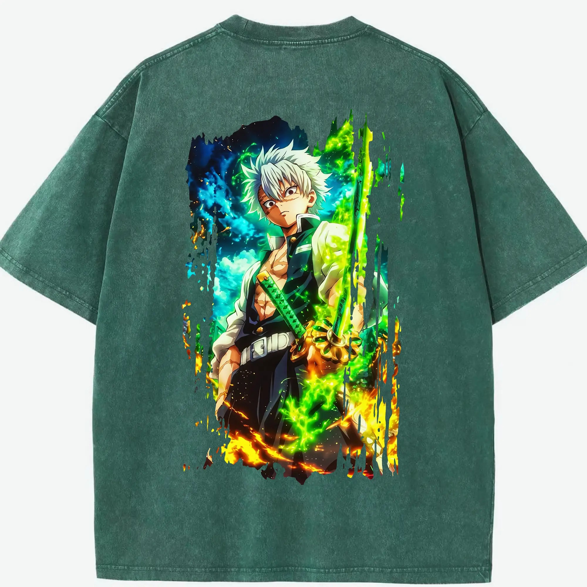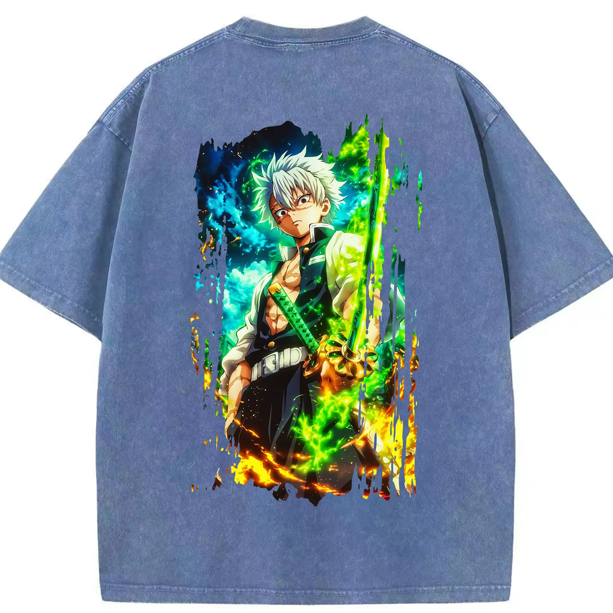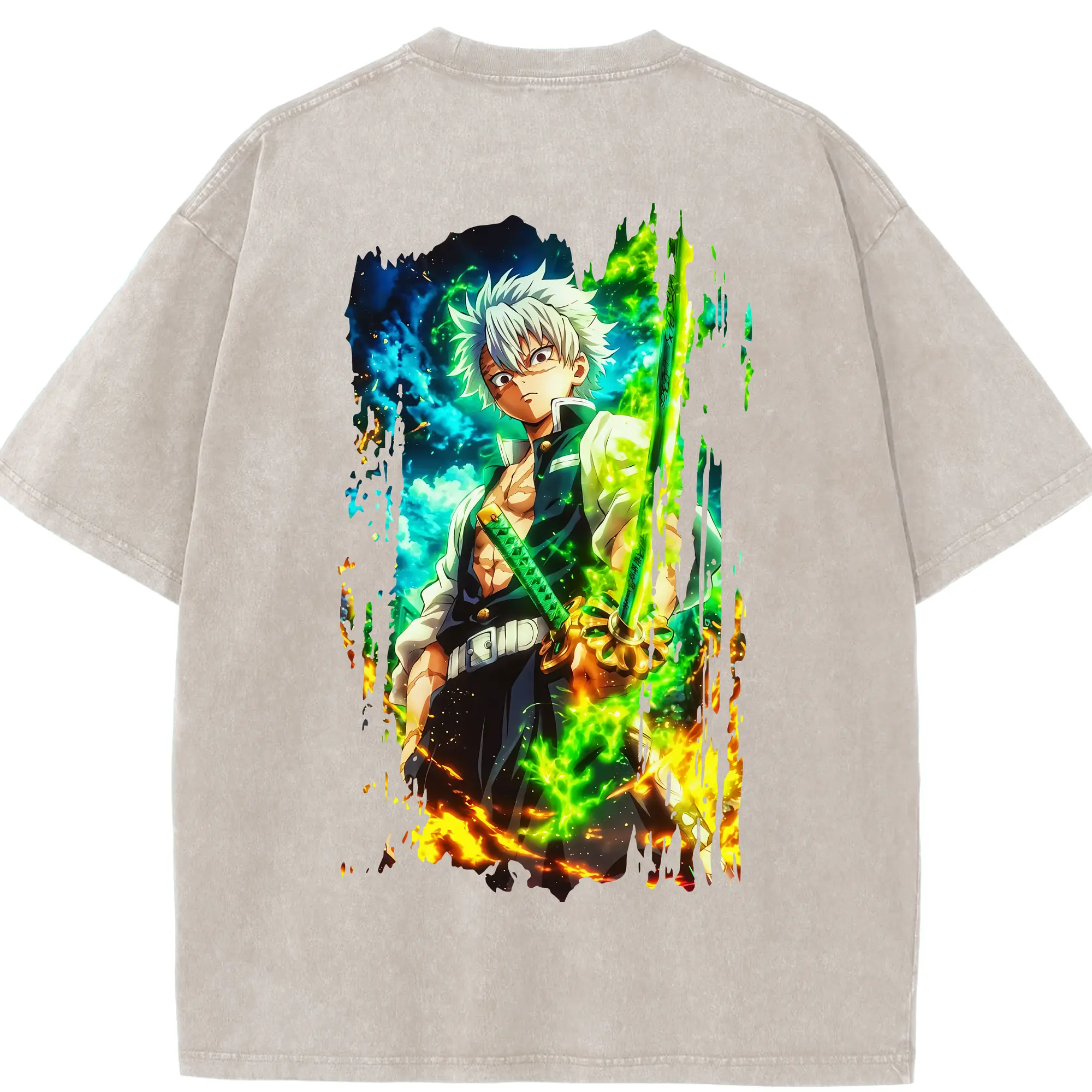鬼滅の刃 グッズ,不死川 実弥 - 綿100% 半袖Tシャツ ・ バックプリント ・ 快適 通気性 ・ 日常使い 散歩 スポーツ用
