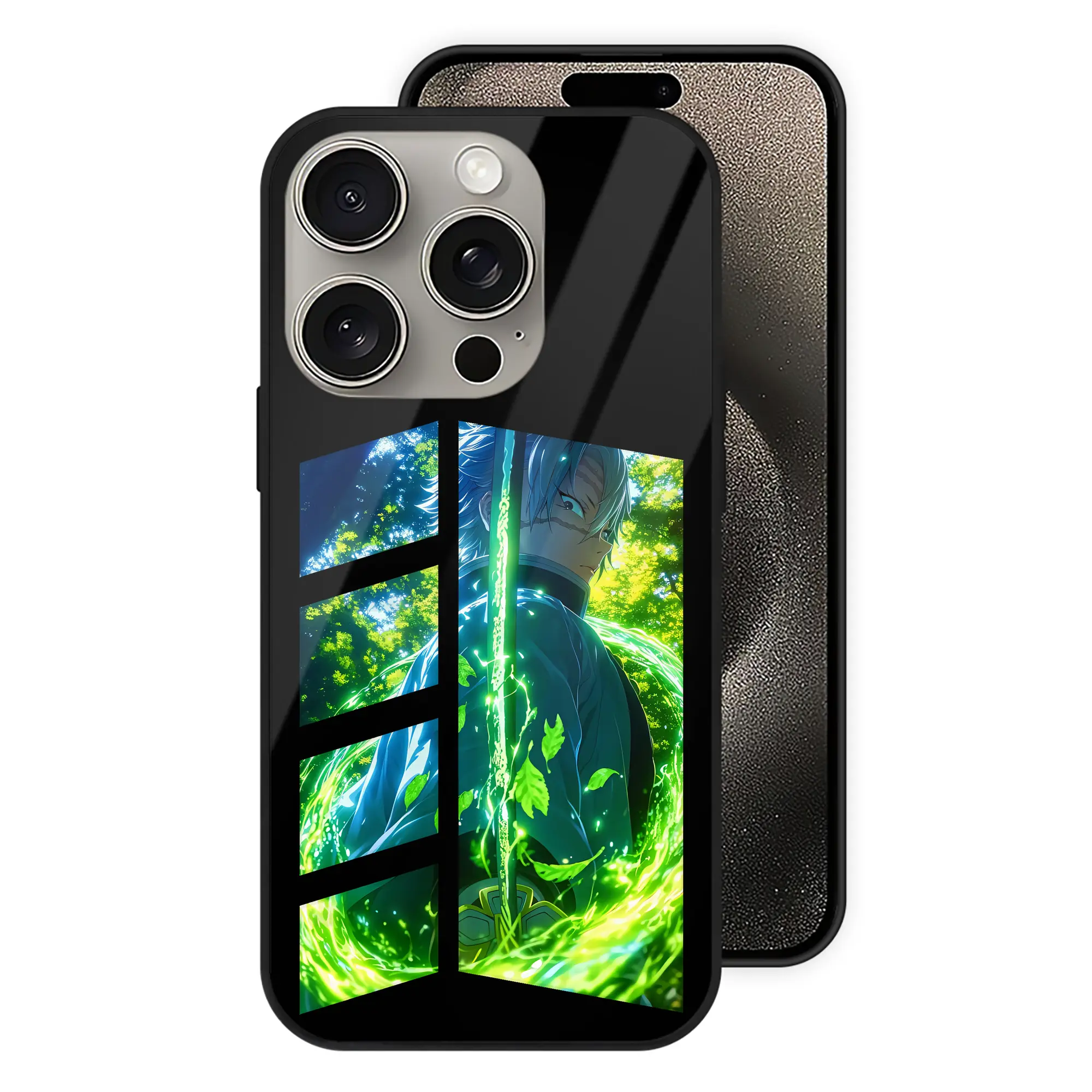 鬼滅の刃 グッズ,不死川 実弥 - IPhone15Pro対応 ・ スマホケース ・ 背面ガラス ・ TPU+強化ガラス ・ 耐衝撃 ・ 黄変防止 ・ ワイヤレス充電対応 ・ 3D立体ボタン