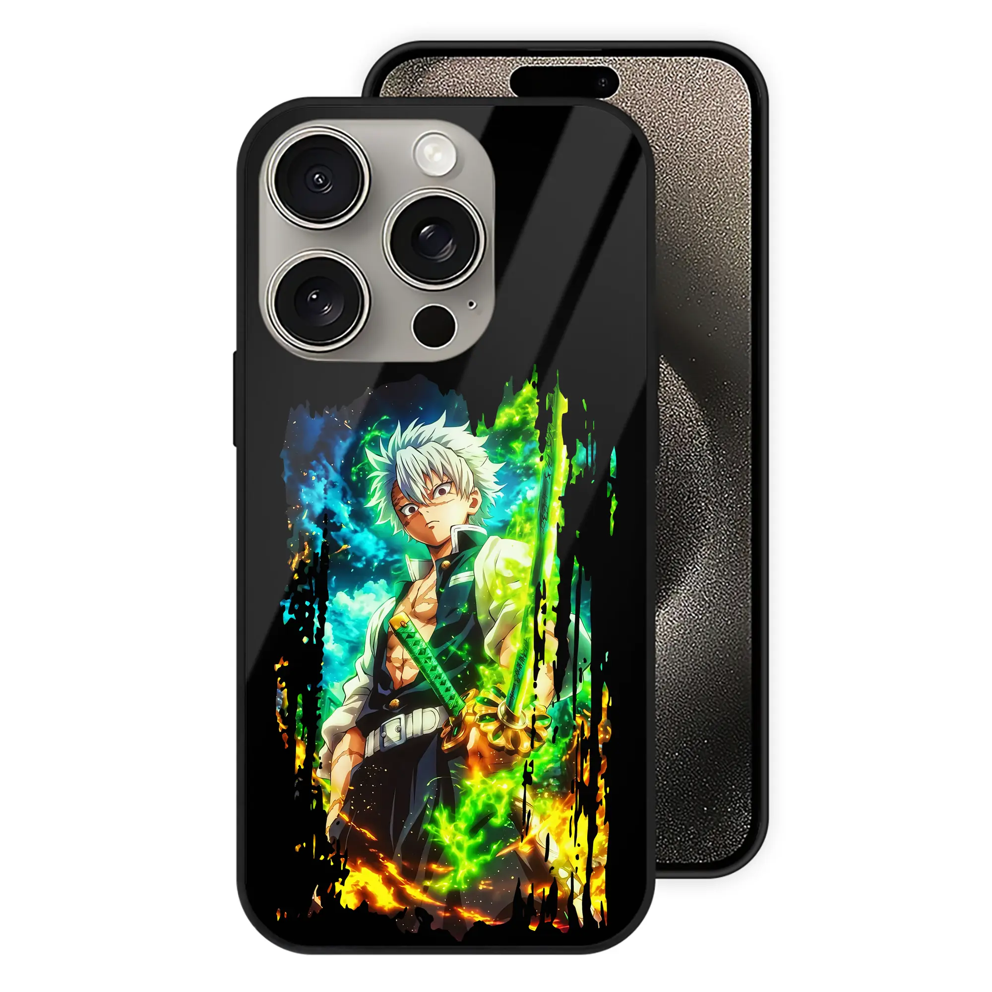 鬼滅の刃 グッズ,不死川 実弥 - IPhone15Pro対応 ・ スマホケース ・ 背面ガラス ・ TPU+強化ガラス ・ 耐衝撃 ・ 黄変防止 ・ ワイヤレス充電対応 ・ 3D立体ボタン