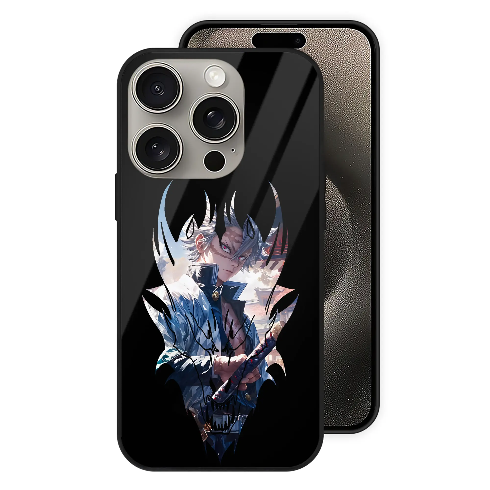 鬼滅の刃 グッズ,不死川 実弥 - IPhone15Pro対応 ・ スマホケース ・ 背面ガラス ・ TPU+強化ガラス ・ 耐衝撃 ・ 黄変防止 ・ ワイヤレス充電対応 ・ 3D立体ボタン