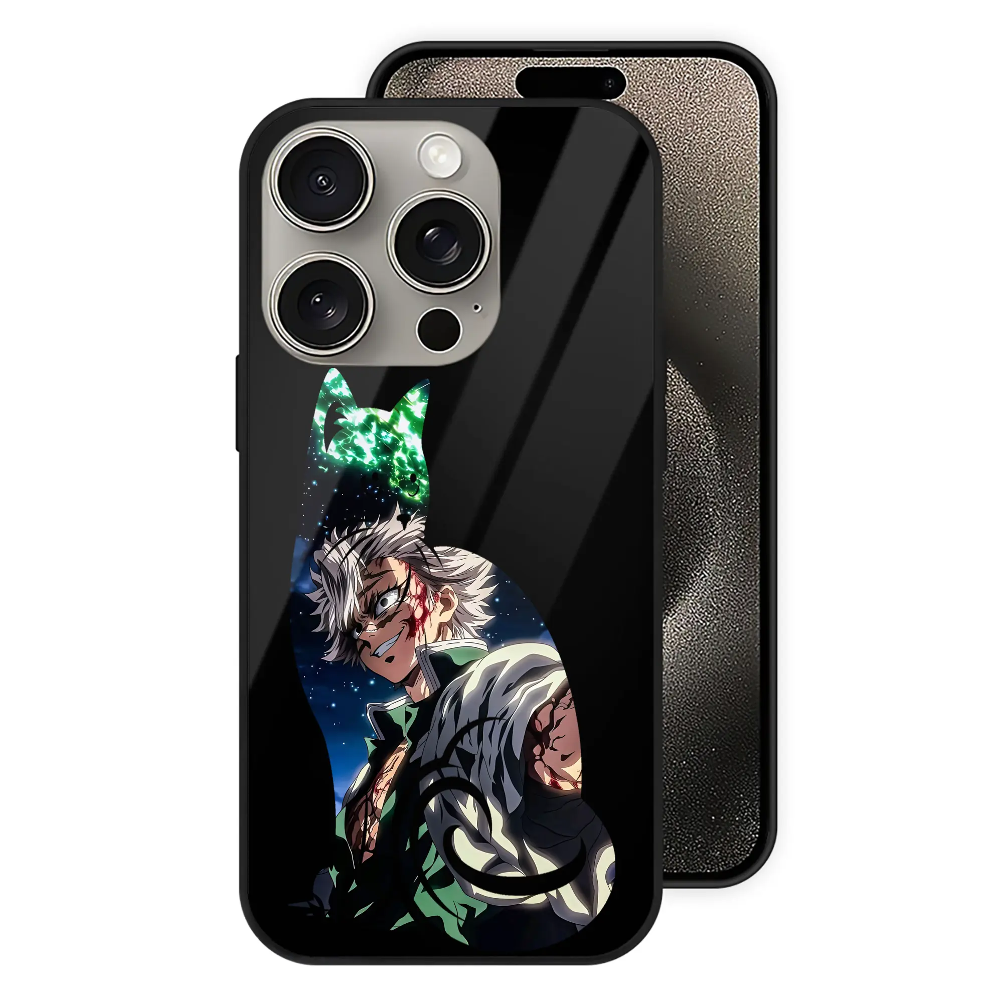 鬼滅の刃 グッズ,不死川 実弥 - IPhone15Pro対応 ・ スマホケース ・ 背面ガラス ・ TPU+強化ガラス ・ 耐衝撃 ・ 黄変防止 ・ ワイヤレス充電対応 ・ 3D立体ボタン