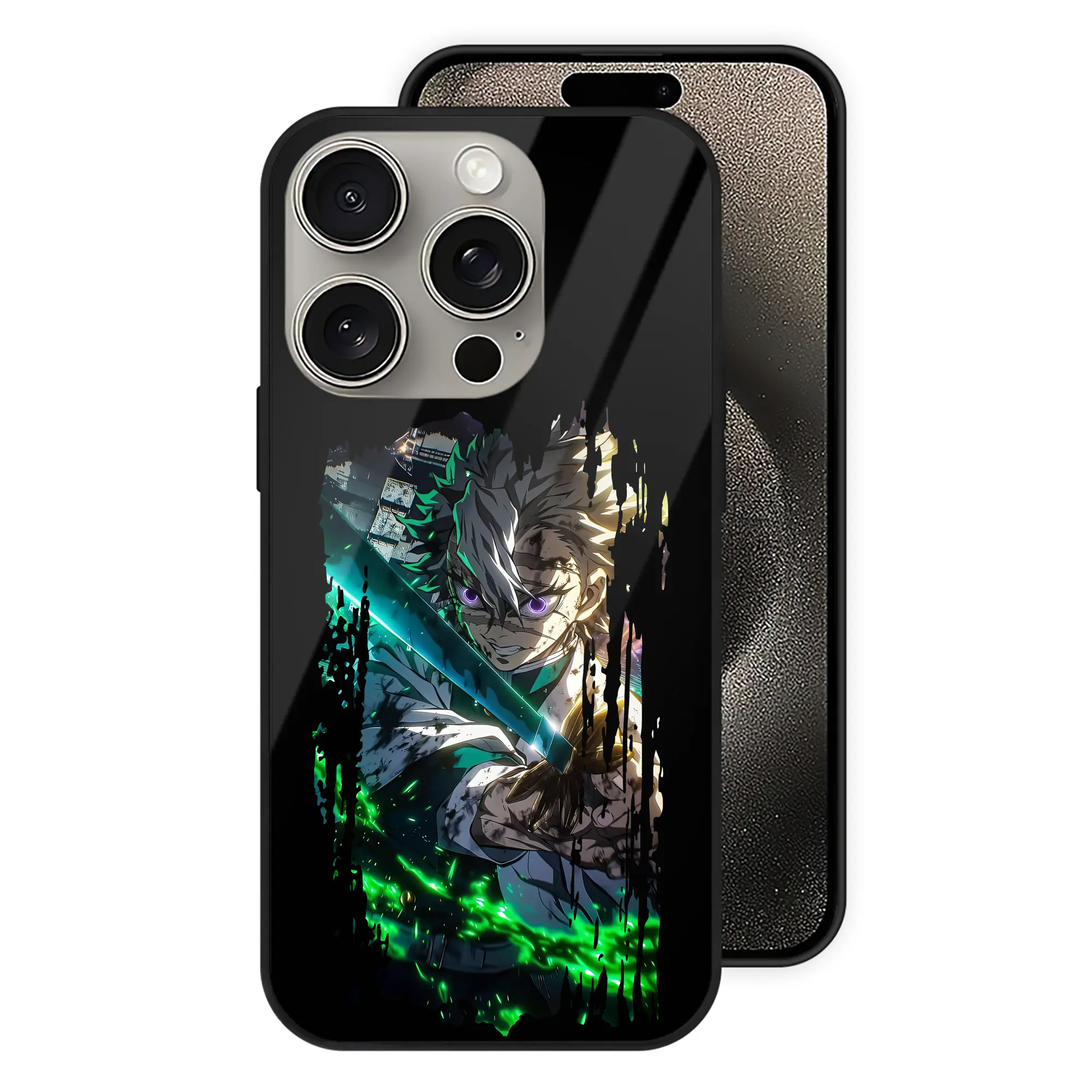 鬼滅の刃 グッズ,不死川 実弥 - IPhone15Pro対応 ・ スマホケース ・ 背面ガラス ・ TPU+強化ガラス ・ 耐衝撃 ・ 黄変防止 ・ ワイヤレス充電対応 ・ 3D立体ボタン