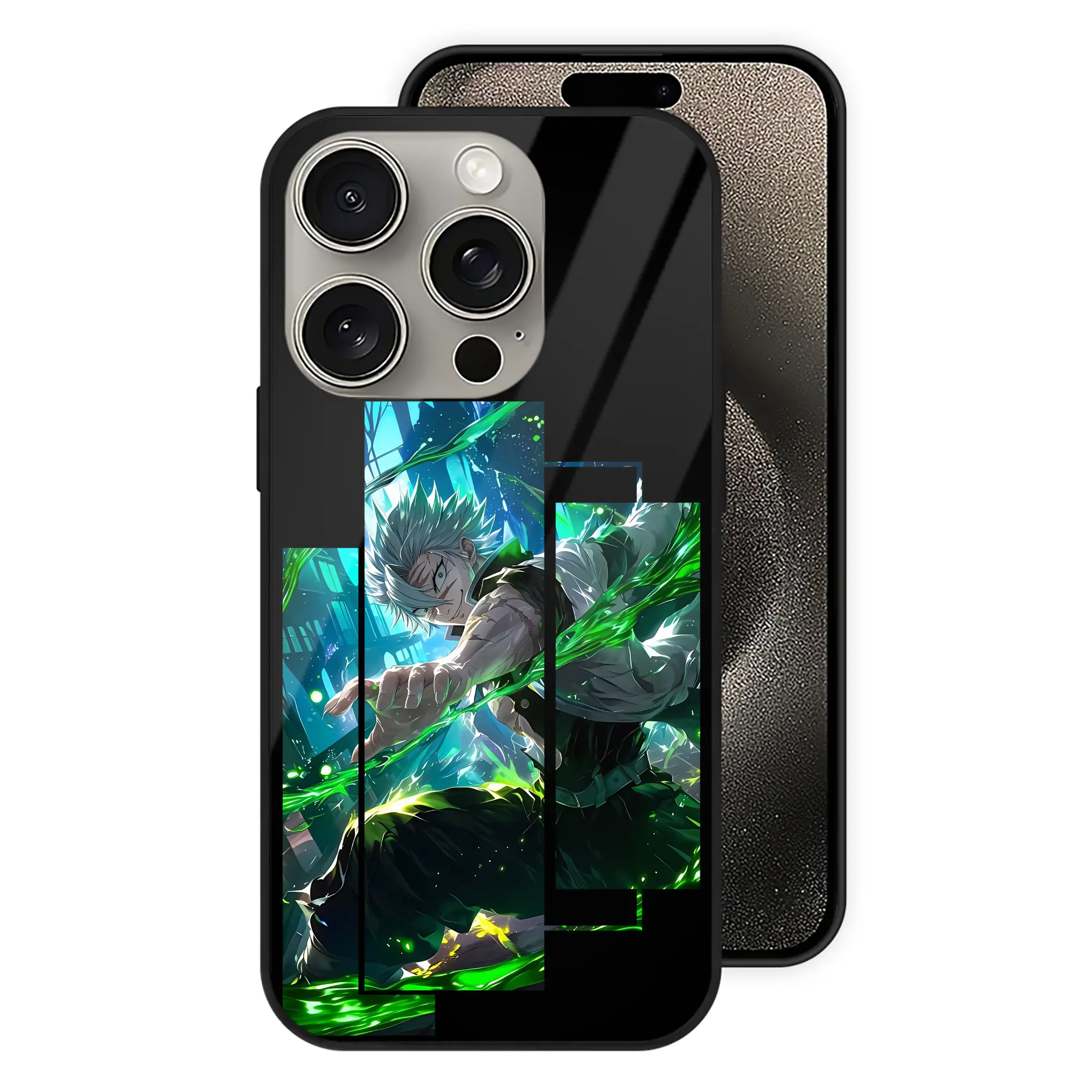 鬼滅の刃 グッズ,不死川 実弥 - IPhone15Pro対応 ・ スマホケース ・ 背面ガラス ・ TPU+強化ガラス ・ 耐衝撃 ・ 黄変防止 ・ ワイヤレス充電対応 ・ 3D立体ボタン