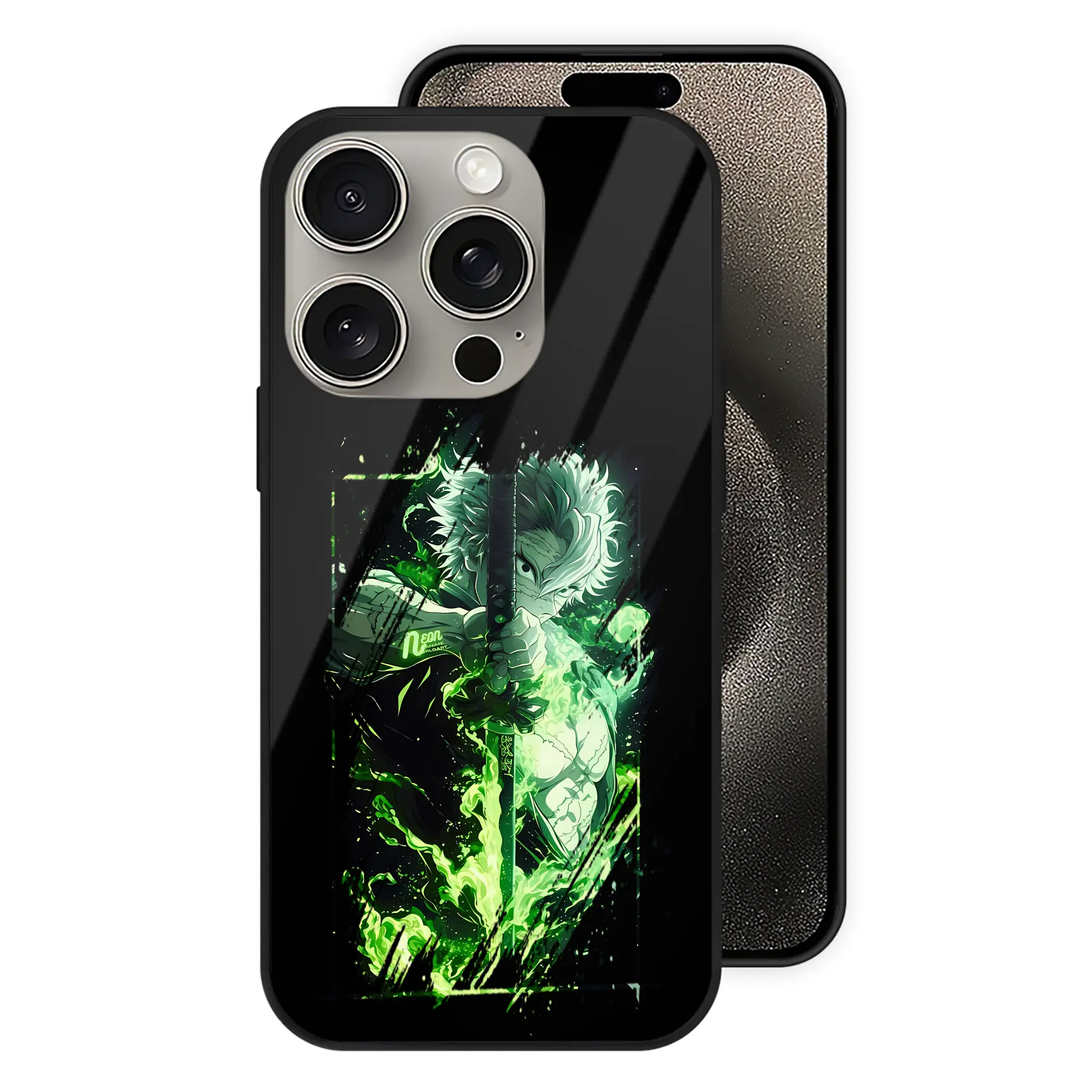 鬼滅の刃 グッズ,不死川 実弥 - IPhone15Pro対応 ・ スマホケース ・ 背面ガラス ・ TPU+強化ガラス ・ 耐衝撃 ・ 黄変防止 ・ ワイヤレス充電対応 ・ 3D立体ボタン
