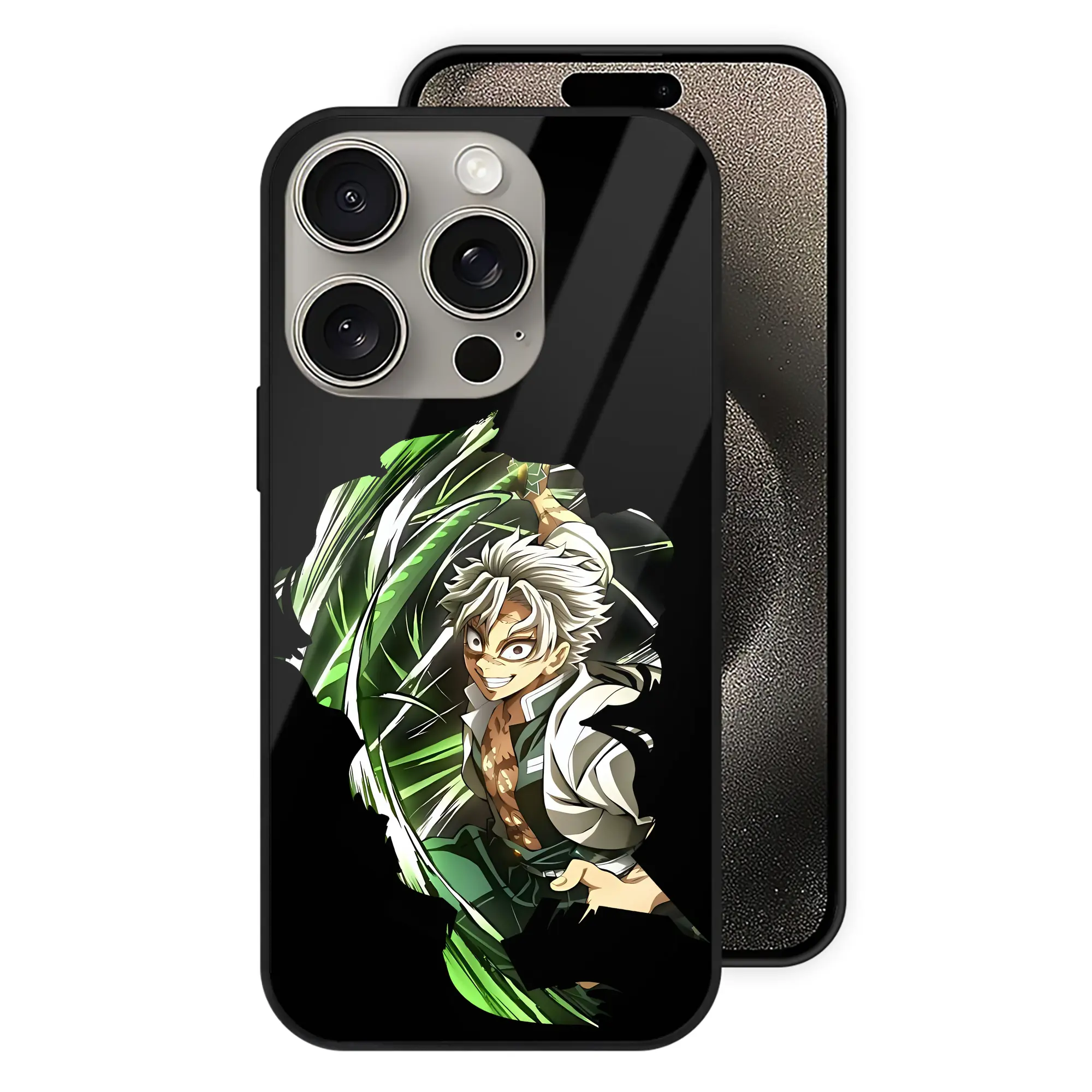 鬼滅の刃 グッズ,不死川 実弥 - IPhone15Pro対応 ・ スマホケース ・ 背面ガラス ・ TPU+強化ガラス ・ 耐衝撃 ・ 黄変防止 ・ ワイヤレス充電対応 ・ 3D立体ボタン
