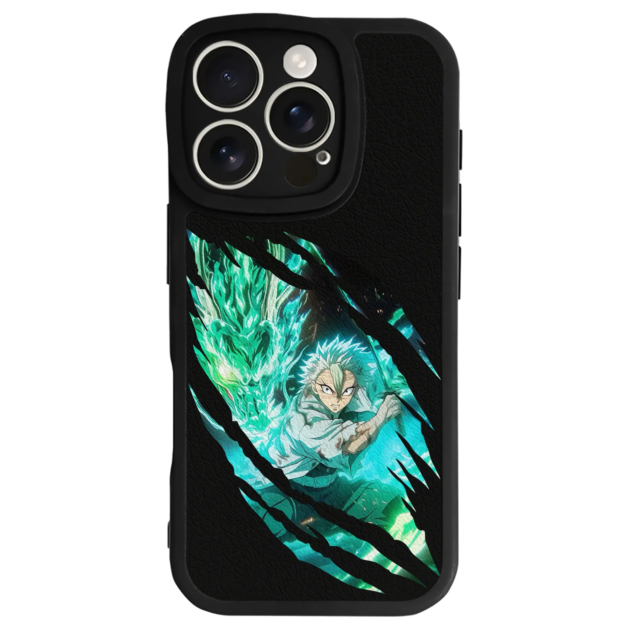鬼滅の刃 グッズ,不死川 実弥 - IPhone 16シリーズ対応 ・ シリコンスマホケース ・ レザー調 ・ 高精度フィット ・ 耐衝撃 ・ ワイヤレス充電対応 ・ 精密カット