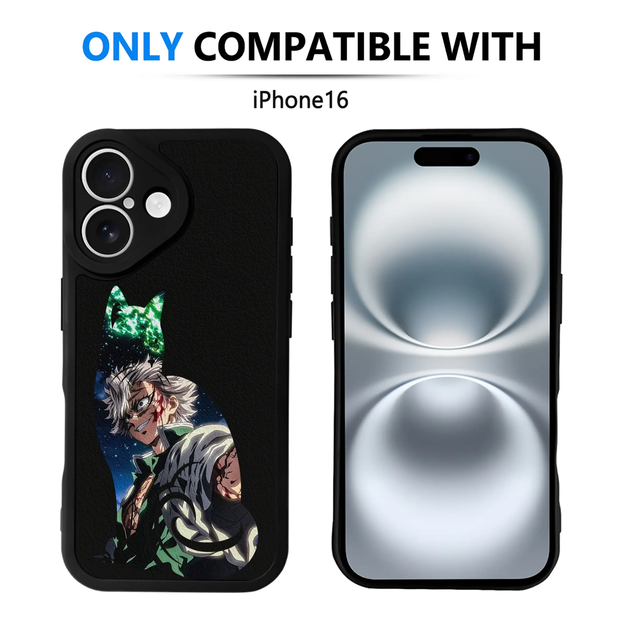 鬼滅の刃 グッズ,不死川 実弥 - IPhone 16シリーズ対応 ・ シリコンスマホケース ・ レザー調 ・ 高精度フィット ・ 耐衝撃 ・ ワイヤレス充電対応 ・ 精密カット