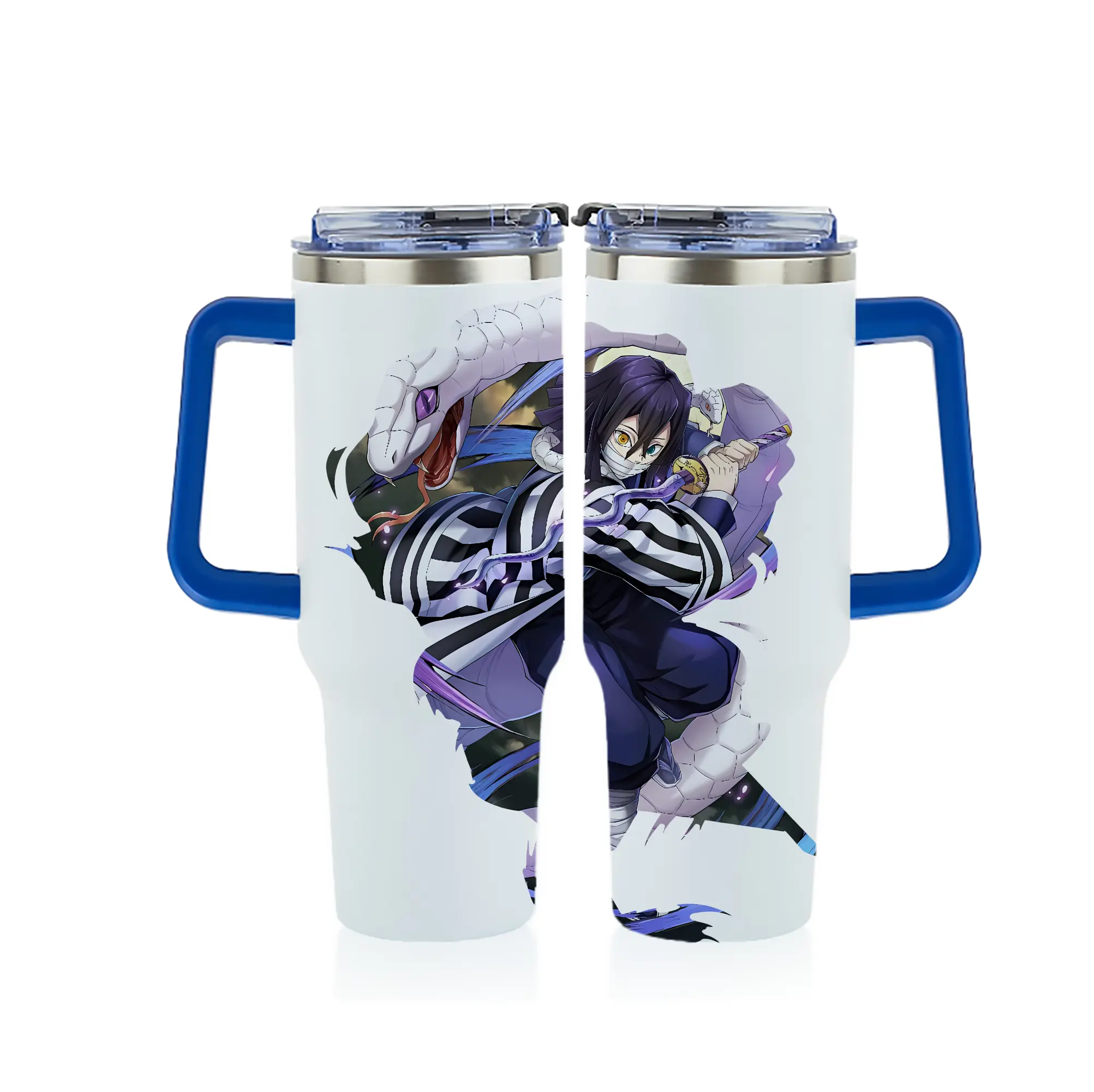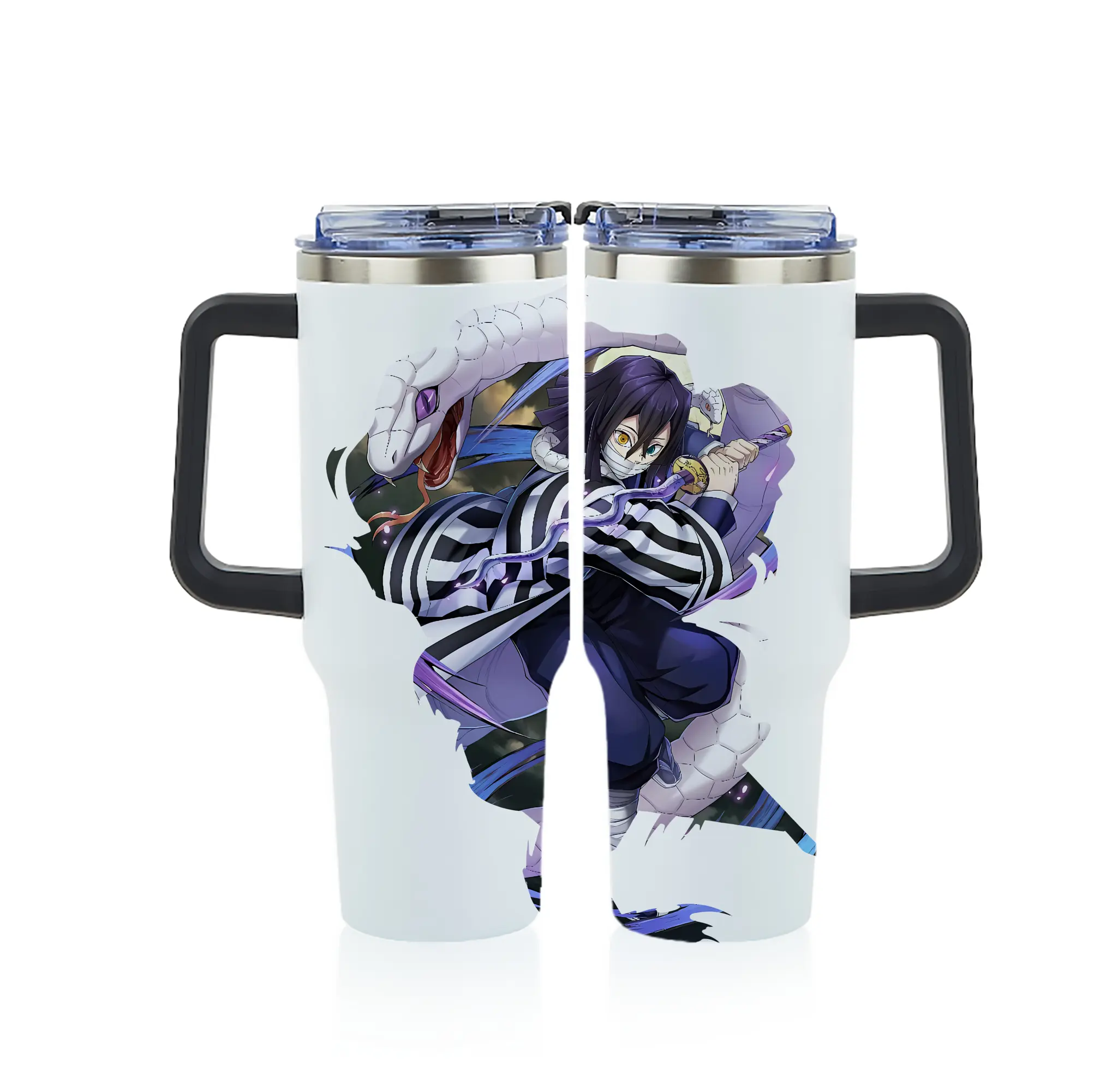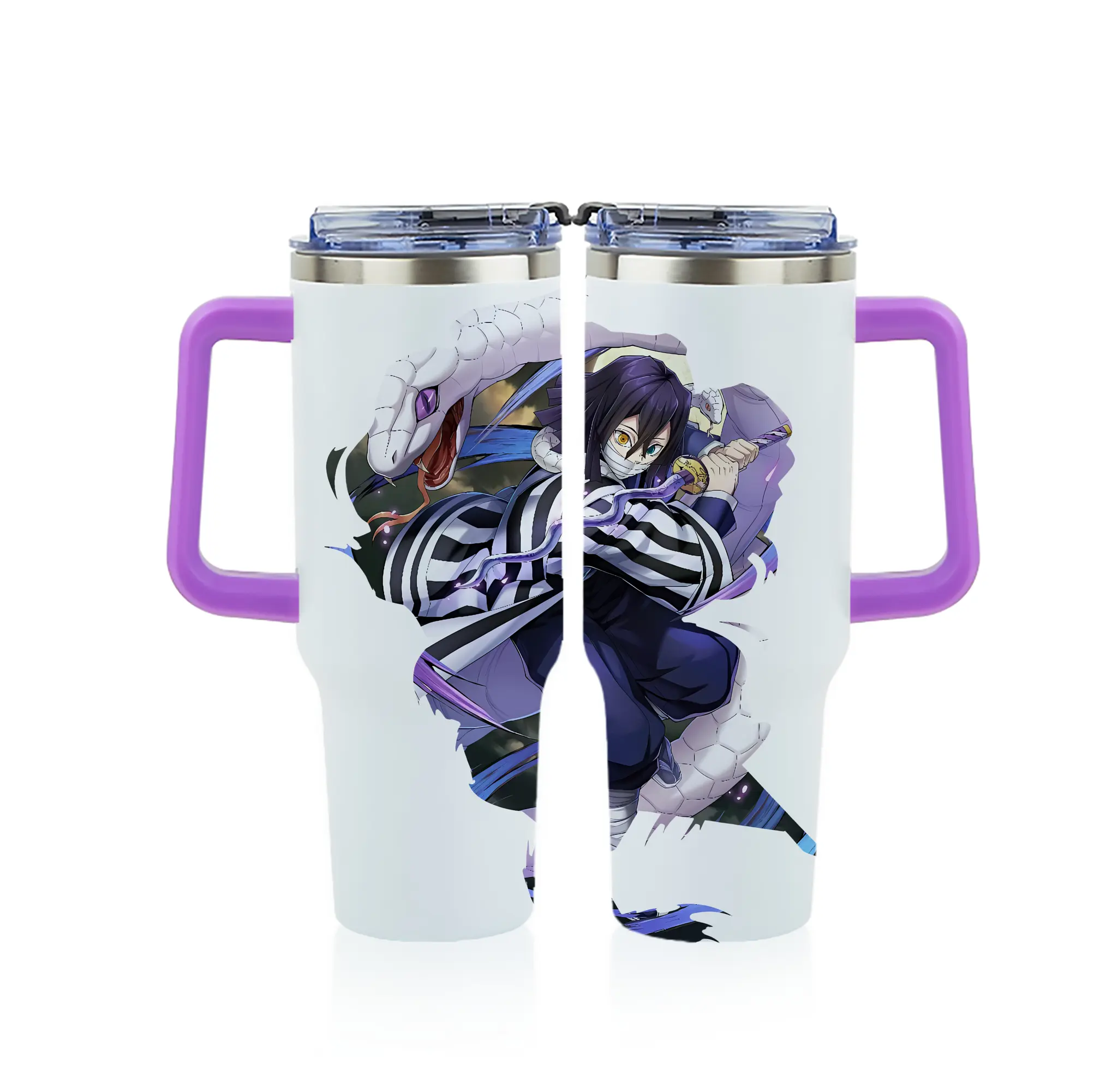 鬼滅の刃 グッズ,伊黒 小芭内 - 1200mL フルプリント車用タンブラー ・ 304ステンレス 内側 ・ 201ステンレス 外側 ・ 保温 保冷 ・ 通勤 ドライブ アウトドア用