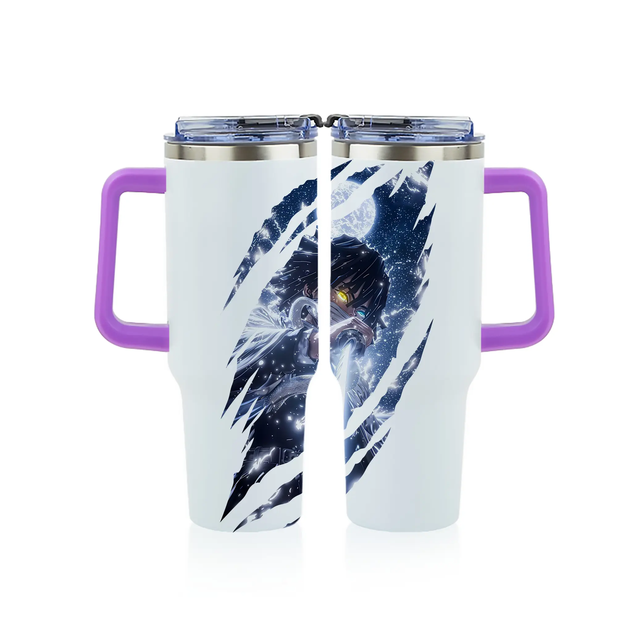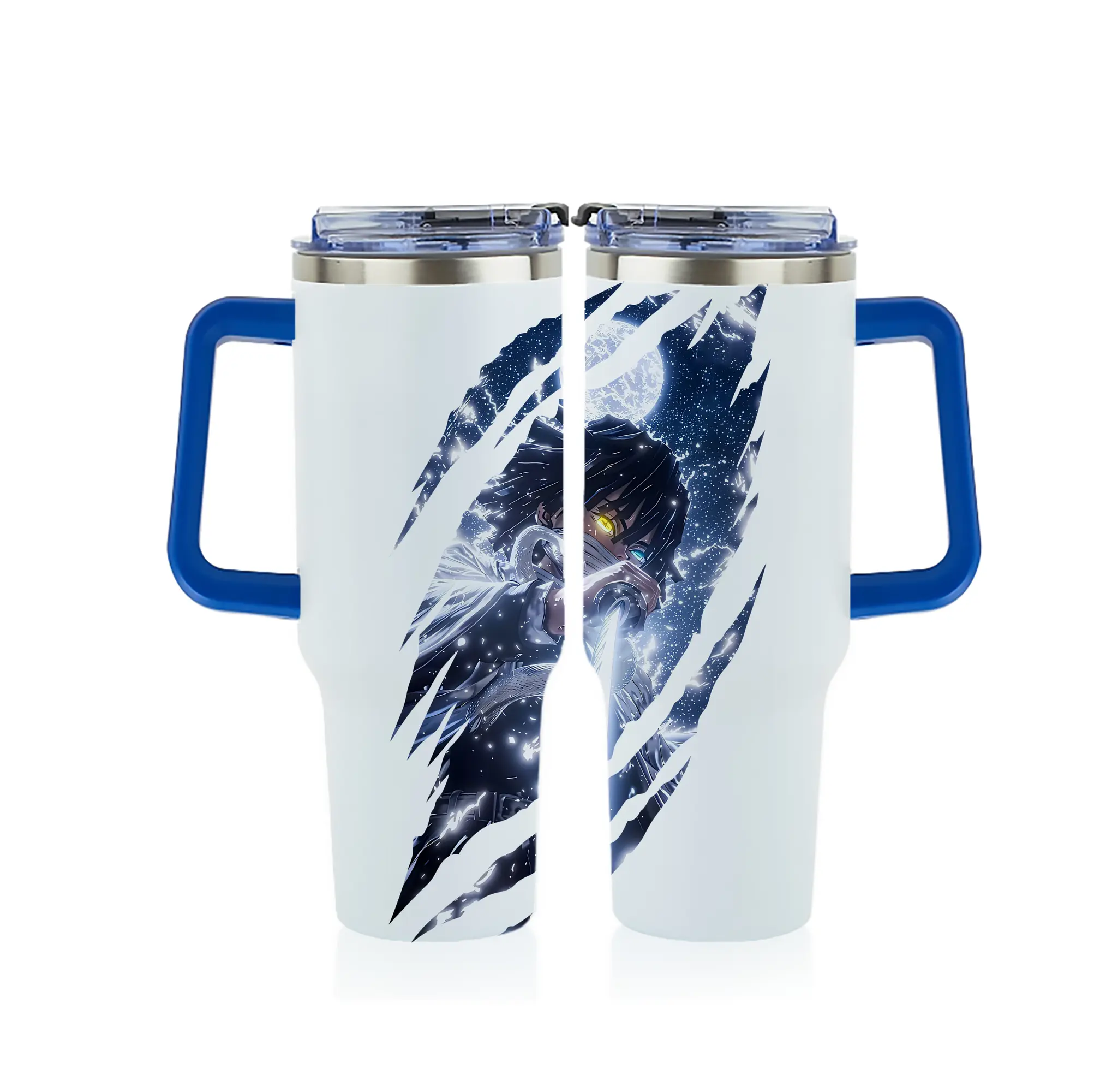 鬼滅の刃 グッズ,伊黒 小芭内 - 1200mL フルプリント車用タンブラー ・ 304ステンレス 内側 ・ 201ステンレス 外側 ・ 保温 保冷 ・ 通勤 ドライブ アウトドア用