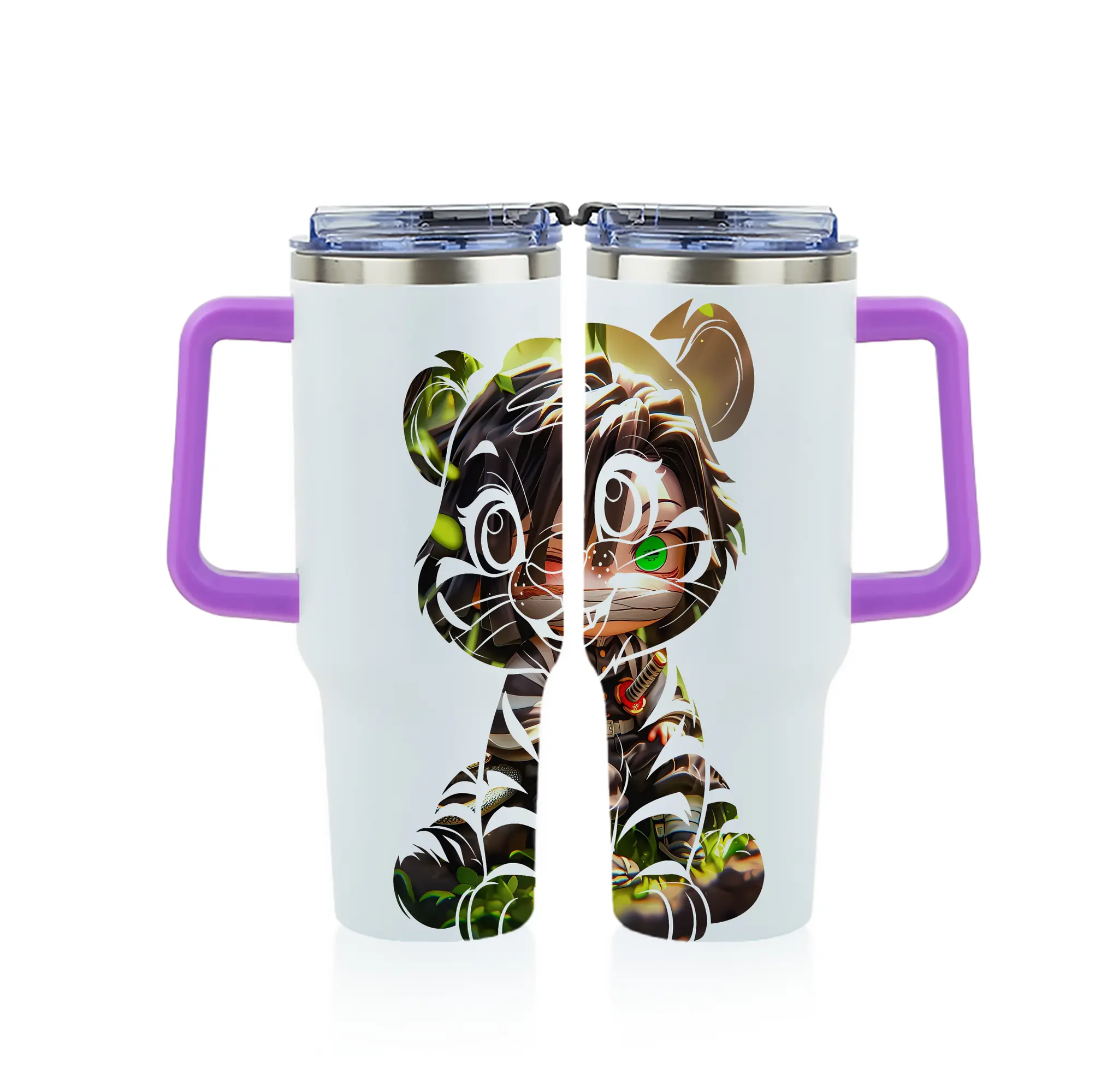 鬼滅の刃 グッズ,伊黒 小芭内 - 1200mL フルプリント車用タンブラー ・ 304ステンレス 内側 ・ 201ステンレス 外側 ・ 保温 保冷 ・ 通勤 ドライブ アウトドア用