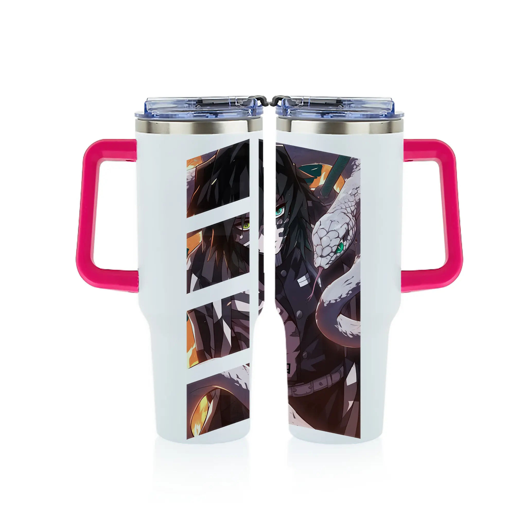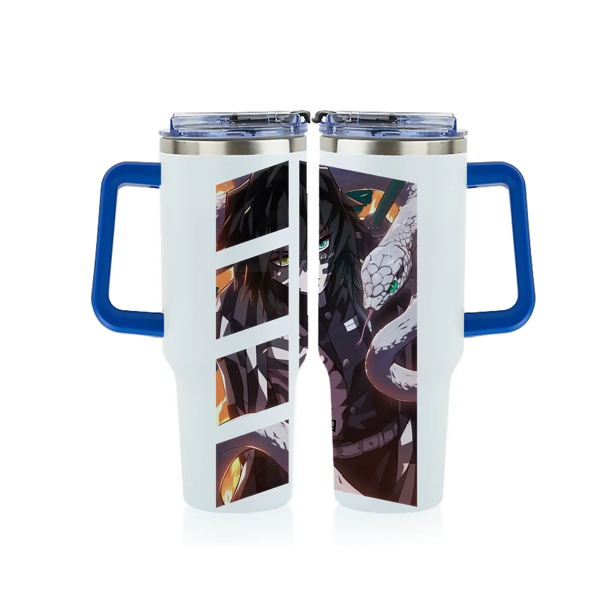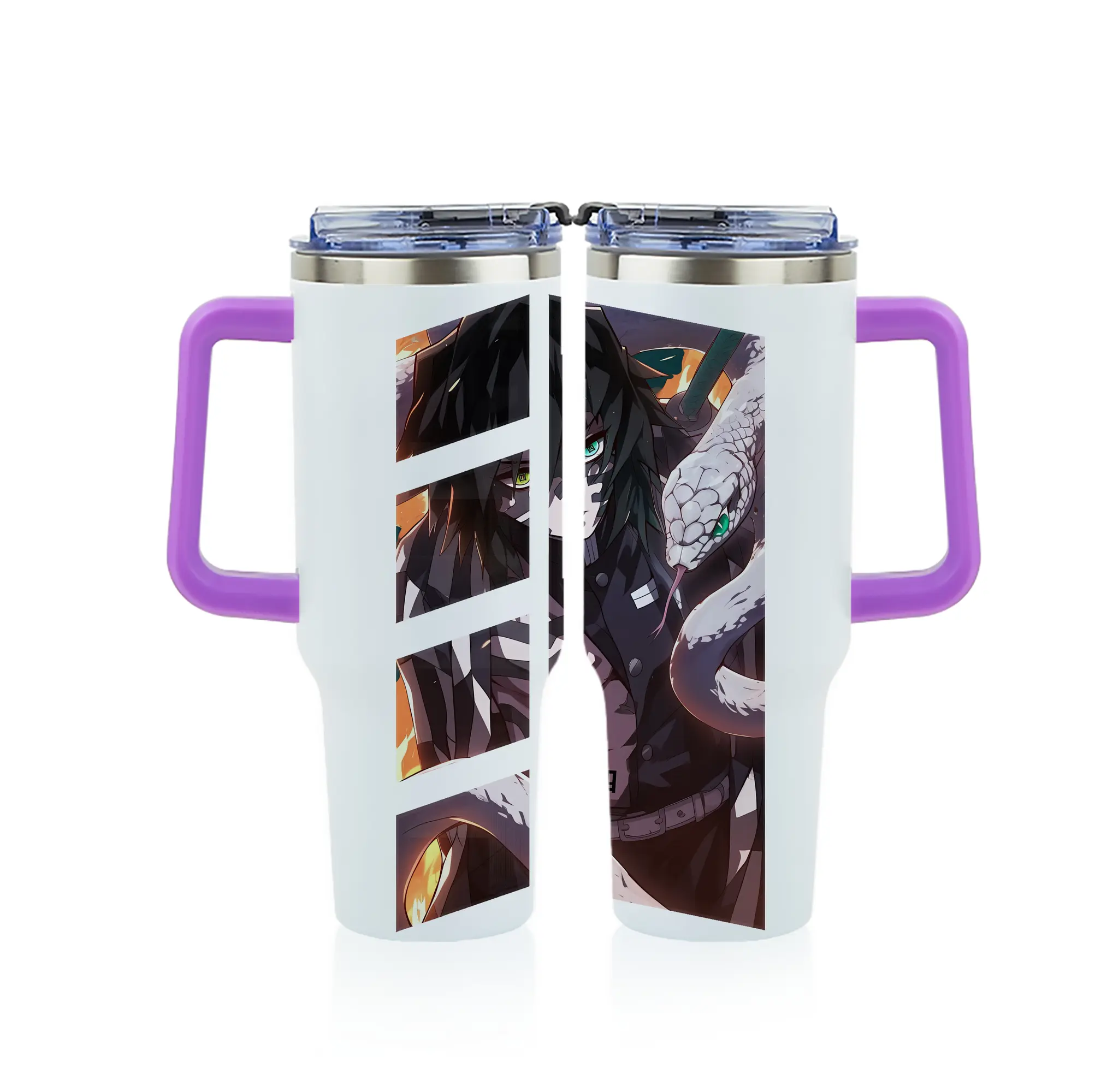 鬼滅の刃 グッズ,伊黒 小芭内 - 1200mL フルプリント車用タンブラー ・ 304ステンレス 内側 ・ 201ステンレス 外側 ・ 保温 保冷 ・ 通勤 ドライブ アウトドア用