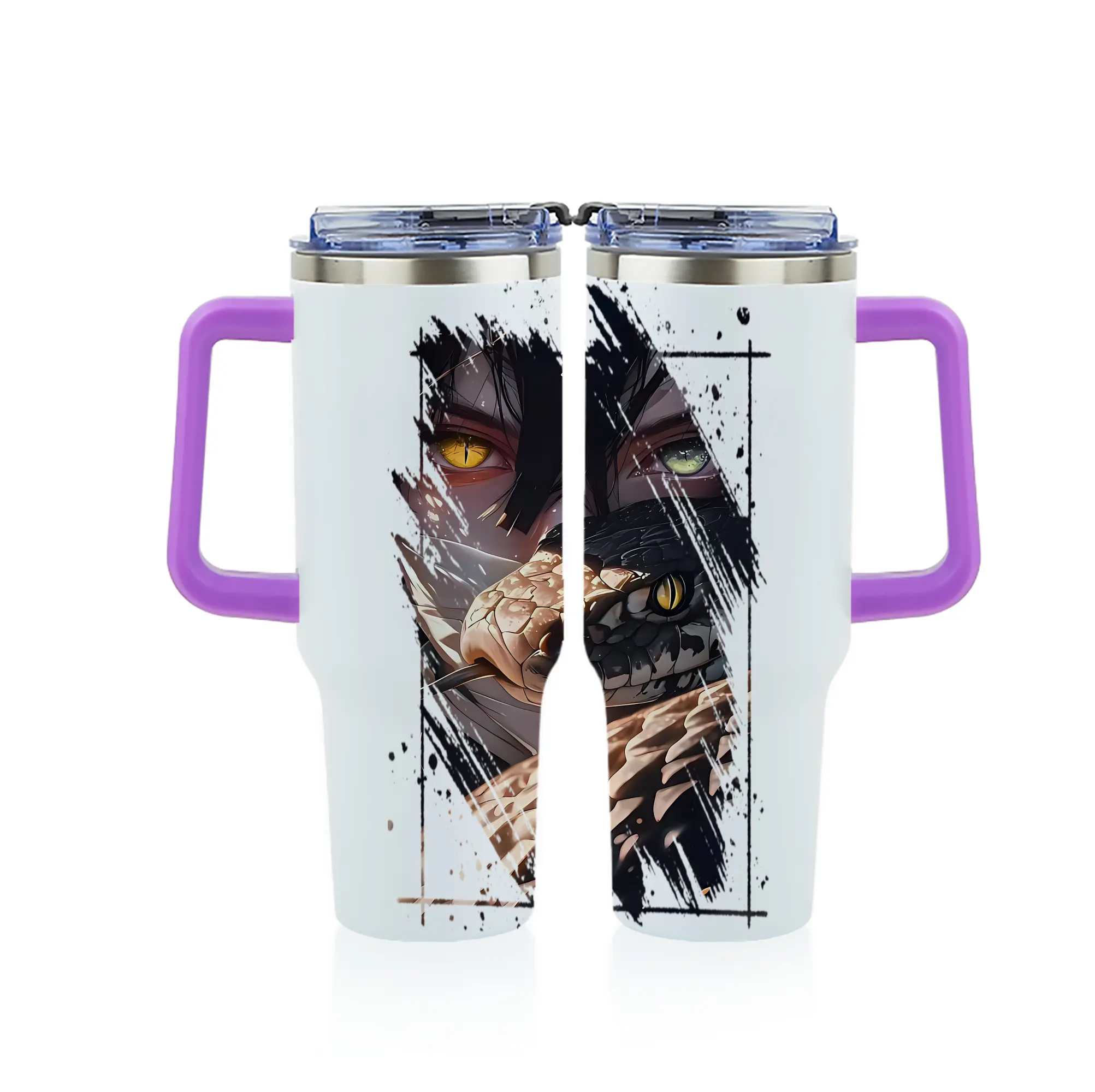 鬼滅の刃 グッズ,伊黒 小芭内 - 1200mL フルプリント車用タンブラー ・ 304ステンレス 内側 ・ 201ステンレス 外側 ・ 保温 保冷 ・ 通勤 ドライブ アウトドア用